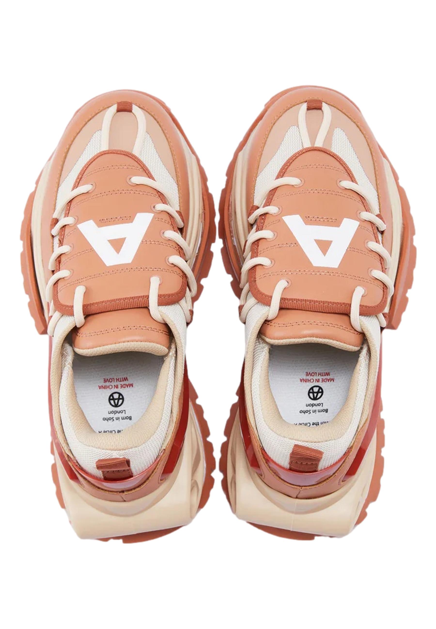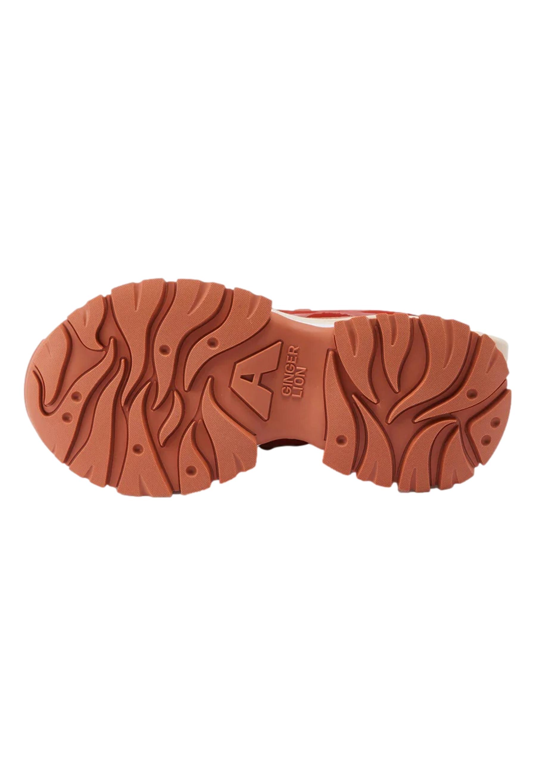 Re-edition of the original Lace-Up Runner Ginger Lion design in tonal brick color. The Upper is made of Nubuck, Nylon Mesh, PU, and TPU, while the cut-out Outsole is composed of a midsole in Phylon and an outer sole in Rubber and TPU