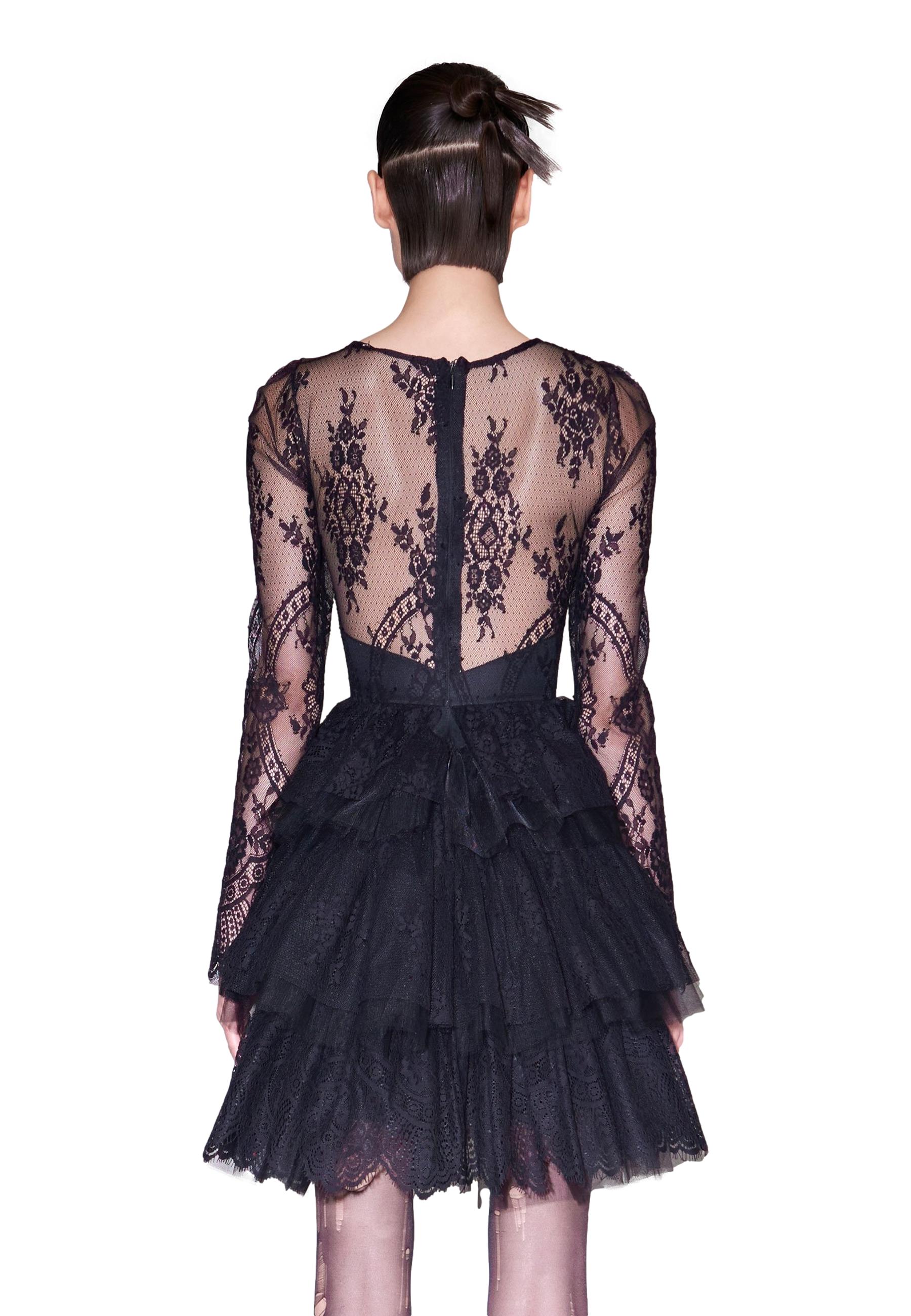 Lace minidress with sweetheart neckline and flounced skirt