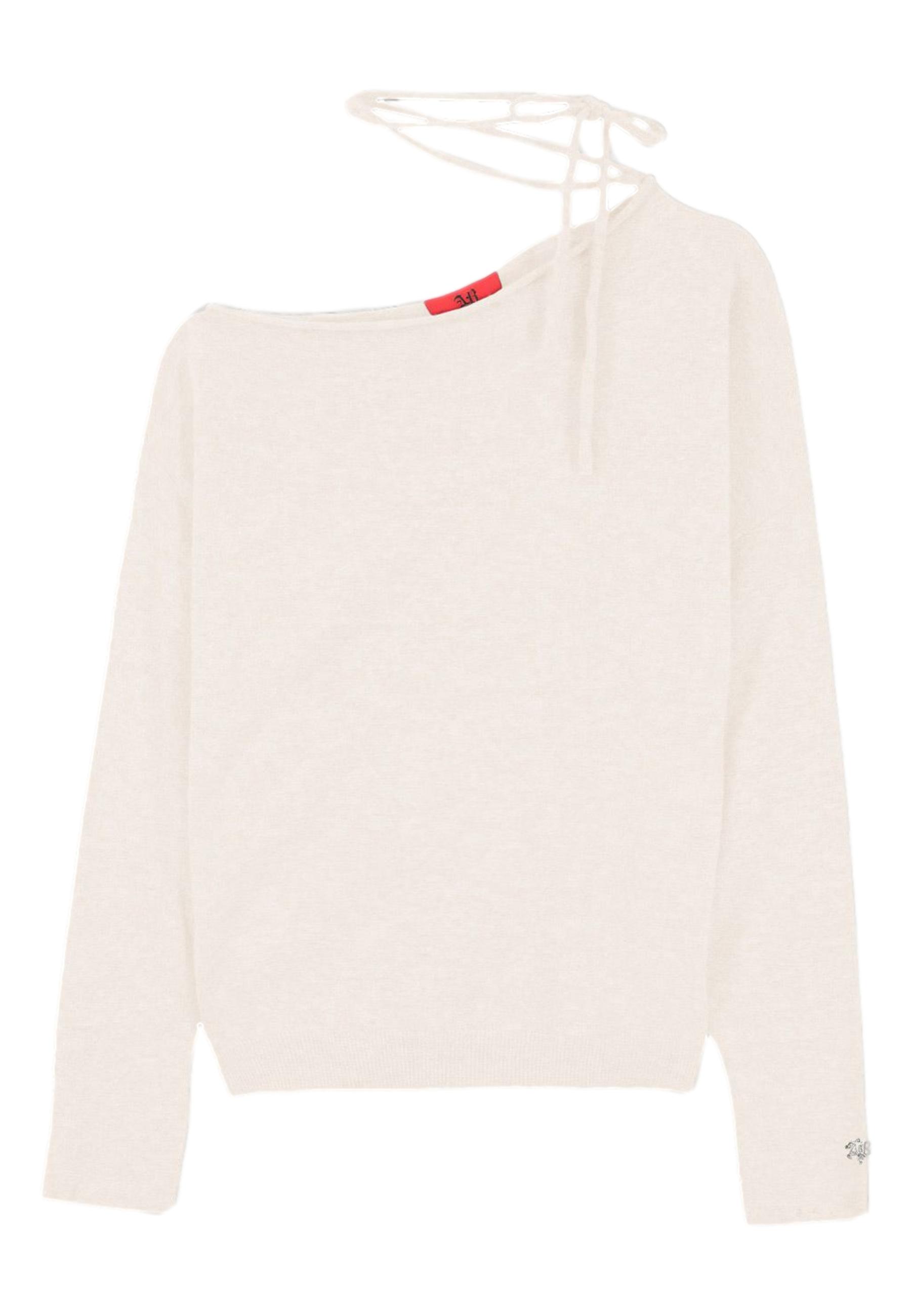 Soft wool jumper. Characterised by a loose fit and dropped shoulder. The long ties, worn knotted at the neck, add a refined and original detail, perfect for mixing a romantic style with a rock soul.