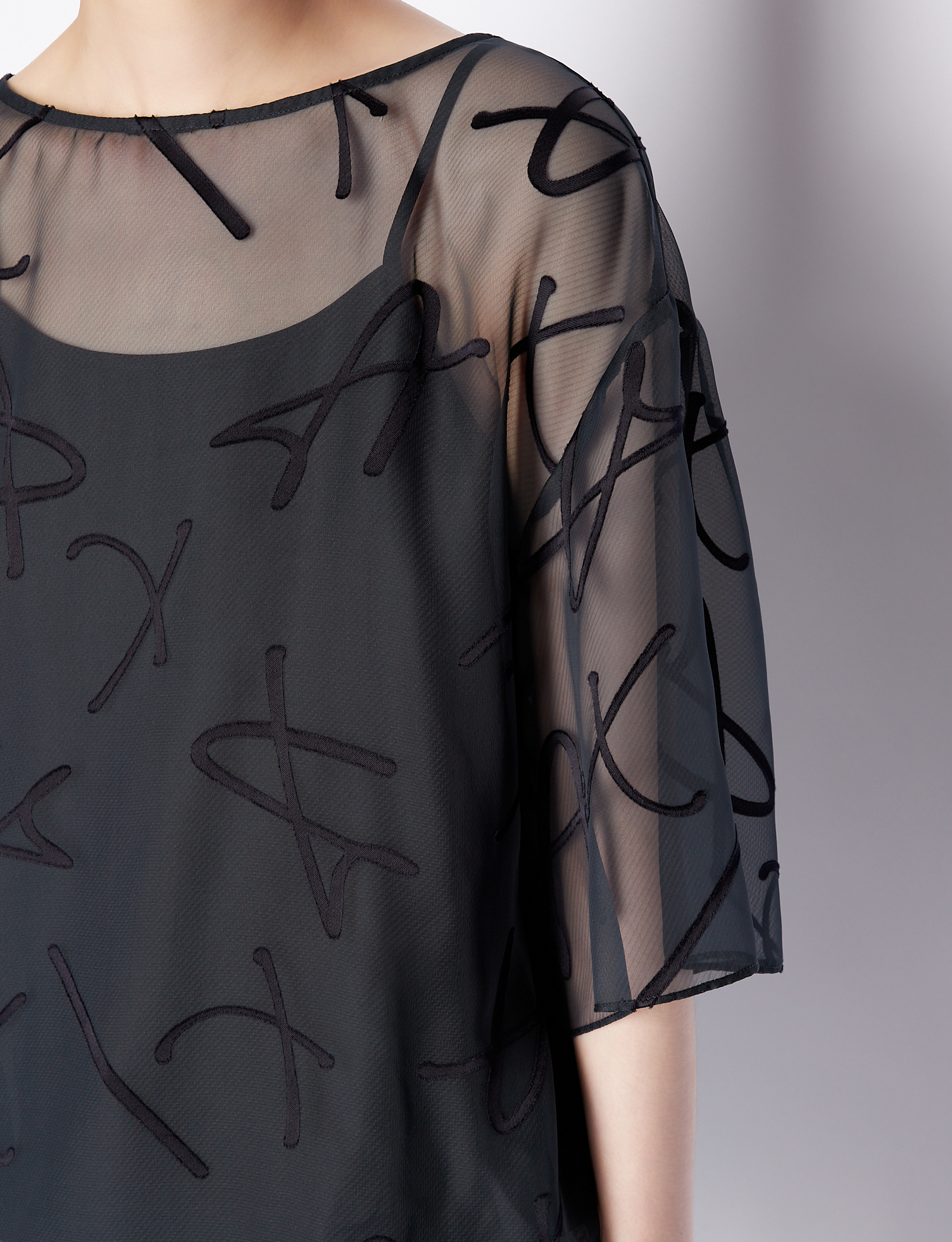Blue organza blouse with all over logo lettering and plain tank top with thin straps ARMANI EXCHANGE | shirts | 3RYH26 YN2KZ15CO