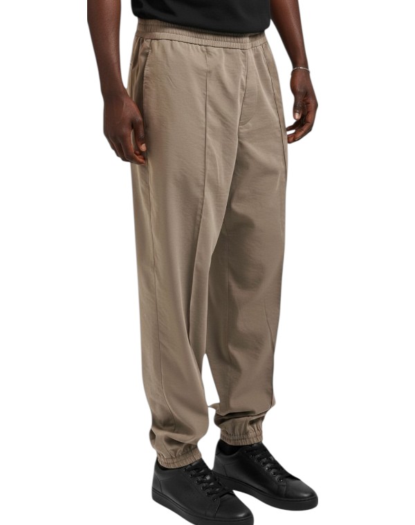 Armani Exchange men's sports trousers crafted from a viscose blend, ideal for a casual yet smart look. The design features raised pleats that add structure and style, whilst the elasticated waist ensures comfort and a practical fit. Ankle cuffs complete the design, adding a dynamic and modern touch. Regular fit, perfect for accompanying you through your daily activities with elegance and freedom of movement.