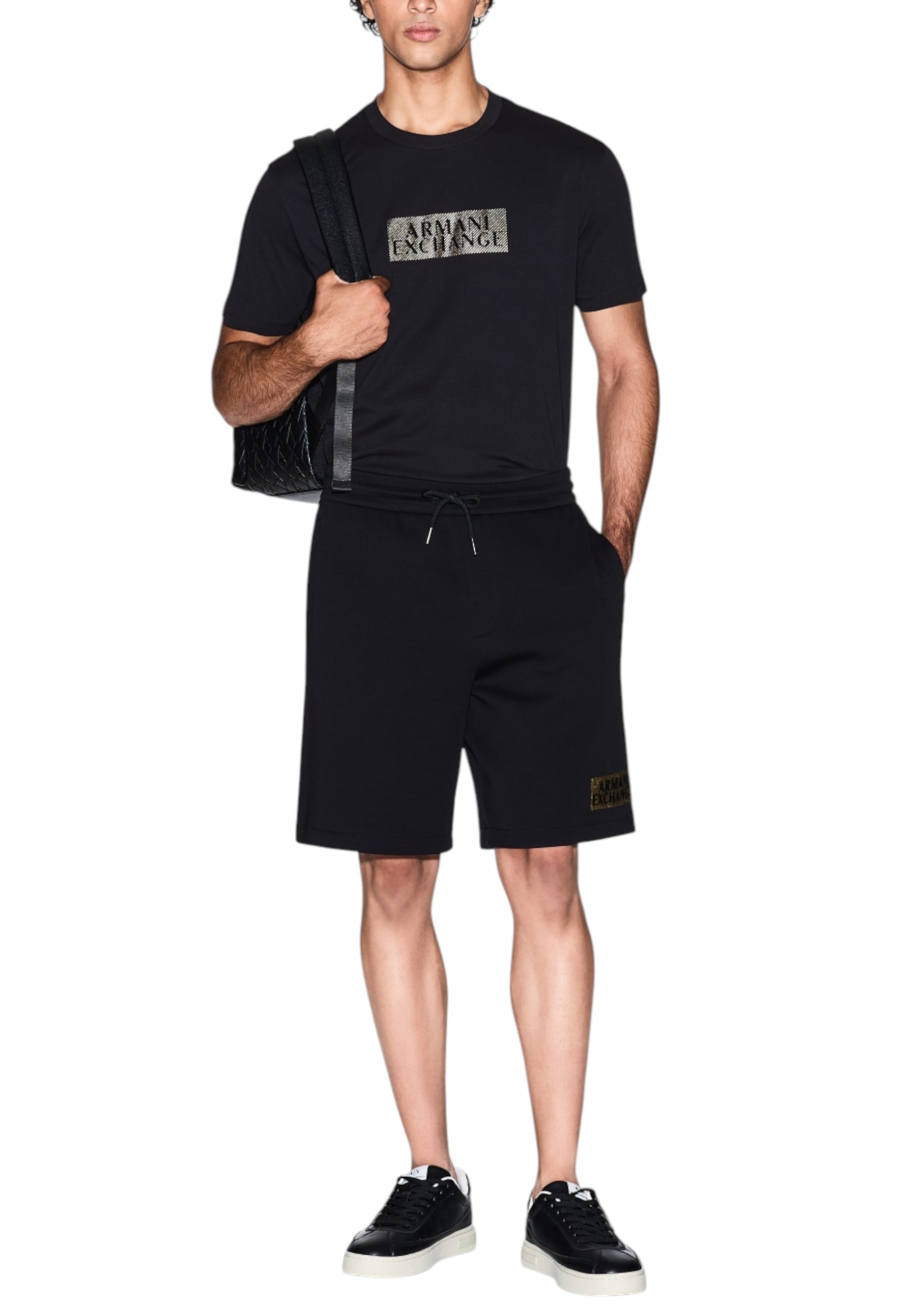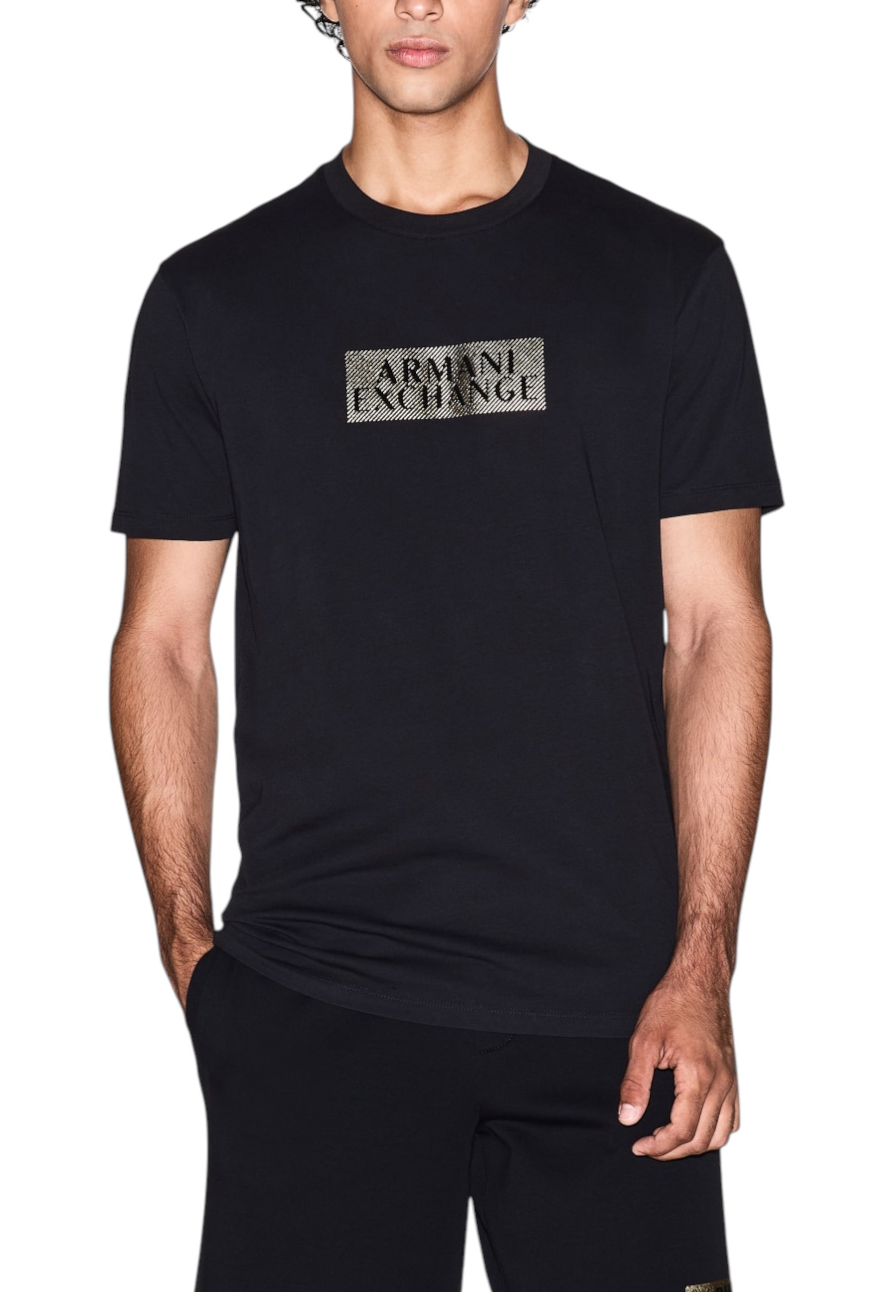 Gold Armani Exchange logo on the chest.