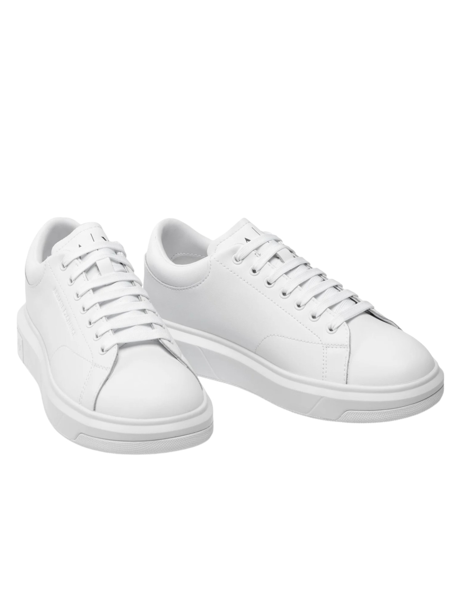 The sophisticated simplicity of a leather trainer is often just what you need to finish off an elegant outfit. And the A|X model with an allover logo insert on the heel is perfect for this.