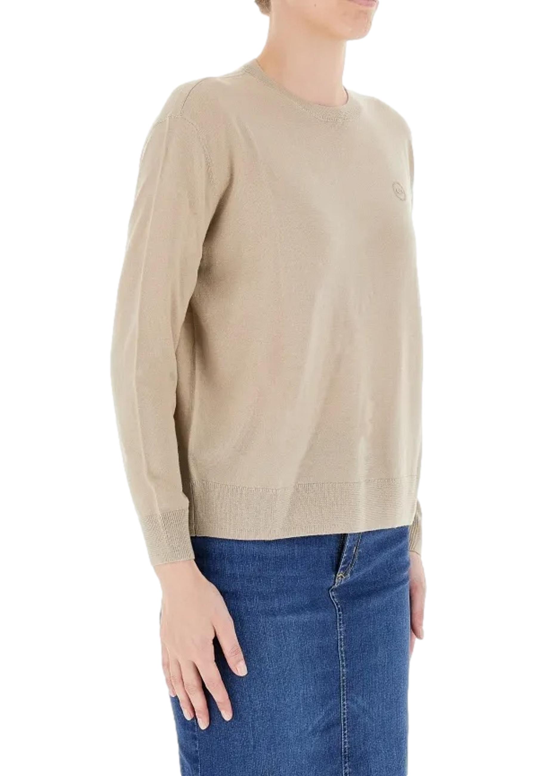 Virgin wool sweater with crew neck and long sleeves, logo on chest