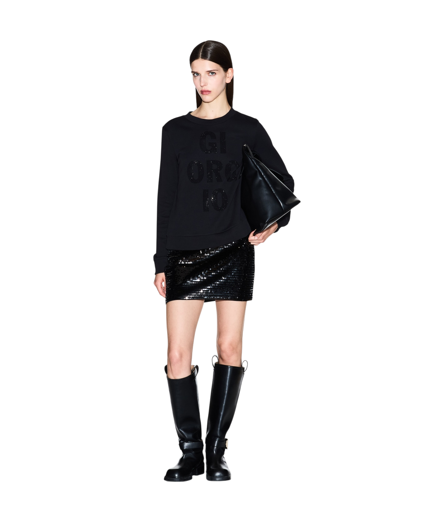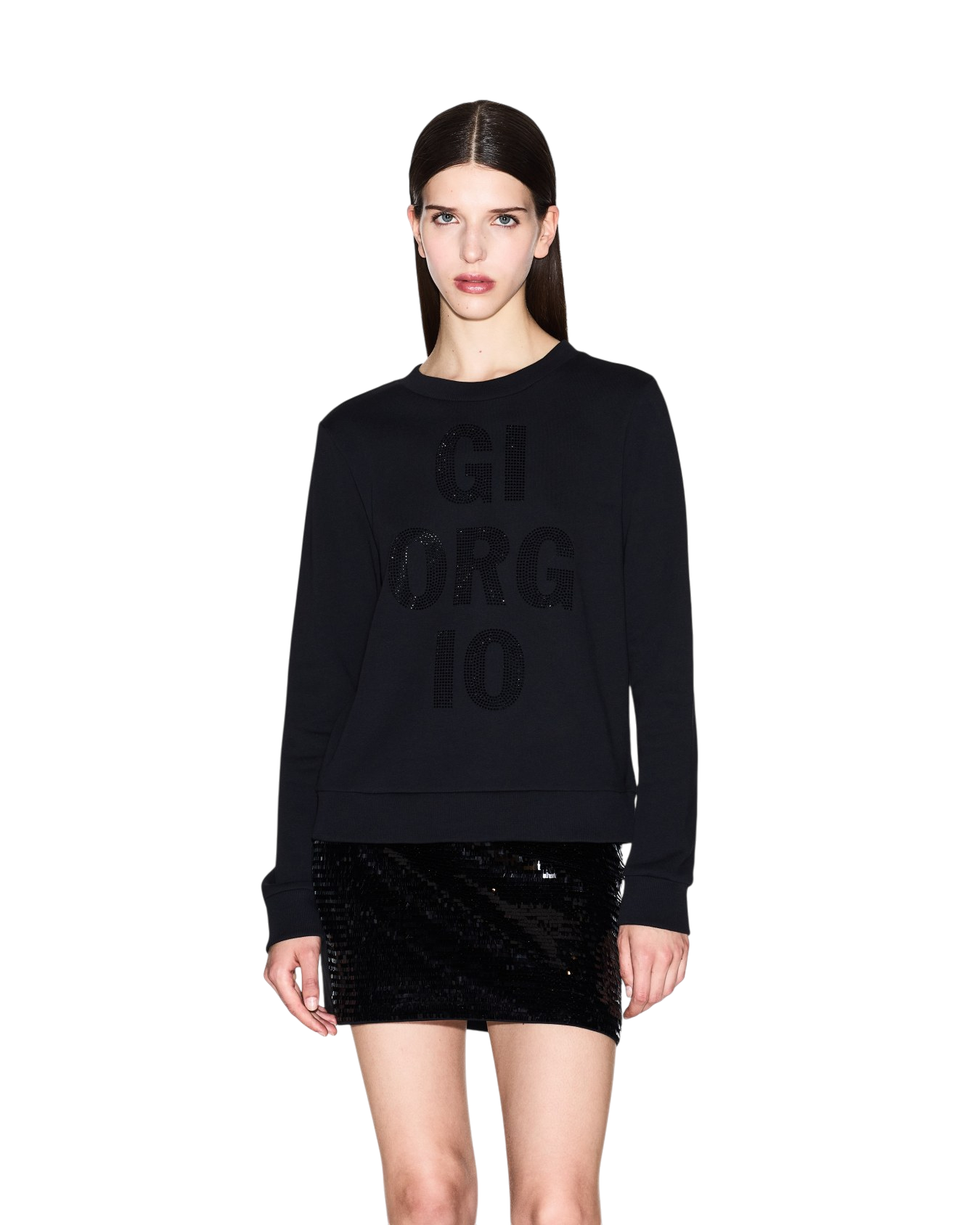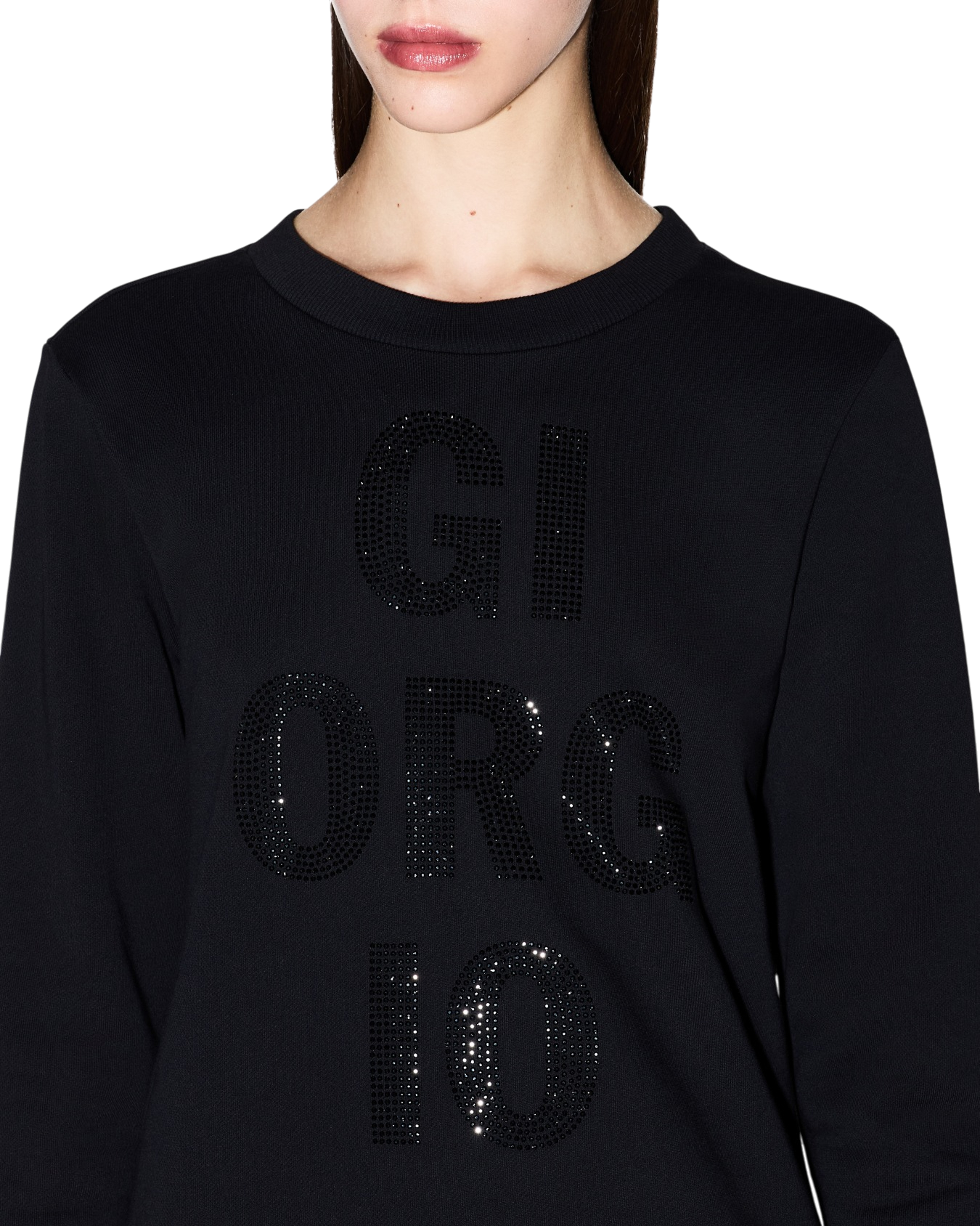 "GIORGIO" logo applied with tone-on-tone rhinestones.