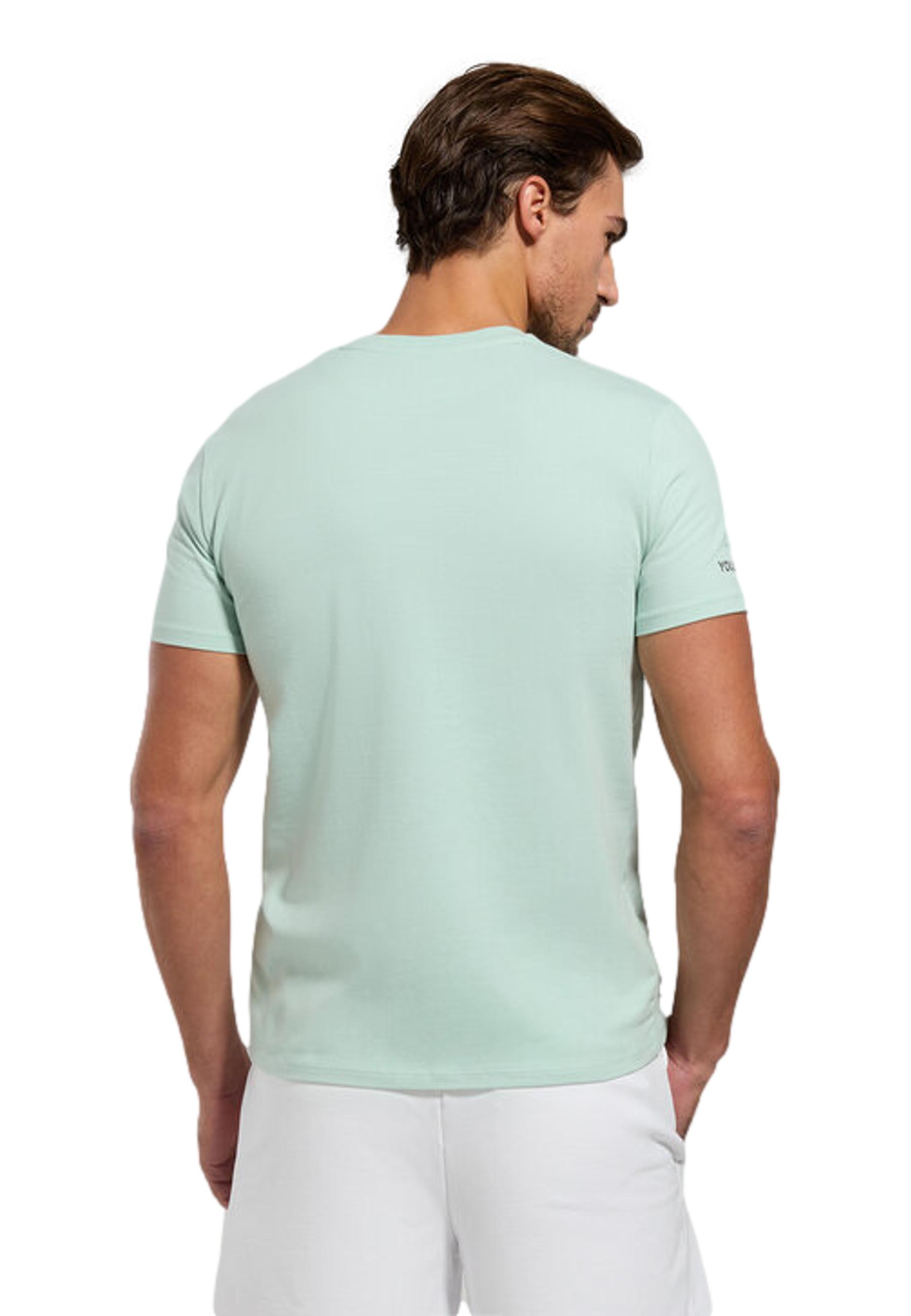 Men's crew-neck T-shirt made of stretch jersey. T-shirt is decorated with contrasting micro prints. Short sleeves.
