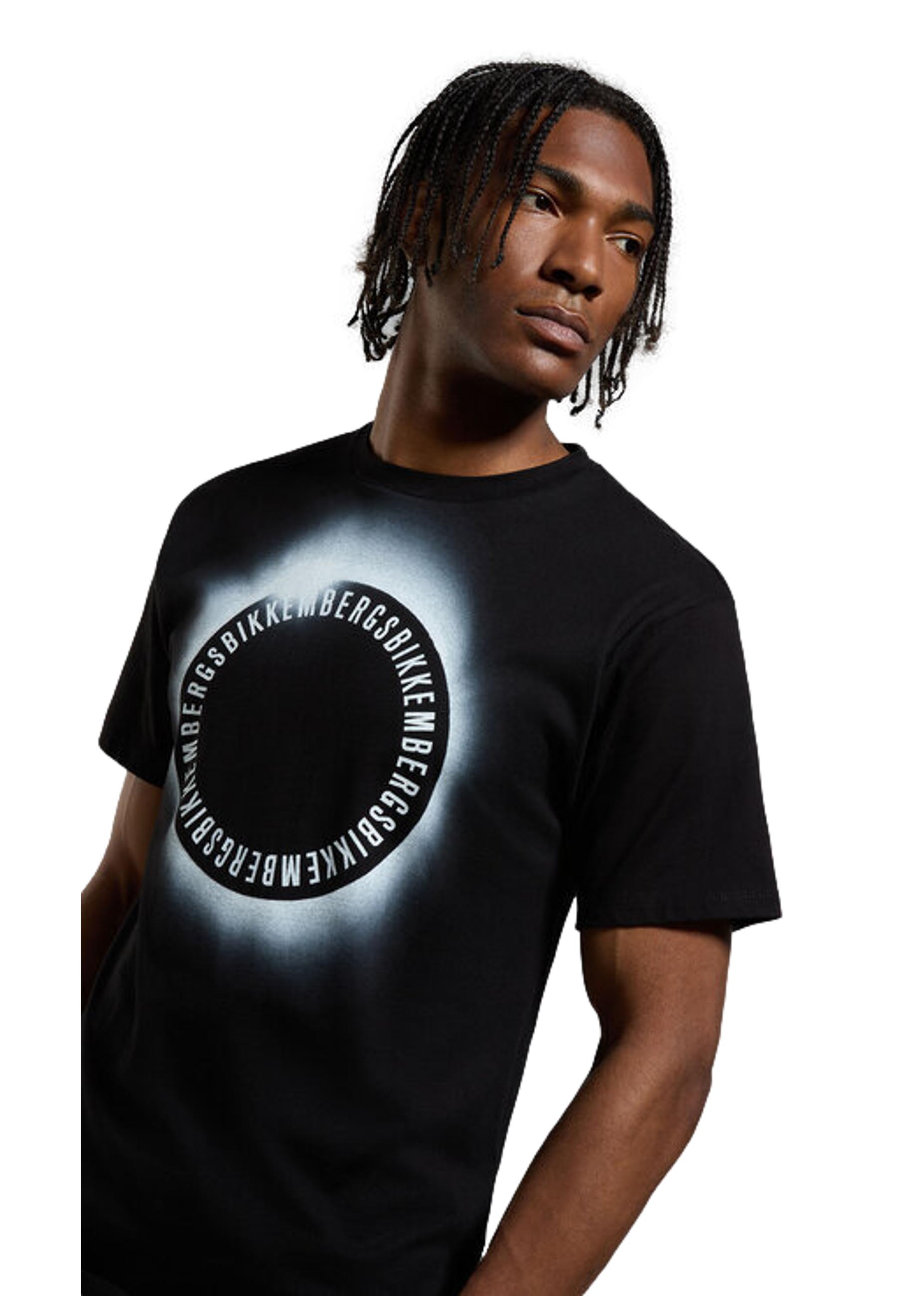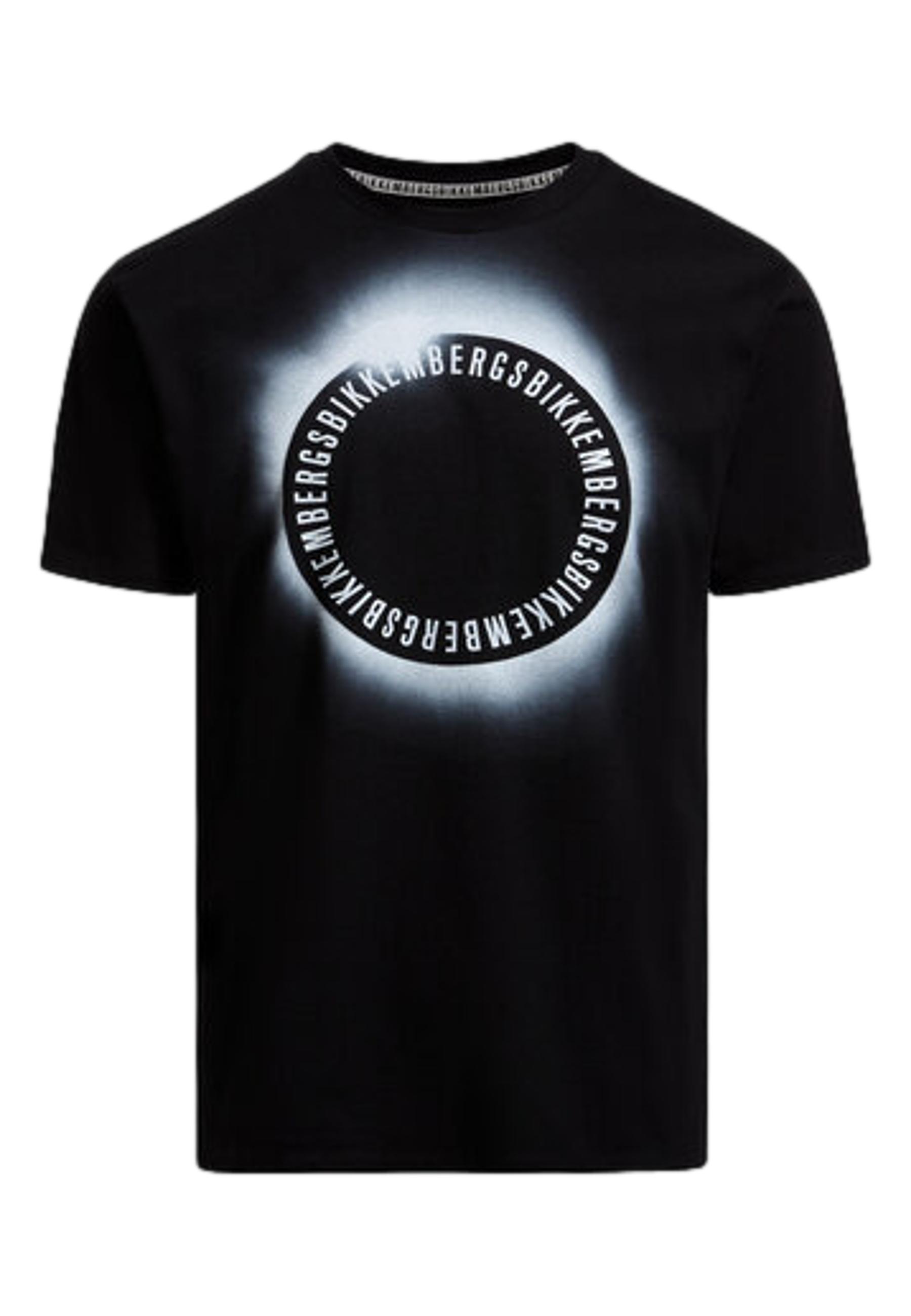 The nocturnal and dreamy atmospheres that mark one of the themes of this season's Bikkembergs collection are the protagonists of this men's T-shirt in pure cotton firm jersey featuring multiple prints evoking an eclipse.