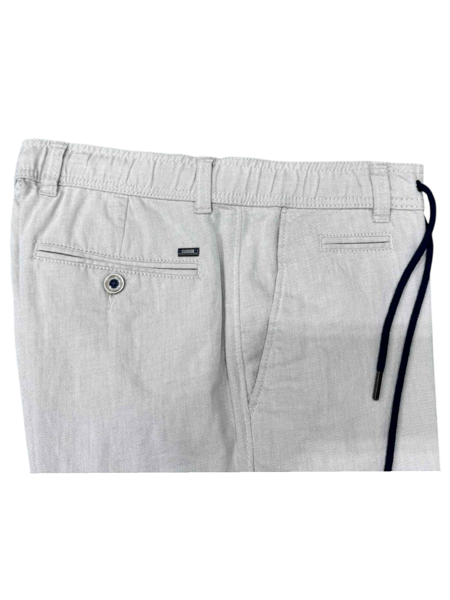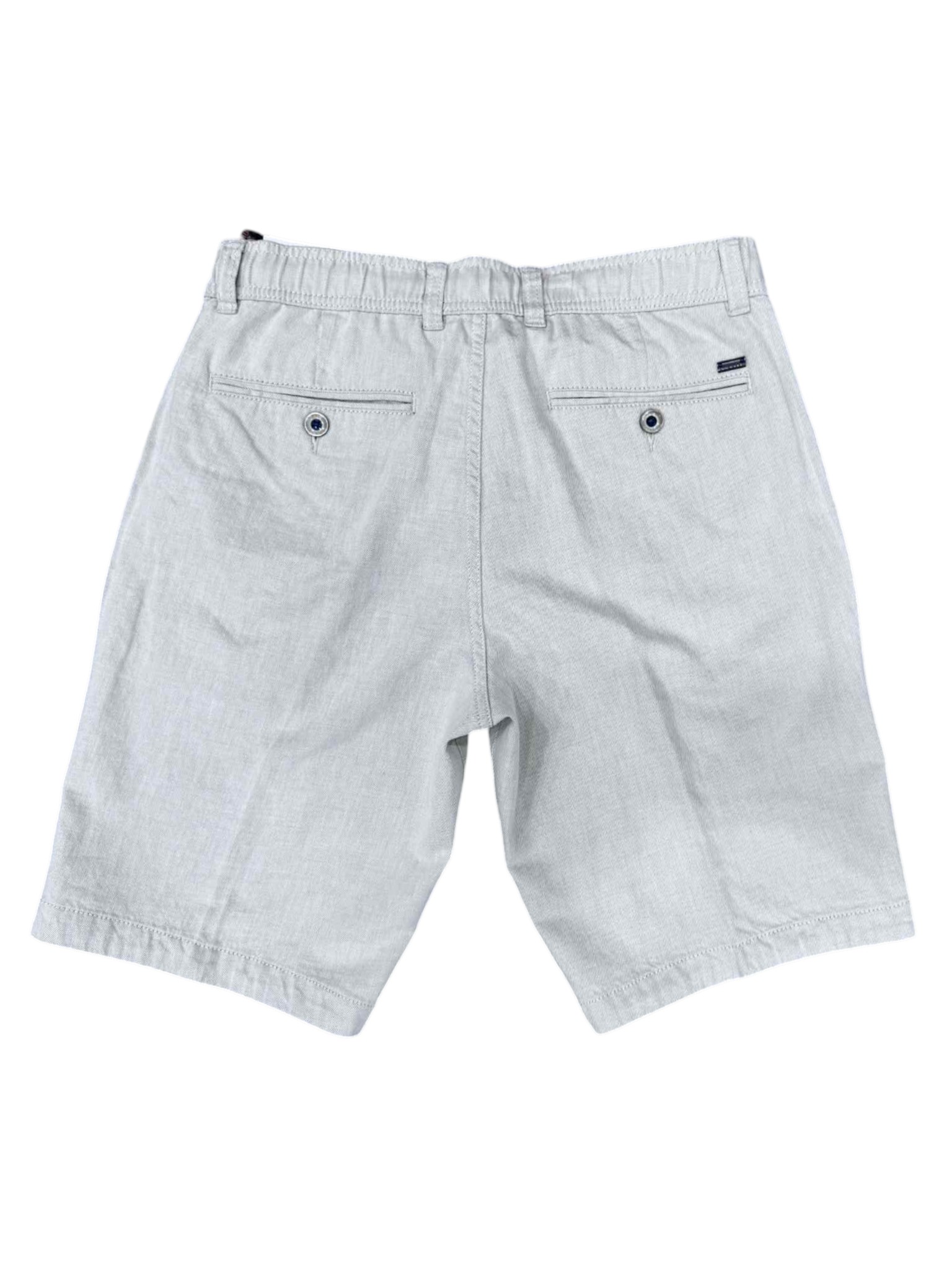 Practical and versatile men's Bermuda shorts, perfect for a relaxed yet polished summer look. Made from lightweight, comfortable fabric, they feature a combined waist closure: an adjustable drawstring for maximum comfort and a button for a more structured touch. The side pockets offer everyday functionality, while the welt pockets on the back complete the design with discretion and elegance. Ideal for leisure, travel or days in the city.