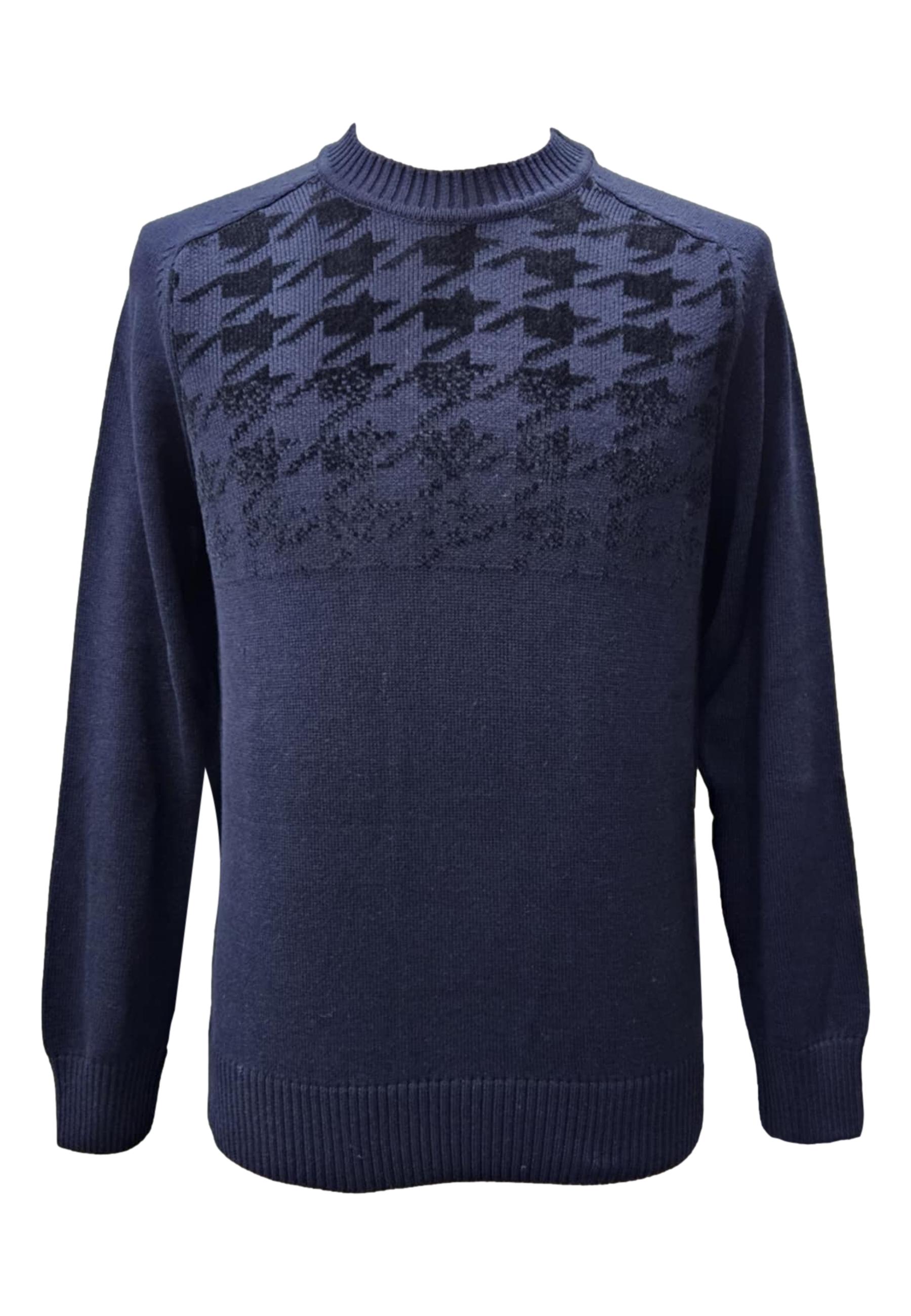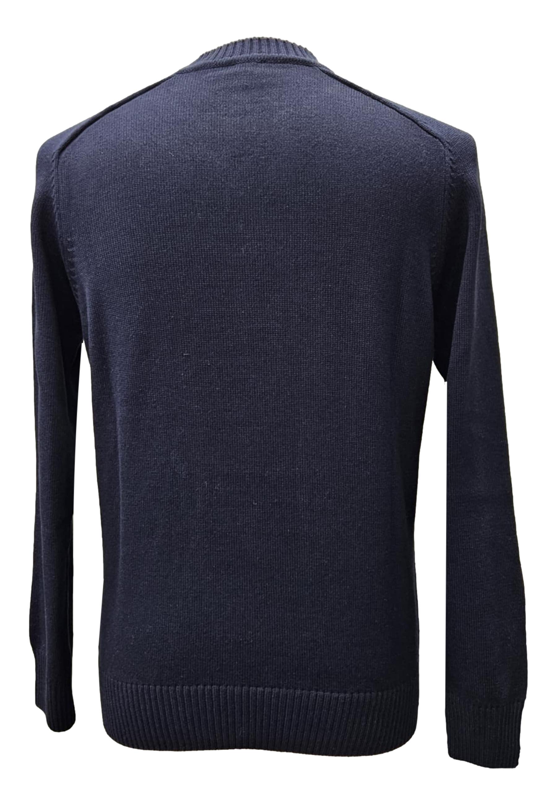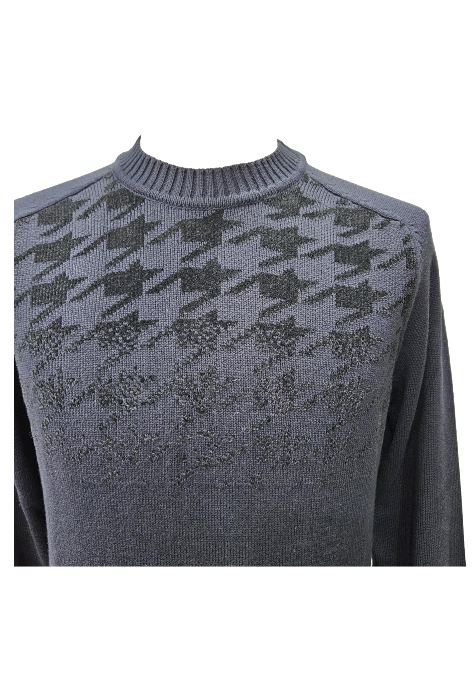 Bugatti's classic men's crew-neck knit sweater pairs well with leather jackets, parkas and wool coats. Crew-neck sweater in two-tone optic. Composition: 50% cotton, 50% acrylic.