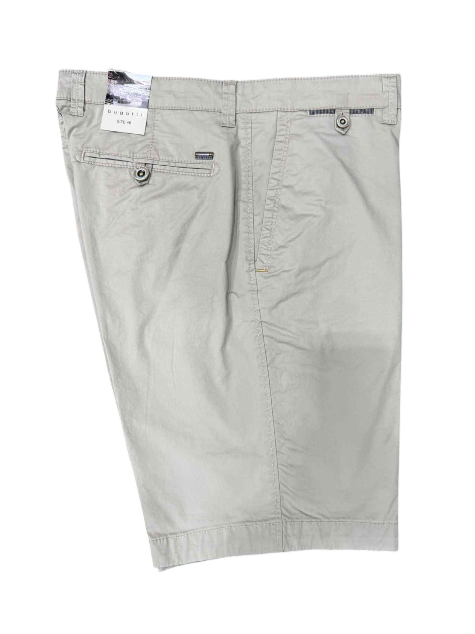 Bugatti plain Bermuda shorts for men, made from lightweight, comfortable fabric, ideal for tackling the summer season in style. The simple design is enhanced by refined details, such as the front closure waistband and slanted side pockets. On the back, the flush pockets add a touch of discreet and functional elegance. A versatile and refined garment, perfect for completing casual yet always polished looks, designed by Bugatti.