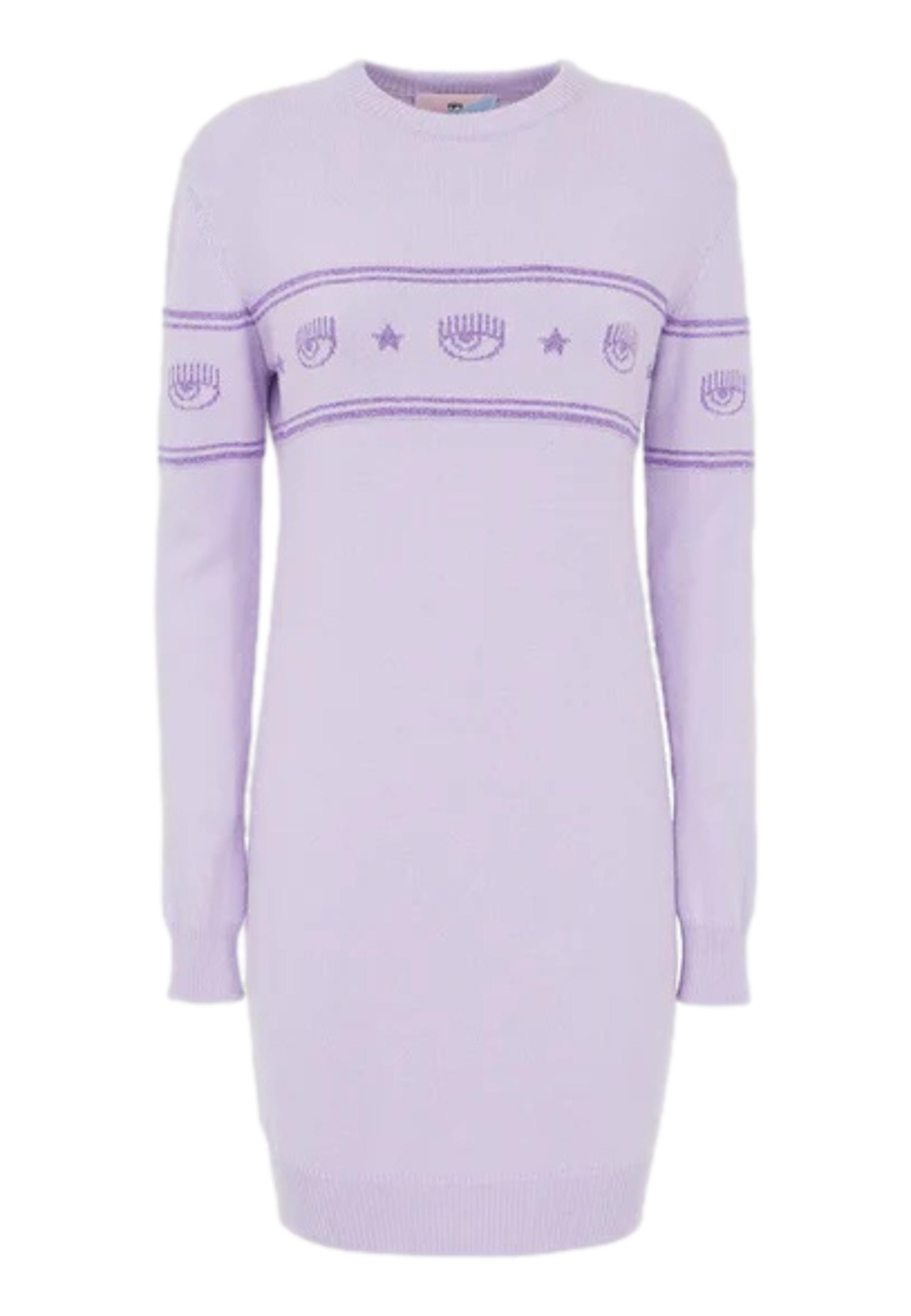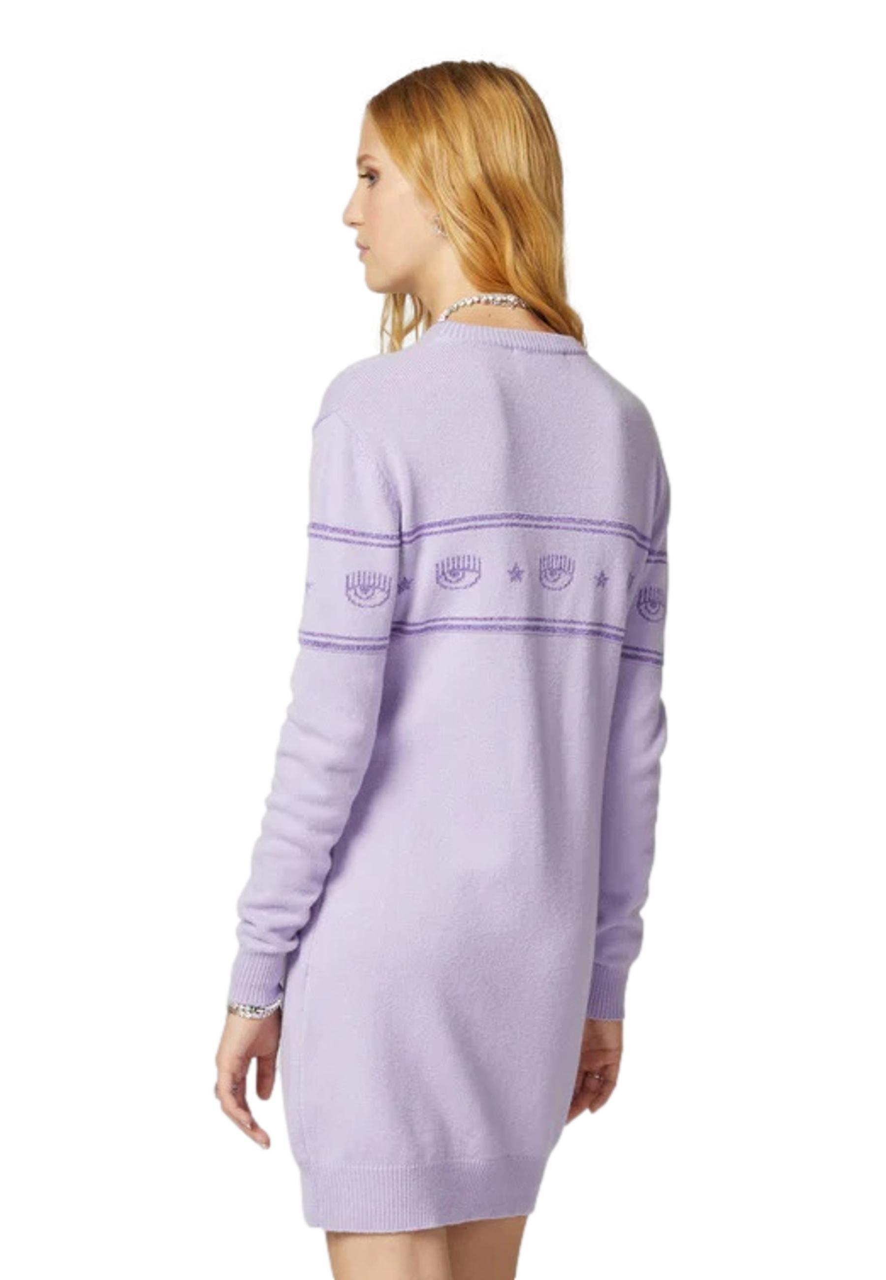 Lilac wool and cashmere blend knit dress with tone-on-tone lurex Maxi Logomania band