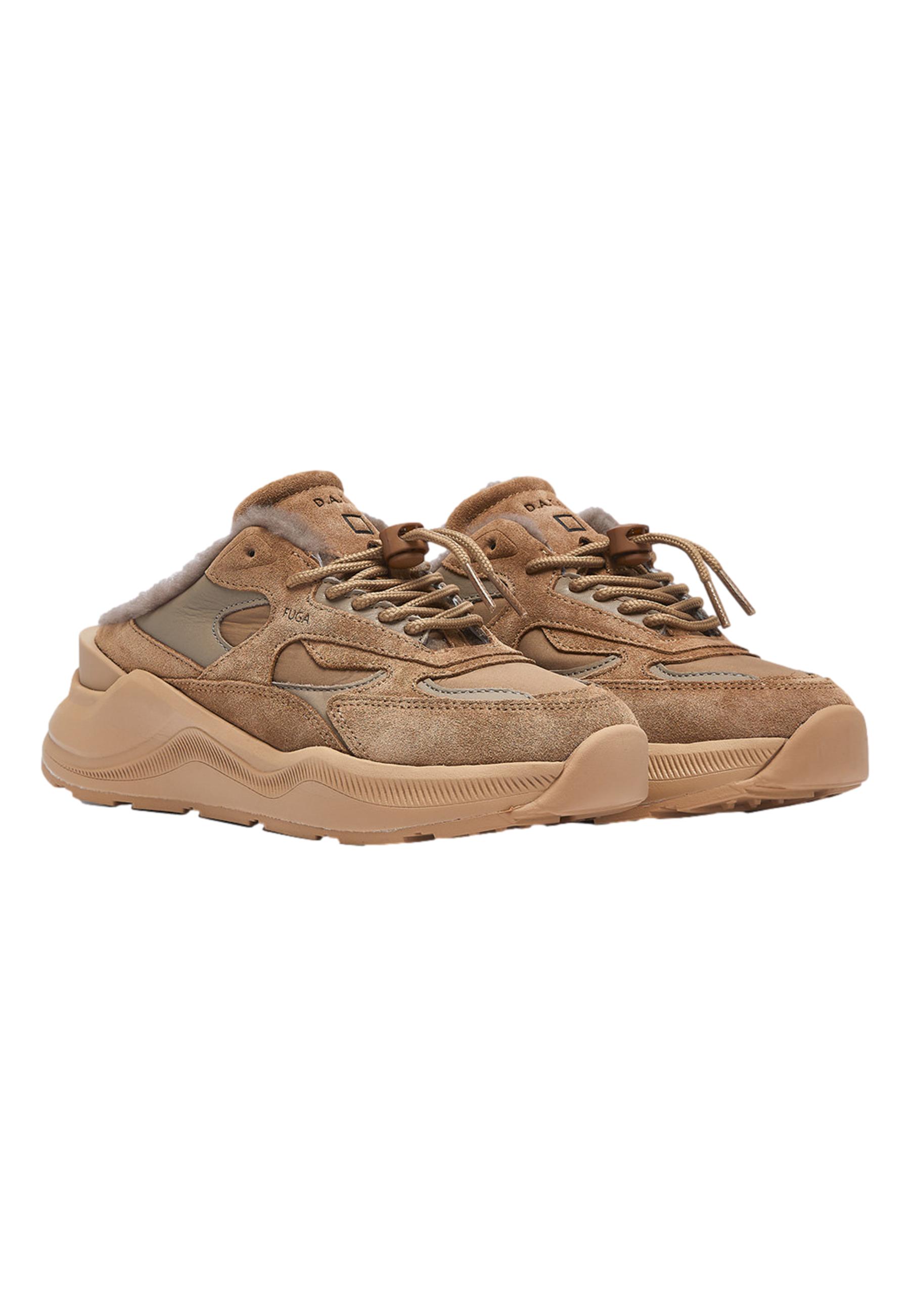 Sneakers-sabot in brown nylon with matching suede inserts. D.A.T.E. is stamped on the suede tongue.