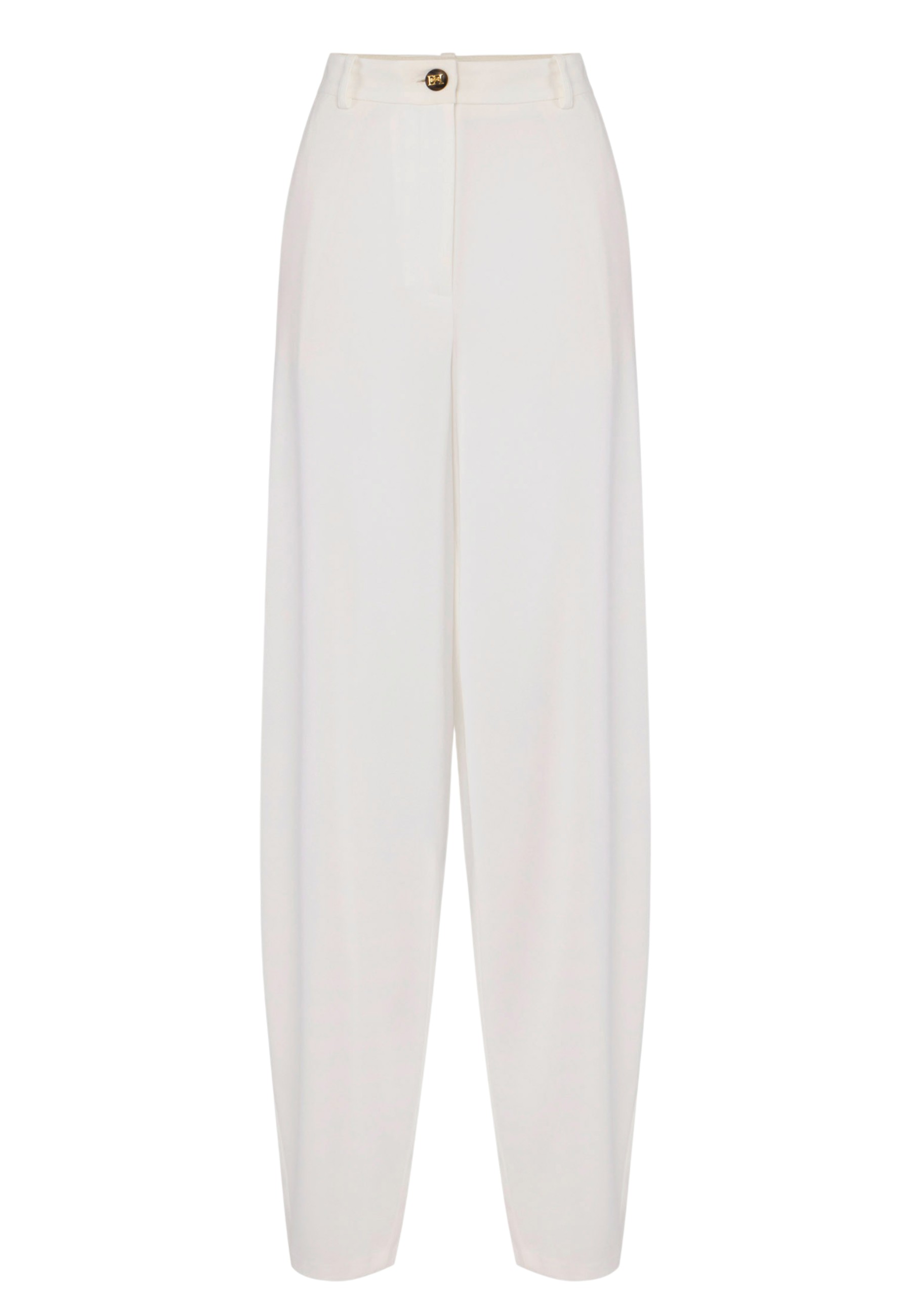 Lightweight crepe pants. With a bold silhouette, they feature French pockets and patch pockets on the back. The logo button adds a stylish detail. Oversized fit.