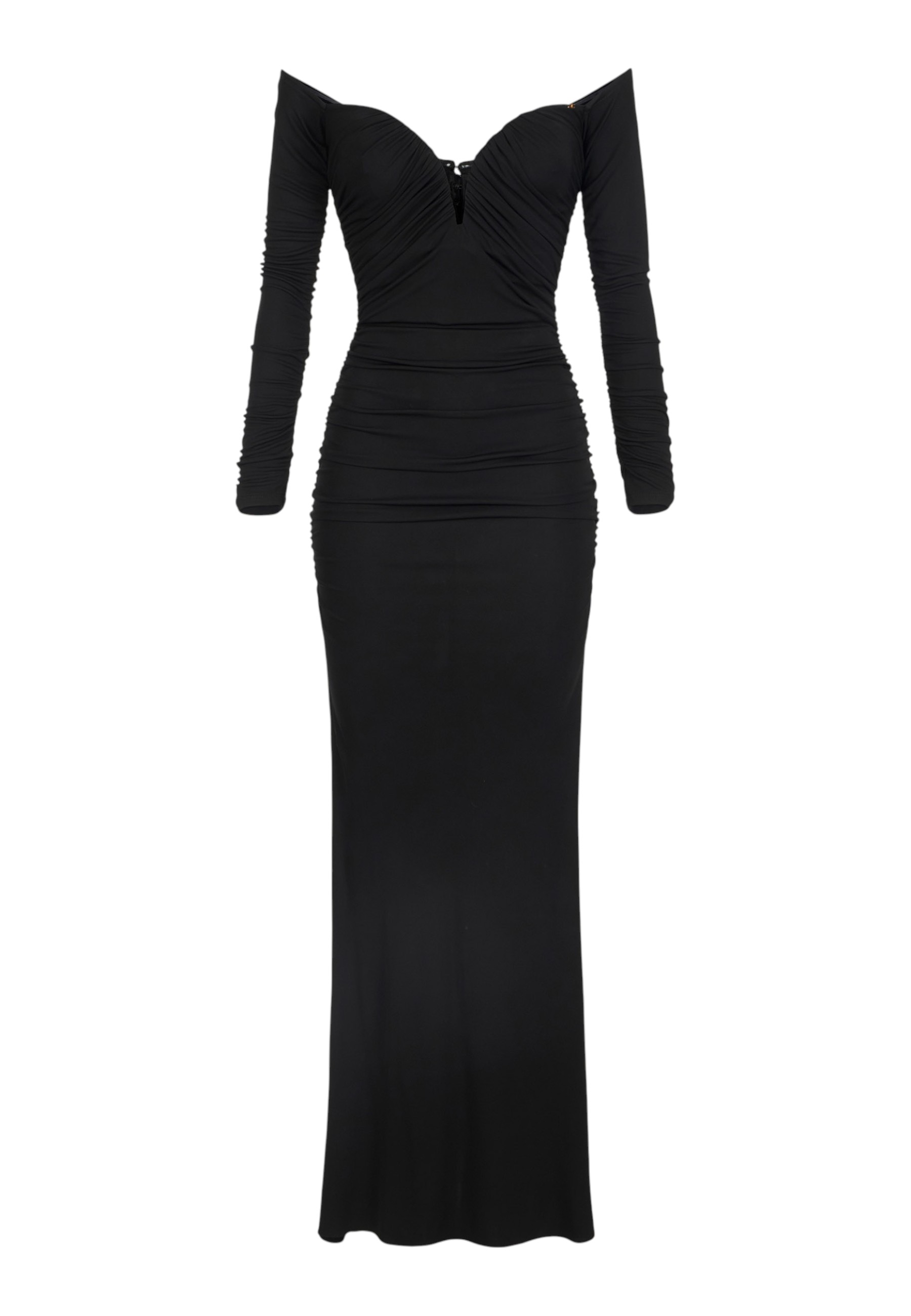 Red Carpet dress in crêpe jersey with drapingFitted evening dress in crêpe jersey. The dress has long sleeves and features an elegant sweetheart neckline that reveals the shoulders. The dense draping adds softness, while the gusset at the back of the skirt adds three-dimensionality. Logo detail.