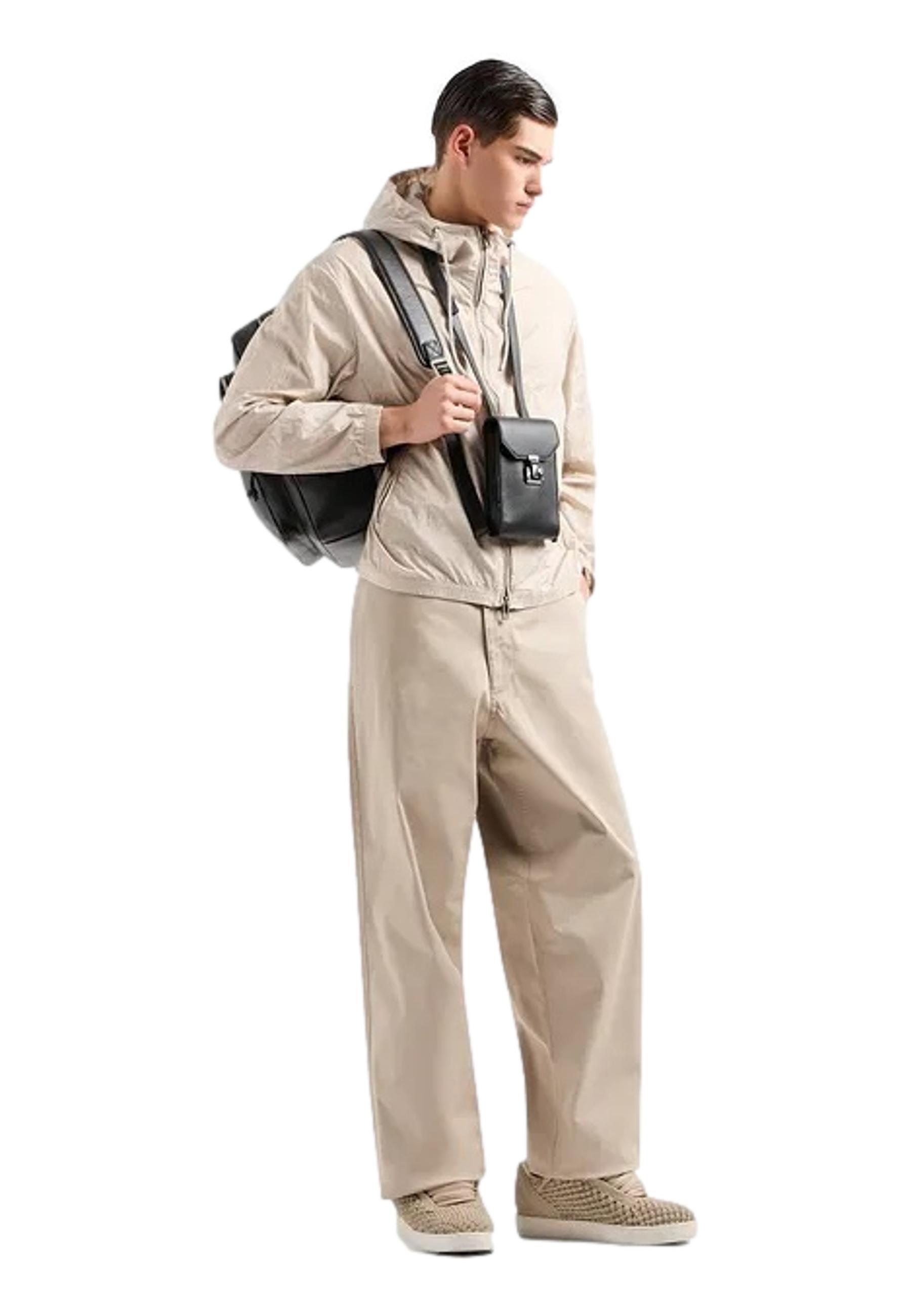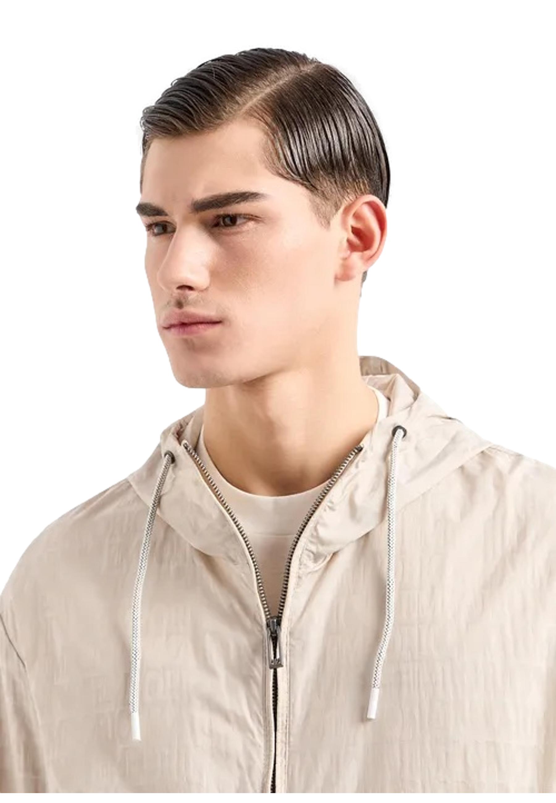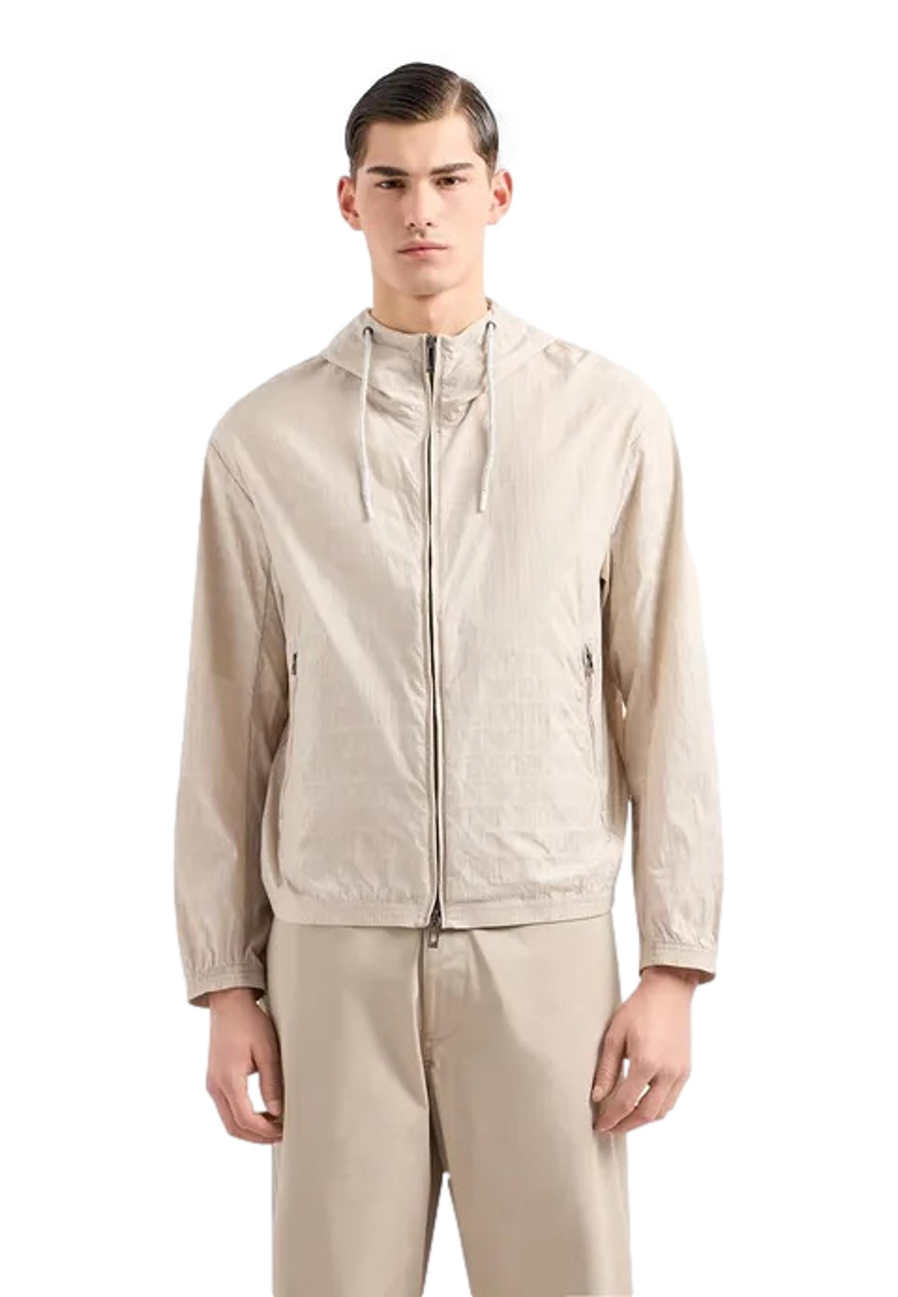 Blouson with hood and zip in light nylon jacquard with all-over lettering EMPORIO ARMANI | jackets | 3D1BH4 1NNXZ06G2