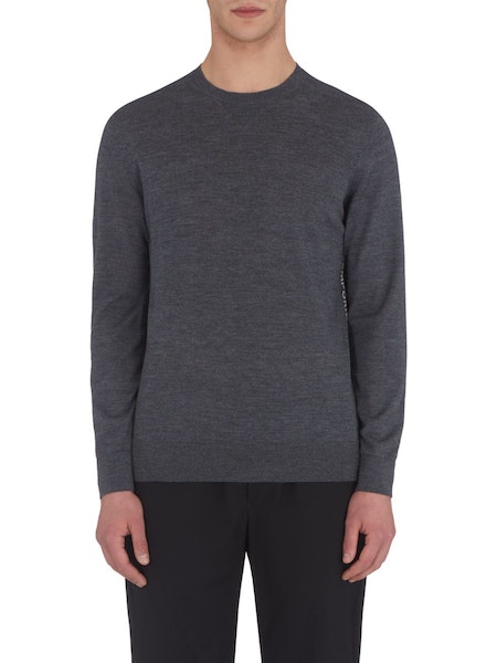 This EMPORIO ARMANI knit is made from selected sheep wool and features ribbed trims on the collar, cuffs and hem for a simple and chic design with a modern appeal.