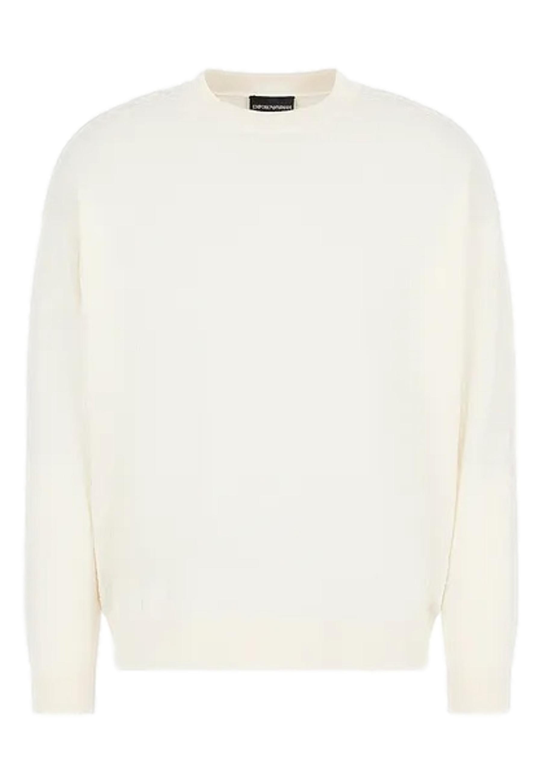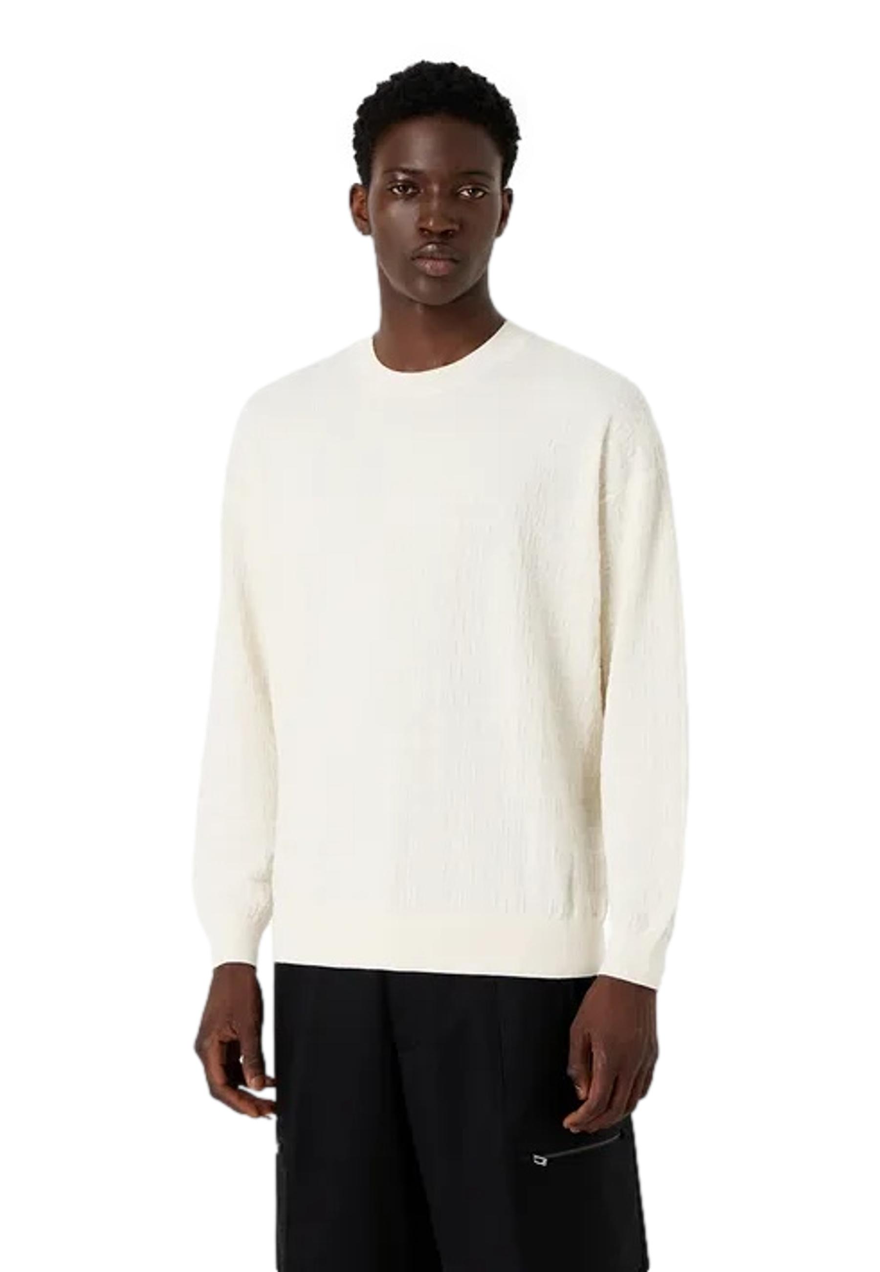 Crewneck sweater made of pure cotton jacquard. The texture is characterized by a dense tone-on-tone pattern that shows all-over logo lettering. Displayed, shown or just hinted at, the Emporio Armani logo remains an undeniable style constant.