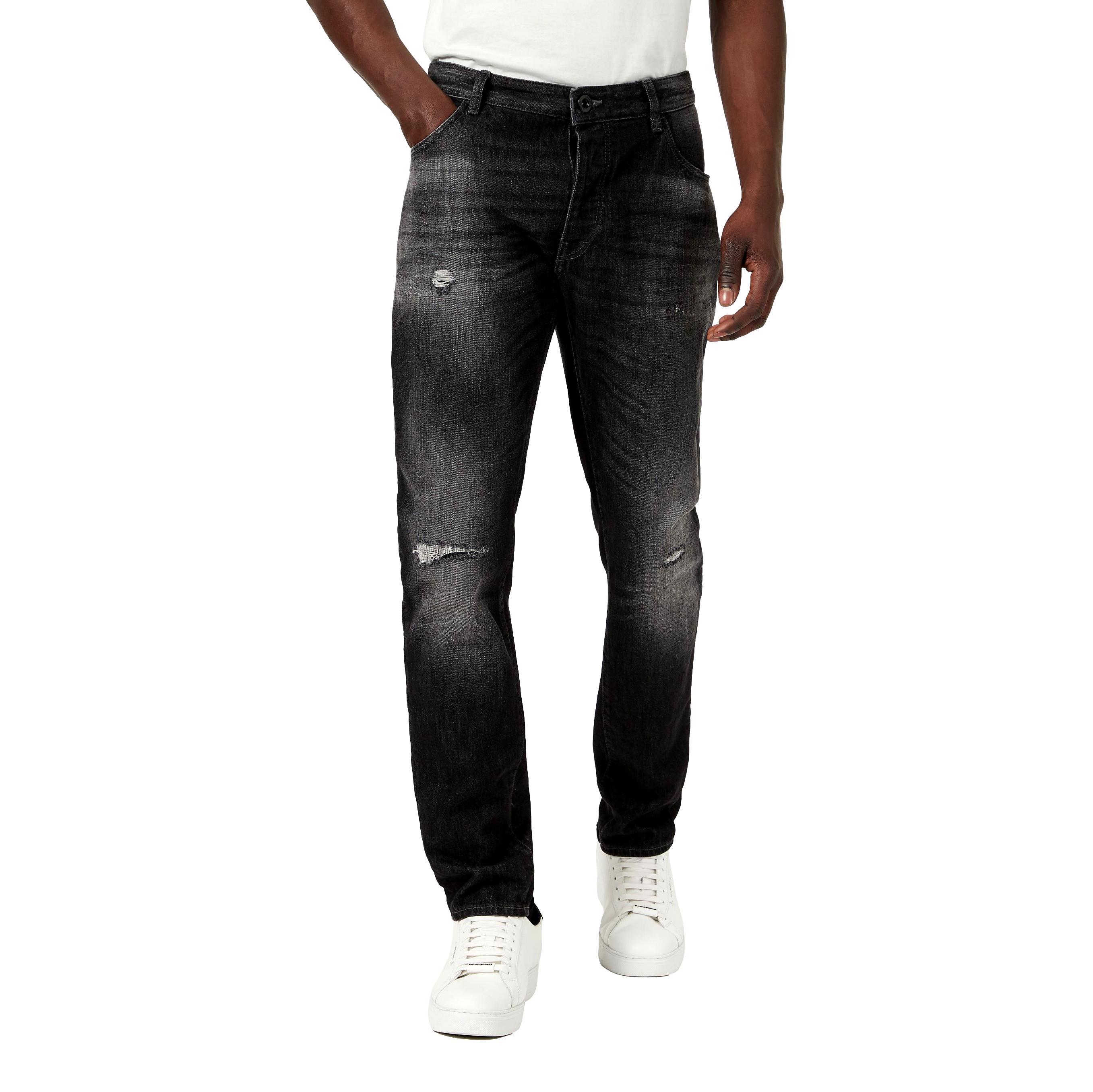 J09 slim tapered jeans in denim with tears EMPORIO ARMANI | Jeans | 3K1J09 1DX4Z0006