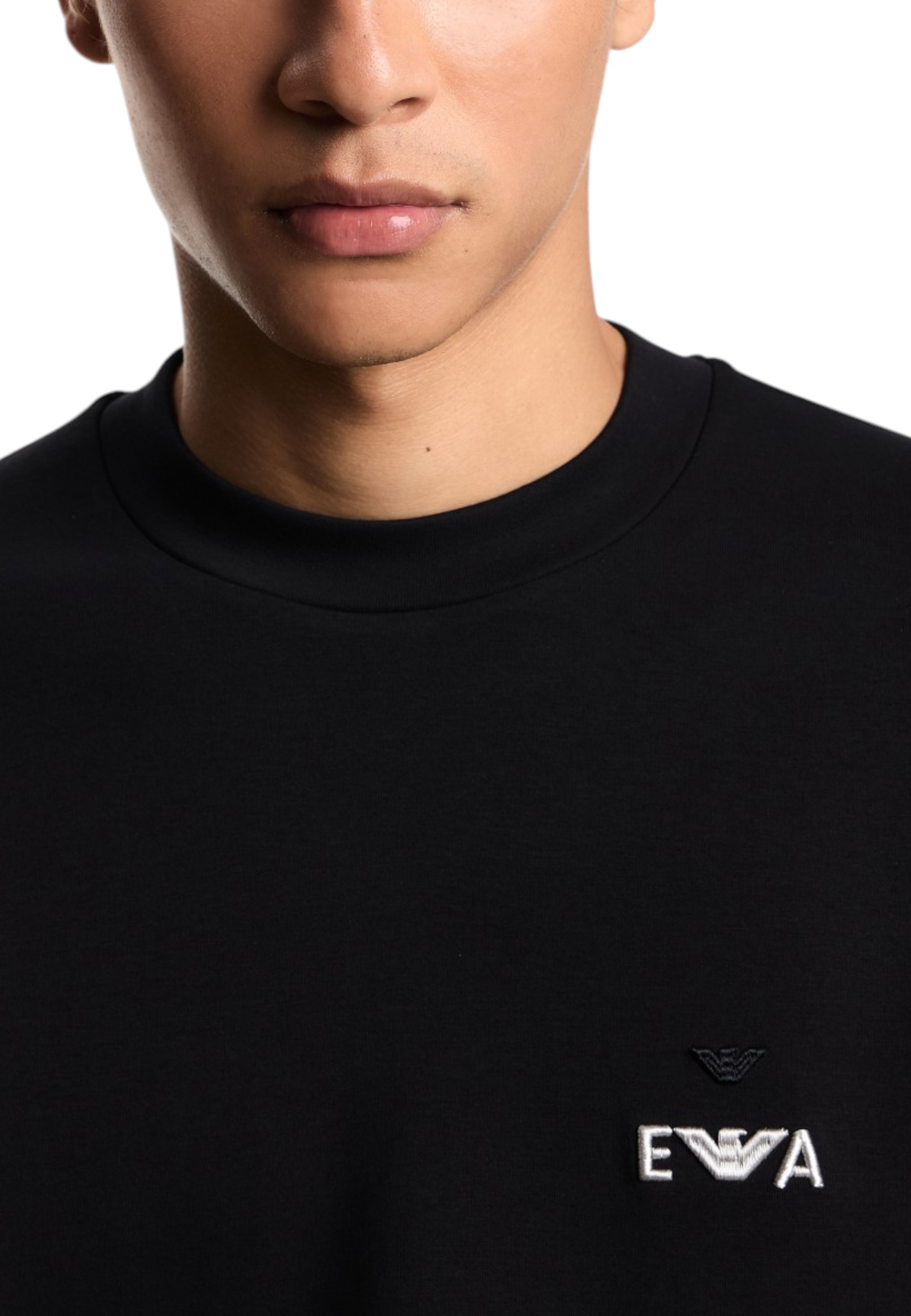 Cotton blend jersey crewneck sweatshirt. The contrasting, raised EA logo embroidery completes and adds distinction to the garment.