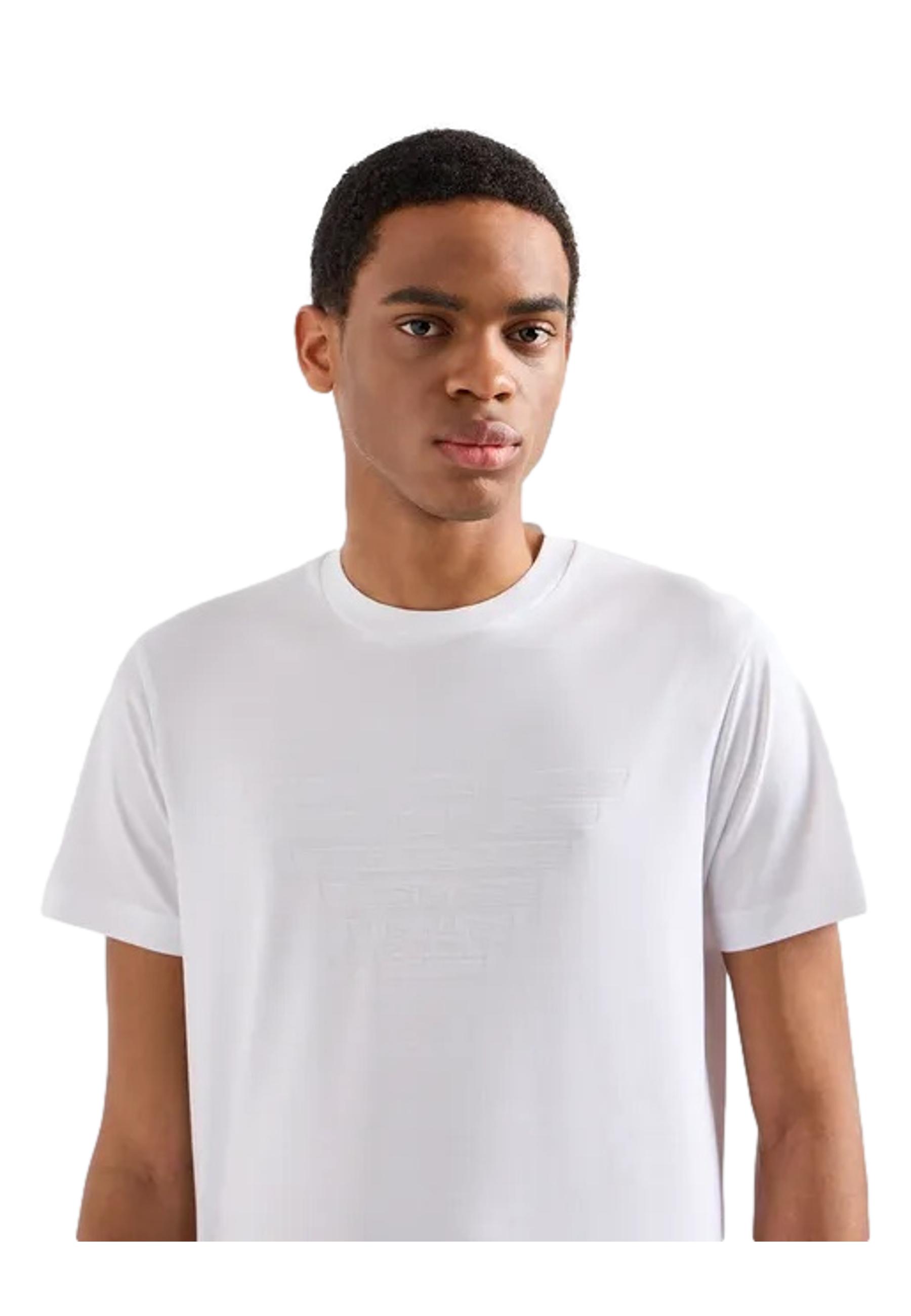 Men's T-shirt made of pure cotton jersey with jacquard-worked front logo. The garment belongs to the Essentials selection of garments, the Emporio Armani capsule that establishes itself as a timeless style statement: a continuous collection, clean in shape and designed for a wardrobe suitable for any season of the year. The so-called "essential" and versatile garments that should not be missing in the men's closet.