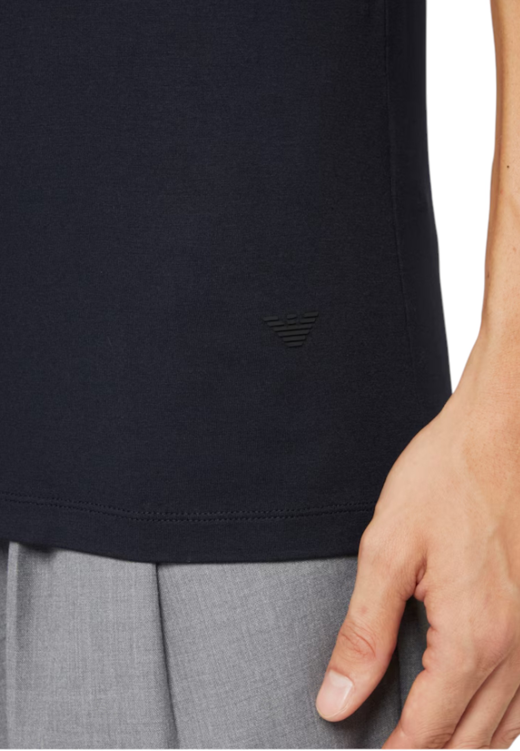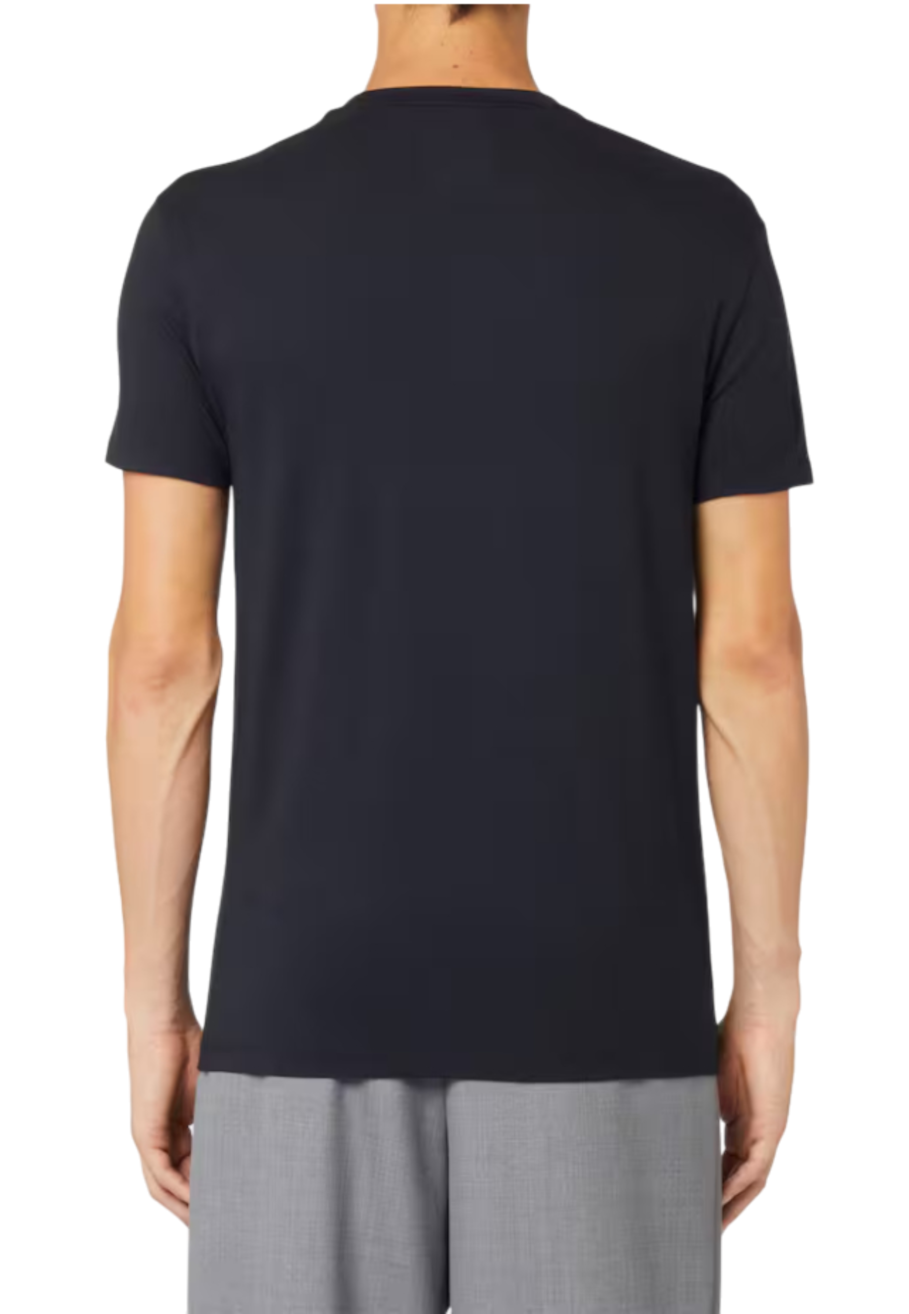 The classic crew neck and short sleeves complete a clean, contemporary design, typical of Emporio Armani style.