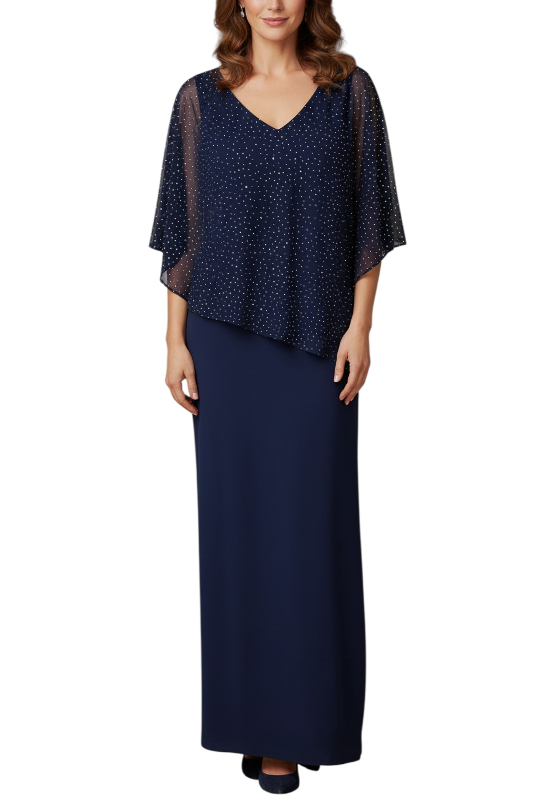 Long dress with rhinestone cape