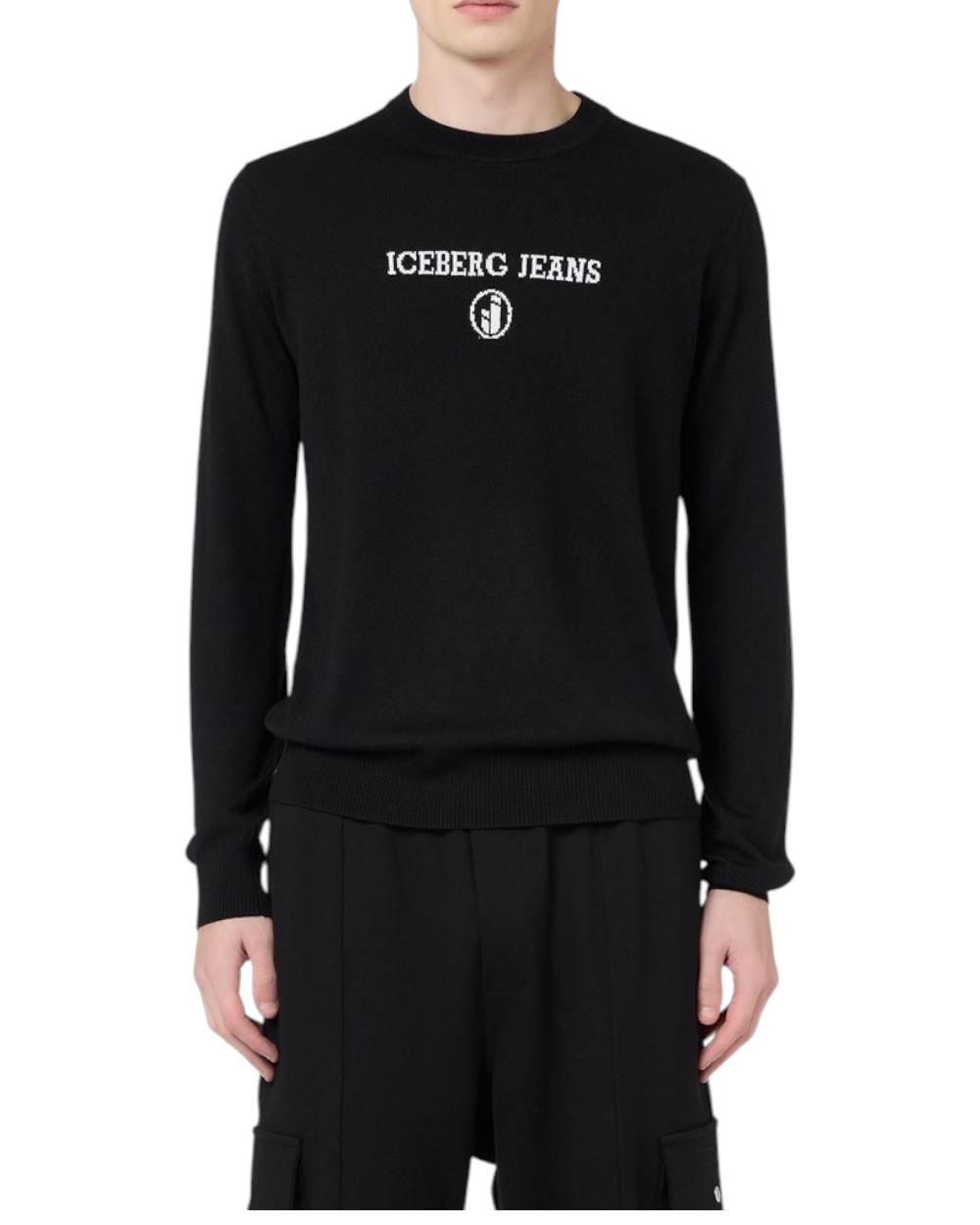 Black crew neck pullover in plain knit with tonal Iceberg logo ICEBERG JEANS | sweaters | A00290089000