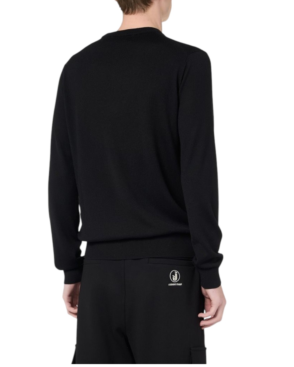 Black crew neck pullover in plain knit with tonal Iceberg logo