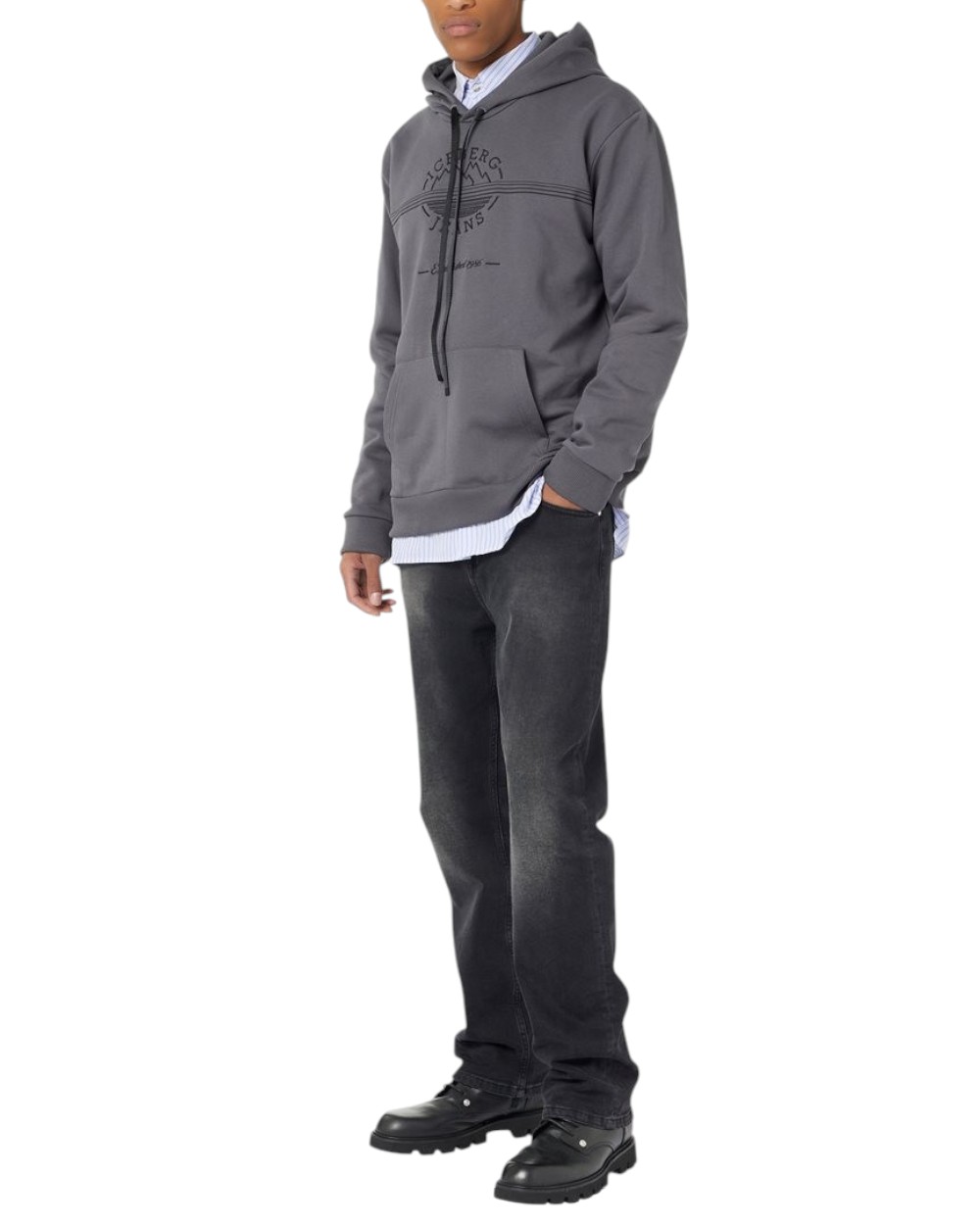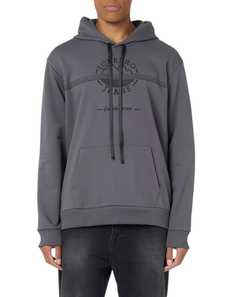 Chill Fit hoodie in lead grey diagonal cotton fleece with Iceberg logo and mountain details ICEBERG JEANS | Sweatshirts | E2H163298633
