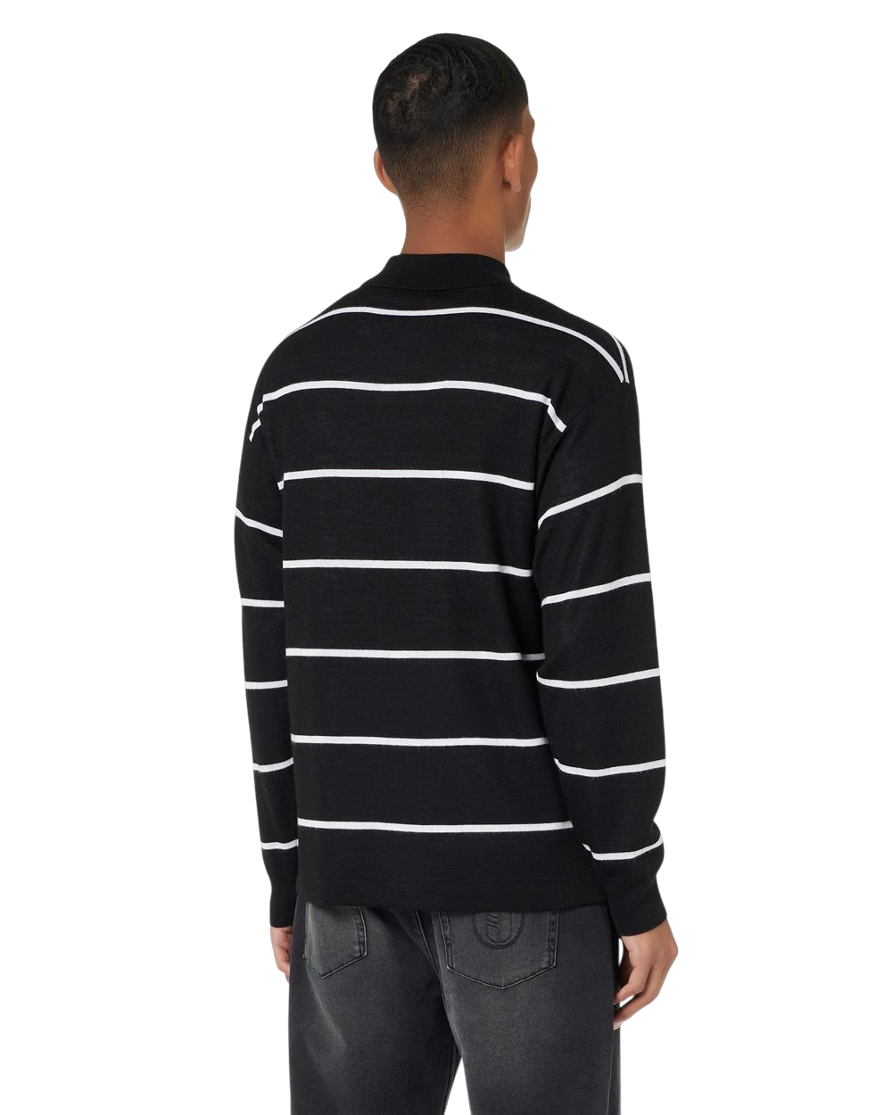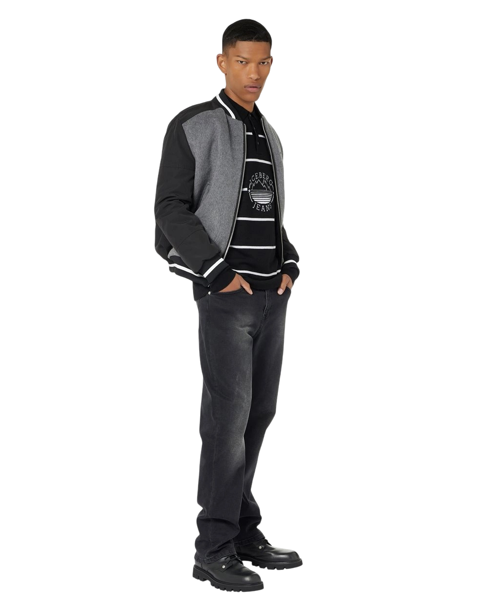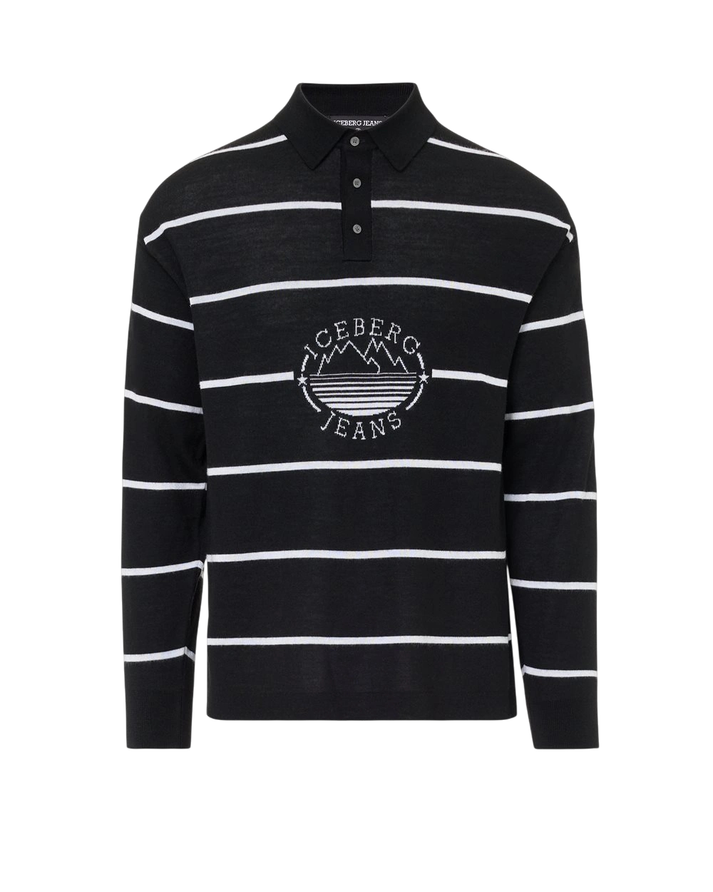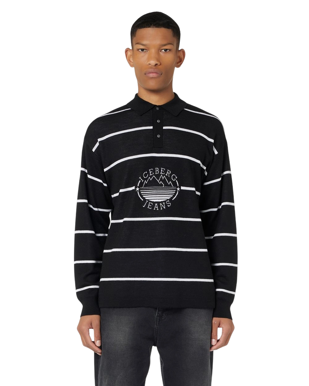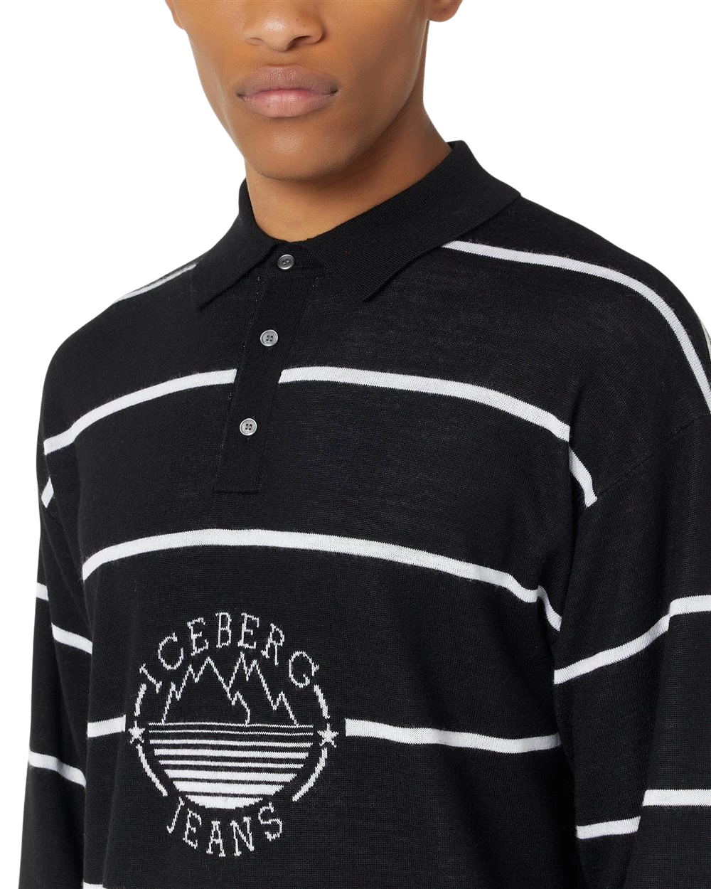 This contemporary regular fit polo shirt is crafted from 14-gauge double jacquard knit, featuring stripes across the entire garment and sleeves. The centre front is embellished with an Iceberg logo and mountain inlay, adding a distinctive and refined touch to the design, perfect for those who love a sophisticated and comfortable style.