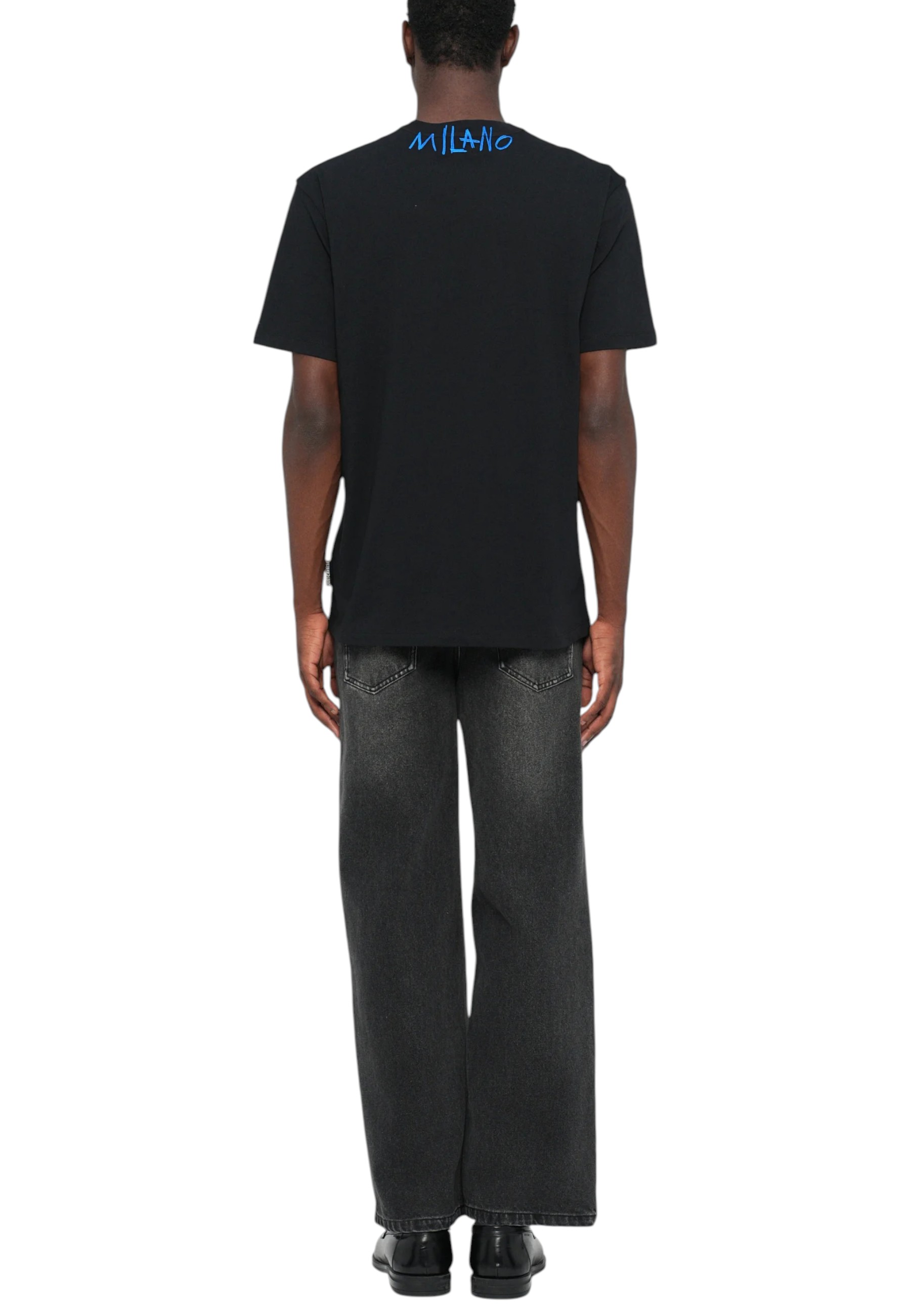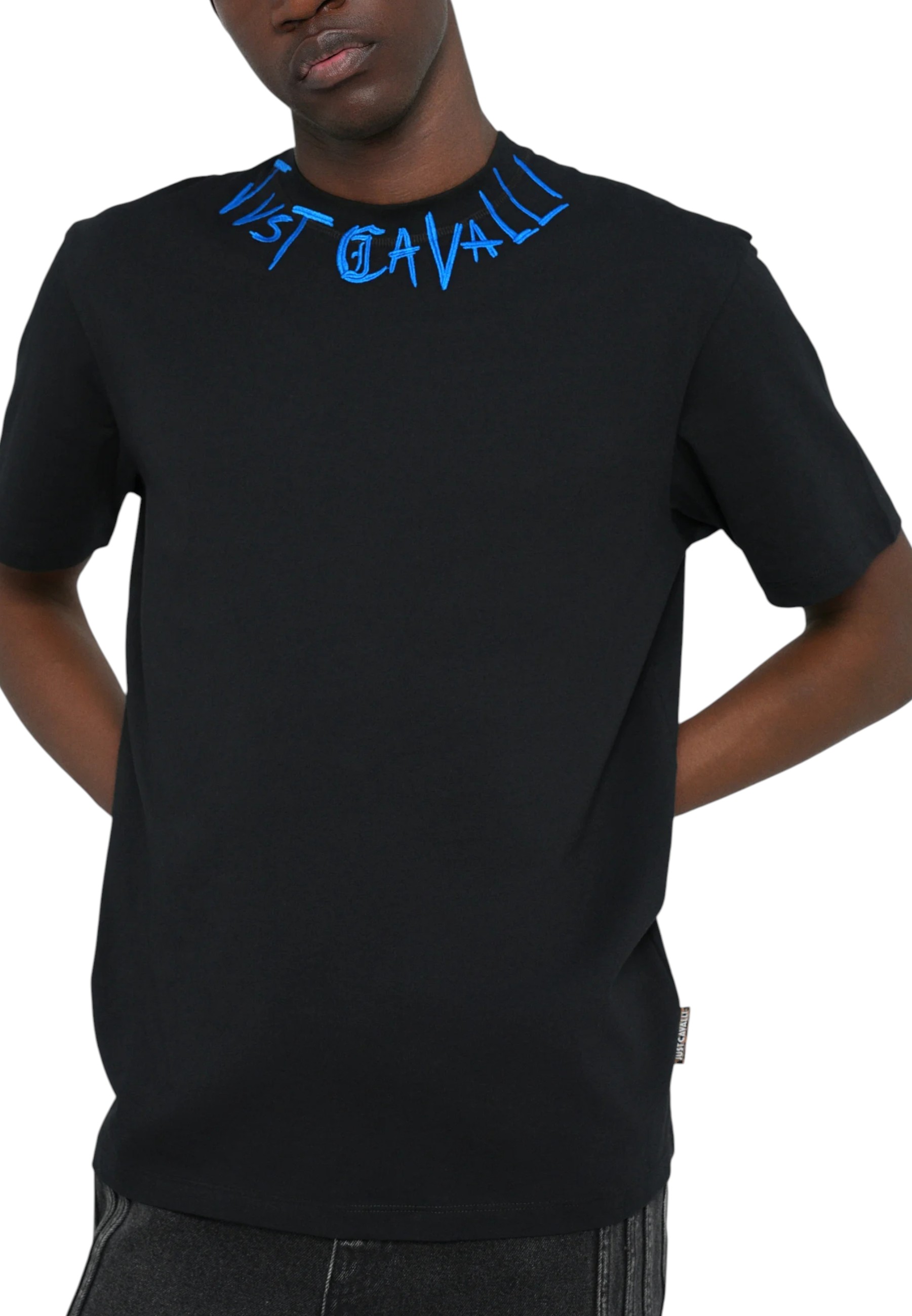 Embodying Just Cavalli's rebellious spirit, this T-shirt redefines casual luxury with its distinctive graffiti-style logo. The bold lettering artfully wraps around the crew neck and decorates the back, creating a statement piece. Crafted from soft cotton jersey, it offers exceptional comfort and an undeniable urban touch, perfect for a contemporary wardrobe.