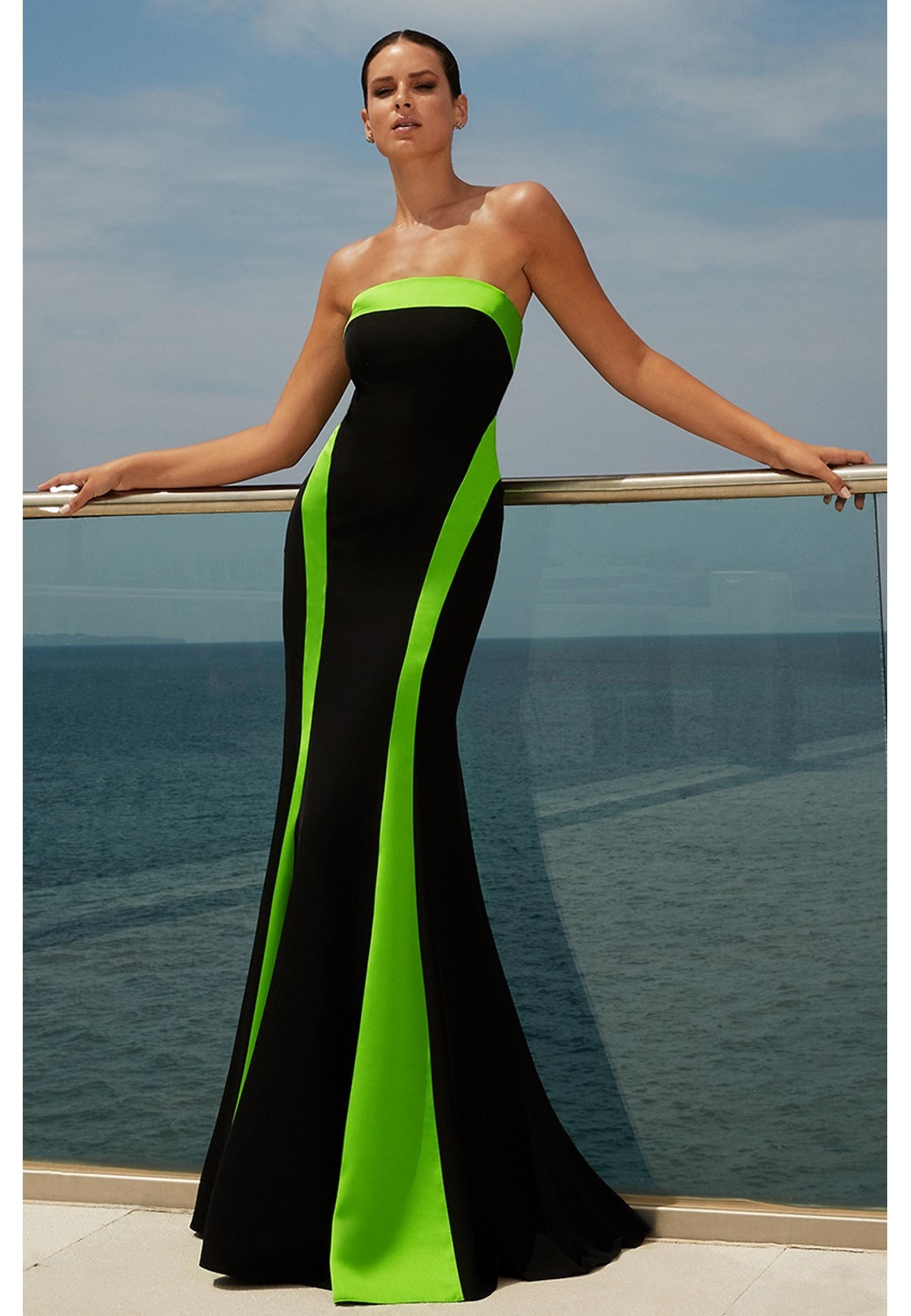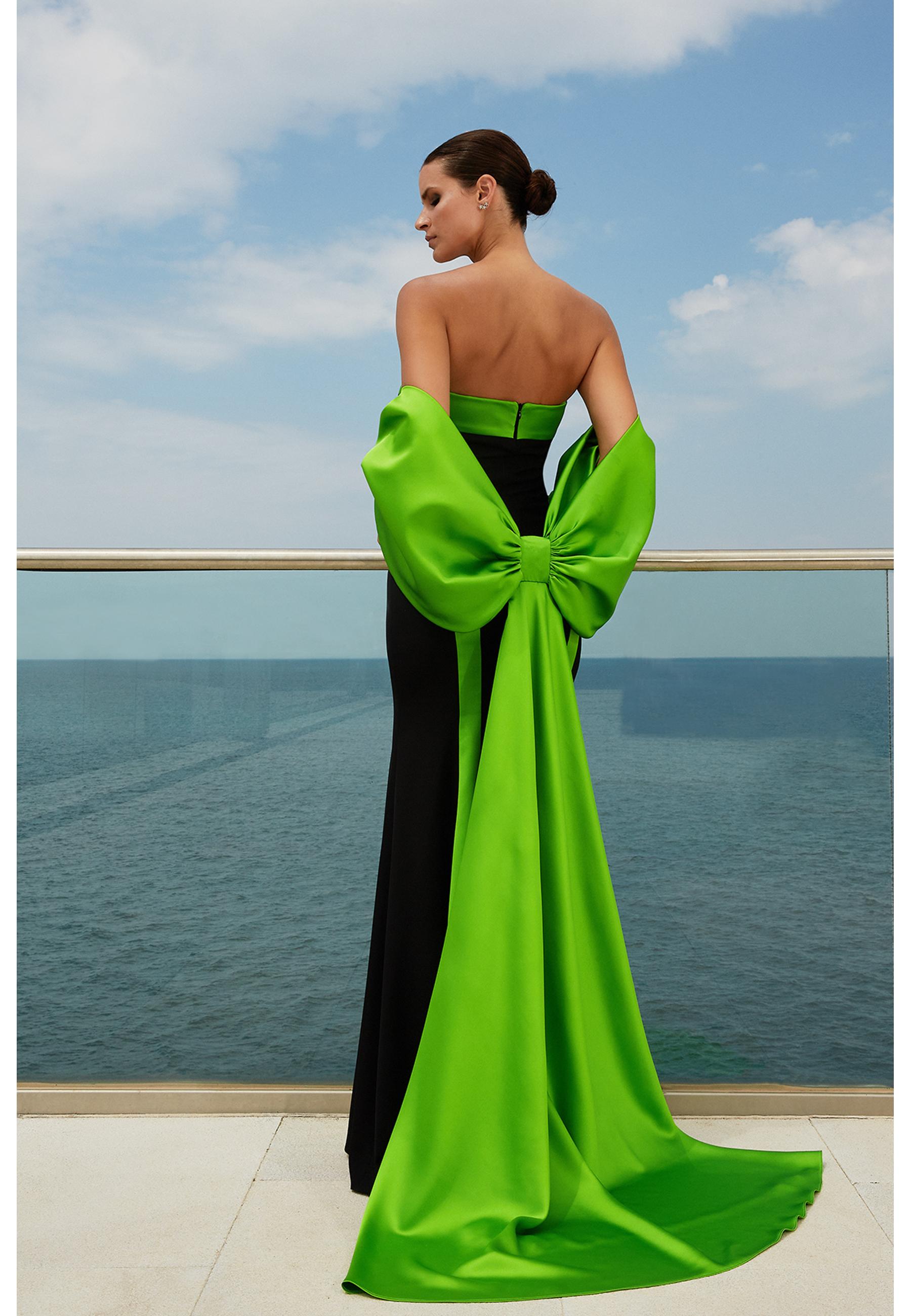 Two-tone long dress with tassel-effect tafta stole Maestri