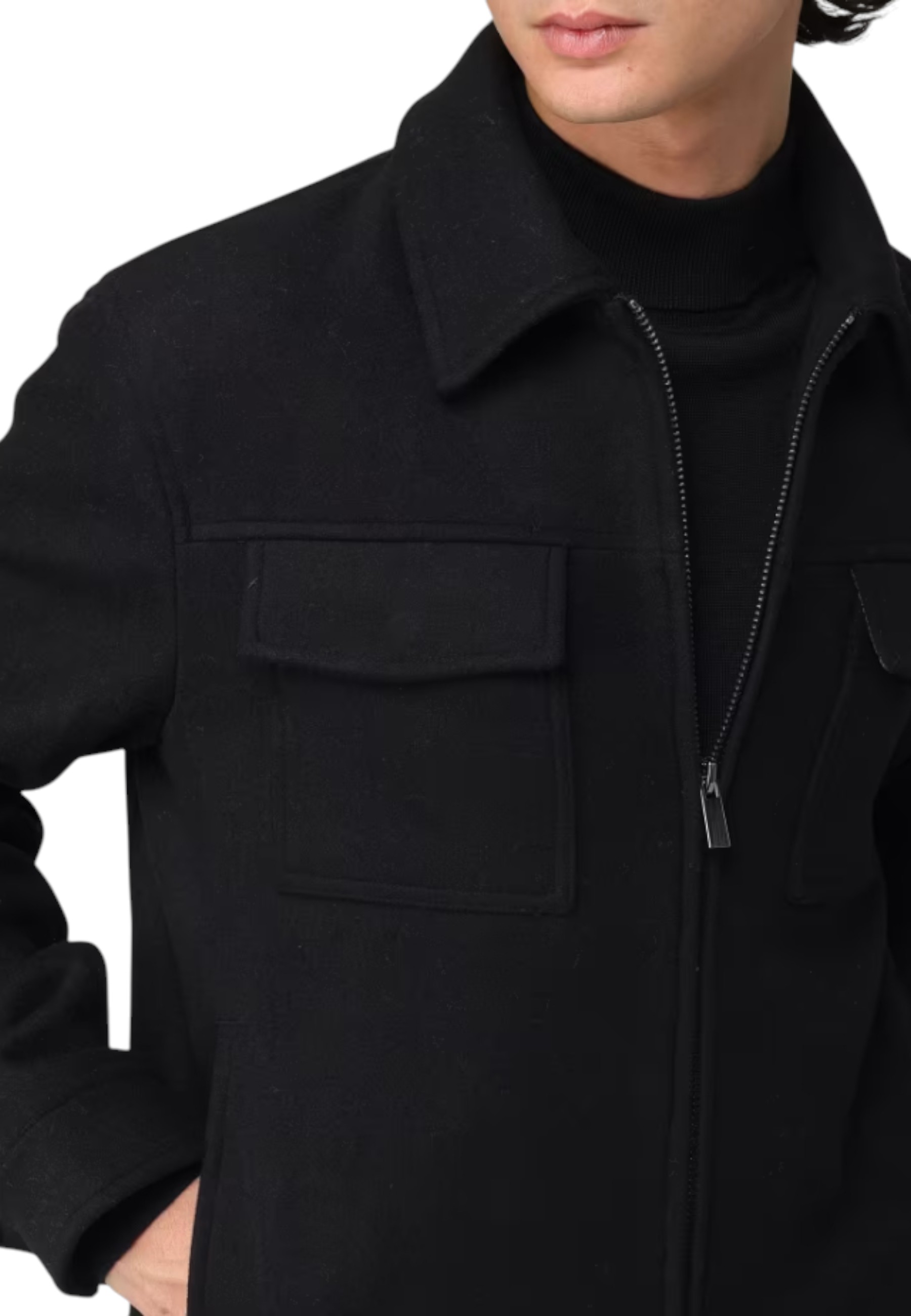 A touch of college style with the comfort you've been looking for. This regular-fit shirt combines the practicality of a short jacket with the charm of a classic collar. Long sleeves and patch pockets with flaps add character, while the zip fastening gives it a modern, casual look. Made from a wool blend and finished with a straight hem, it's perfect for pairing with jeans or chinos for a relaxed yet polished outfit.