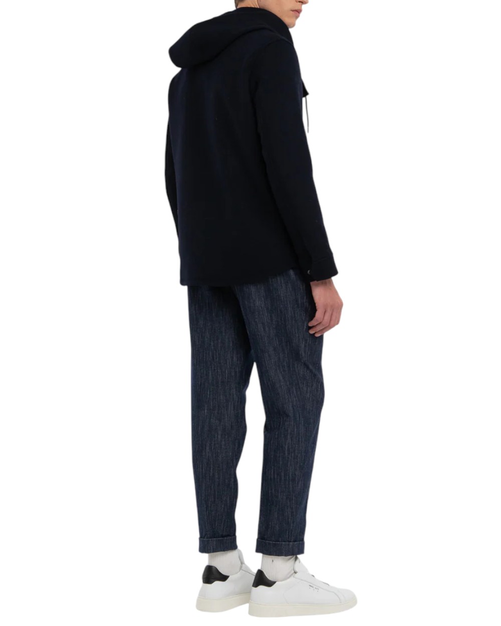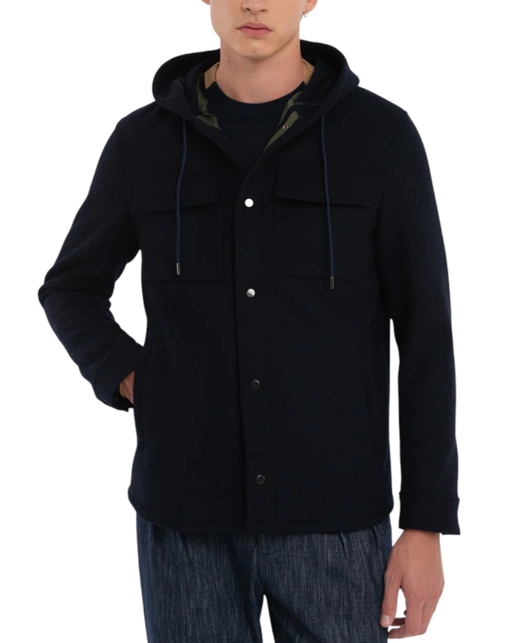 Blue wool blend hooded jacket