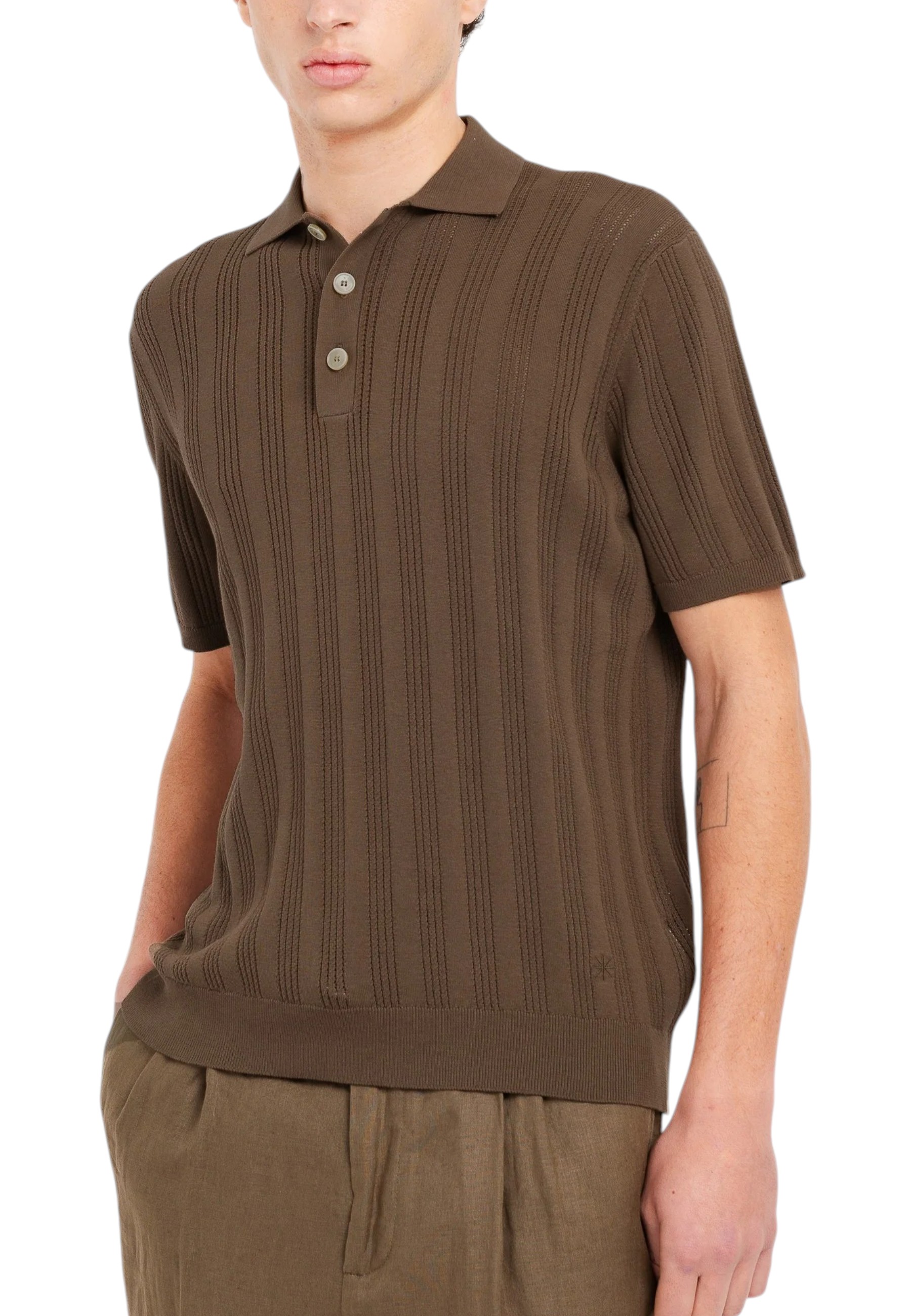 Brown cotton openwork vertical stripe polo shirt MANUEL RITZ | polo shirts | 4032M505 26331129