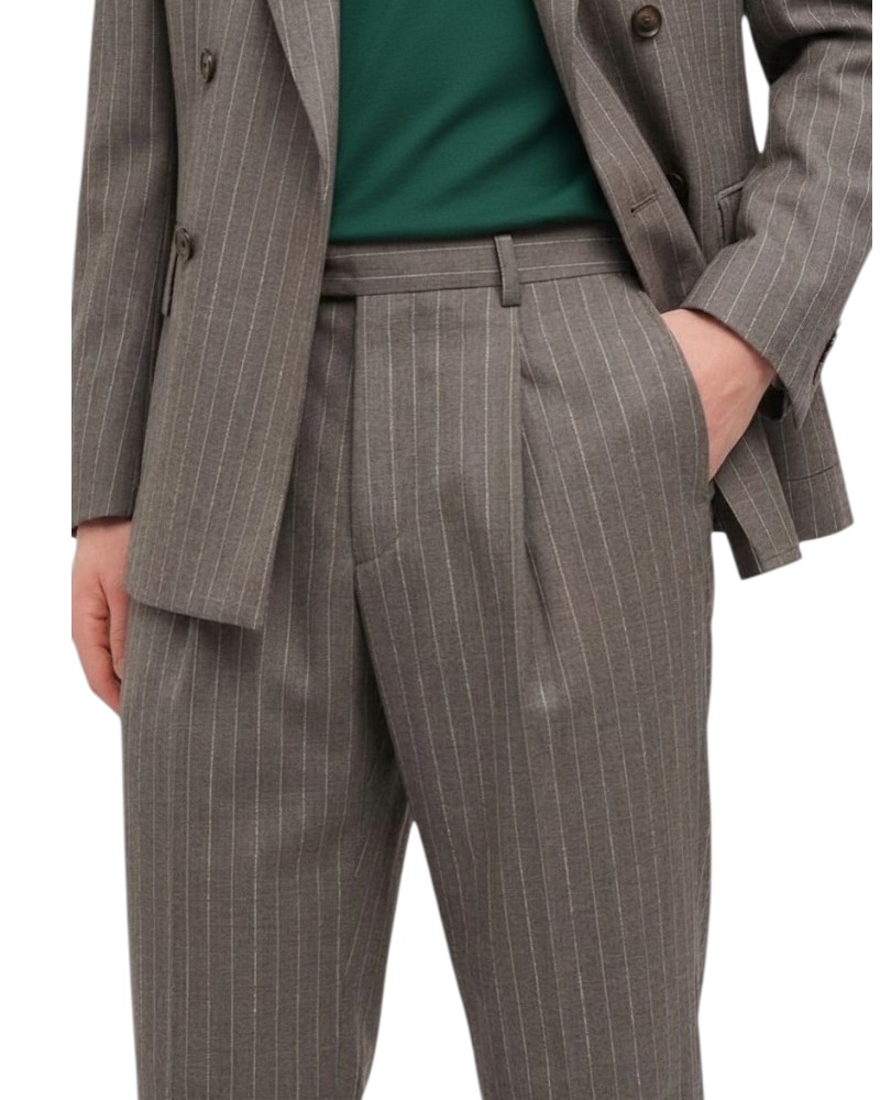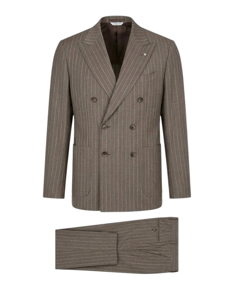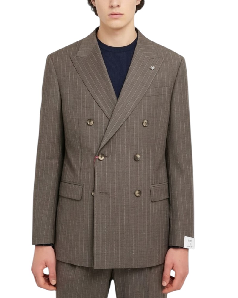 The double-breasted pinstripe suit by Manuel Ritz is the perfect choice for contemporary elegance with a bold personality. Crafted in a refined biscuit shade, this suit combines the classic allure of pinstripes with a modern and sophisticated design.