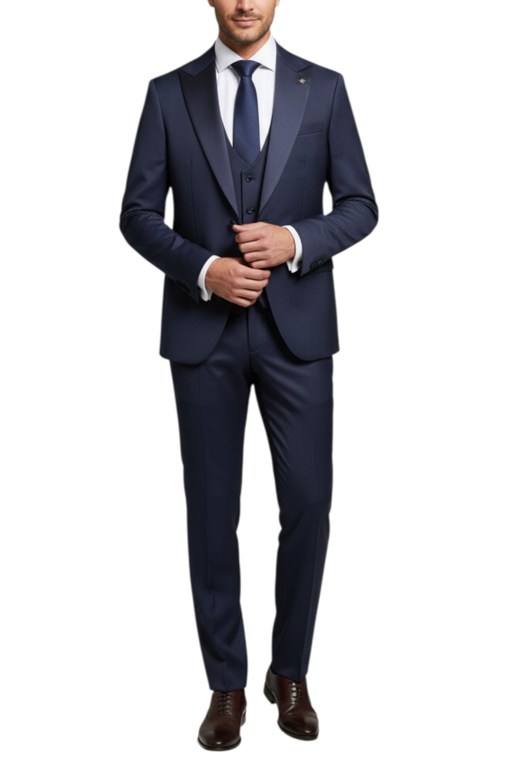 .Suit with peaked lapel jacket and waistcoat