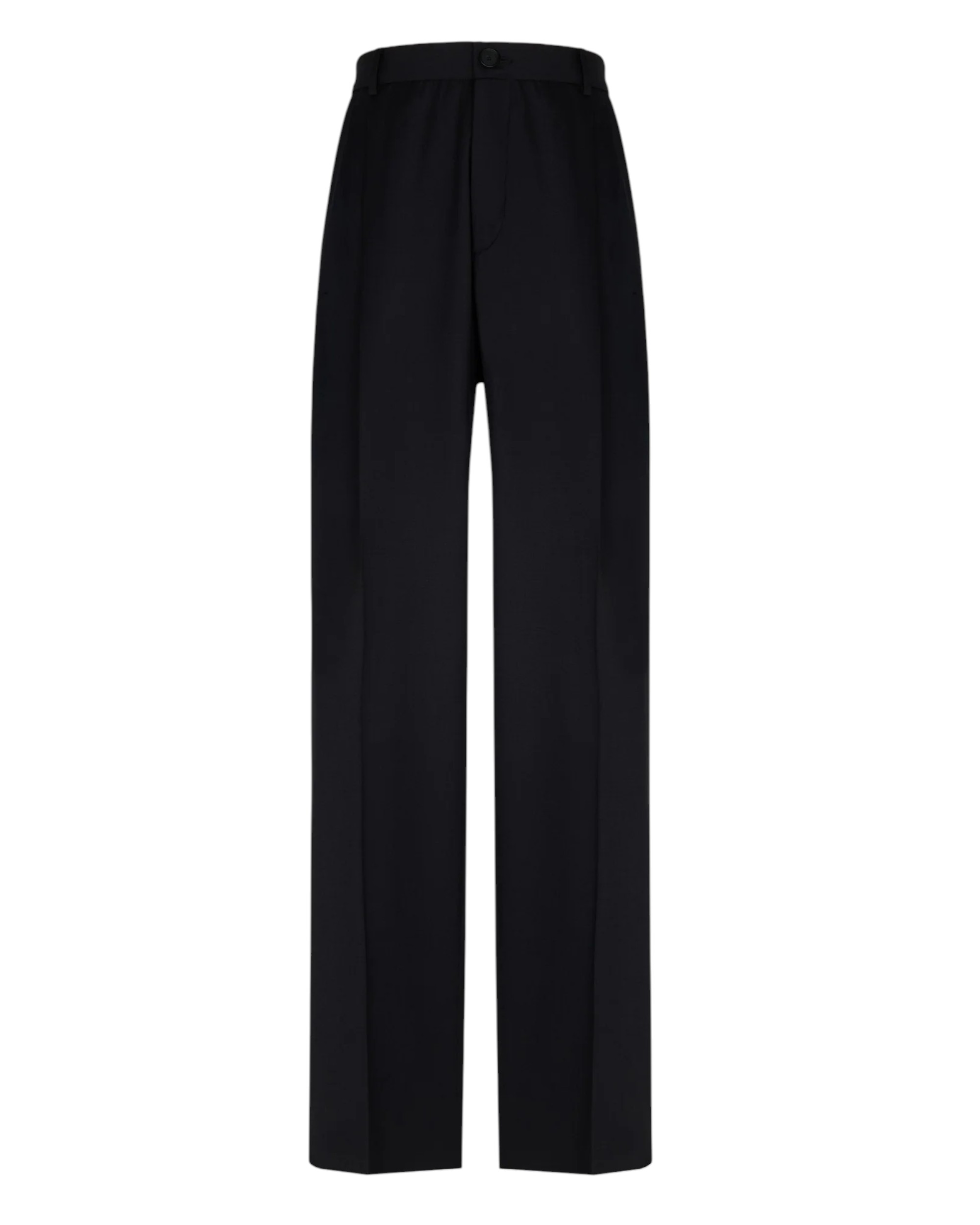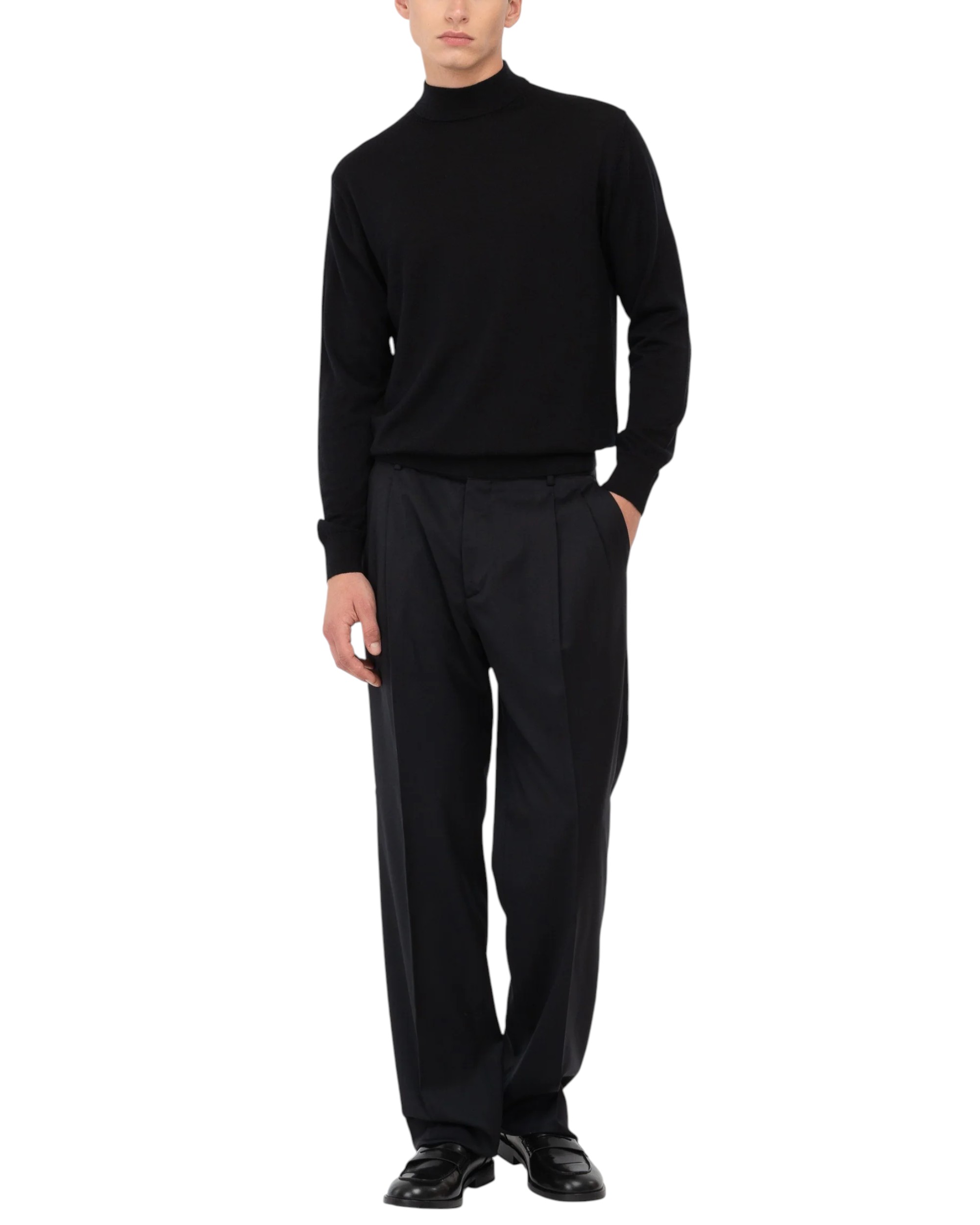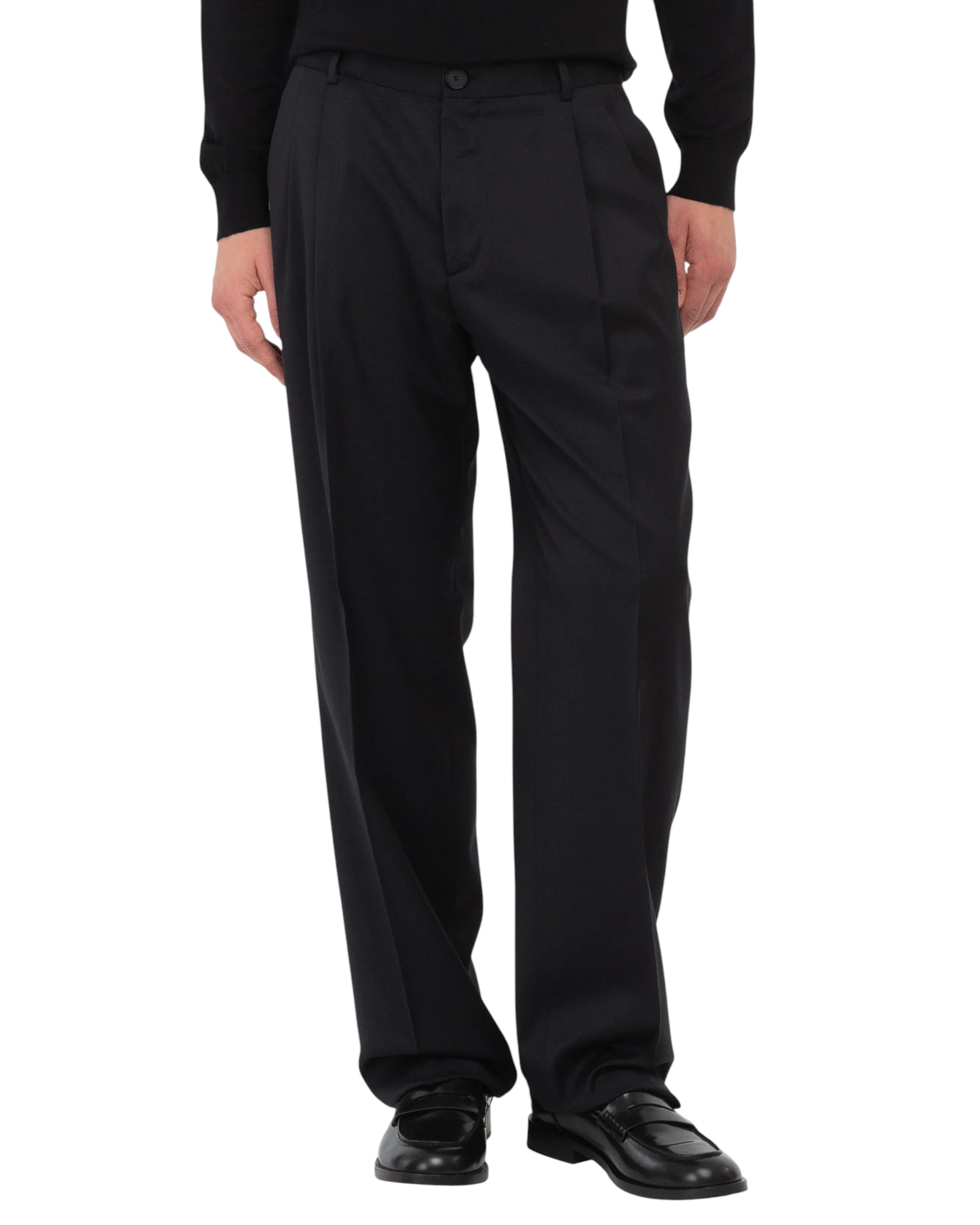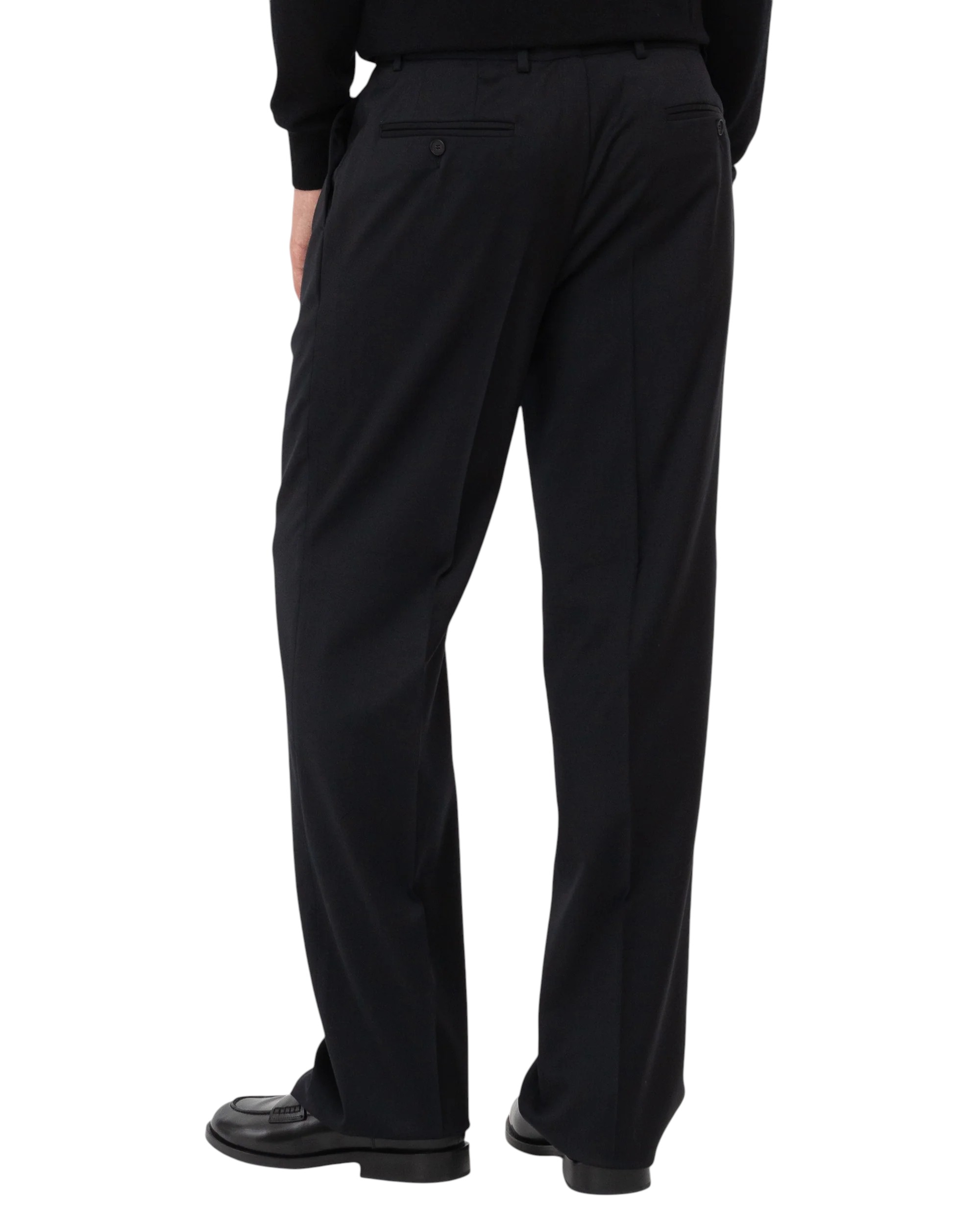 Relaxed fit double pleat trousers in black stretch wool