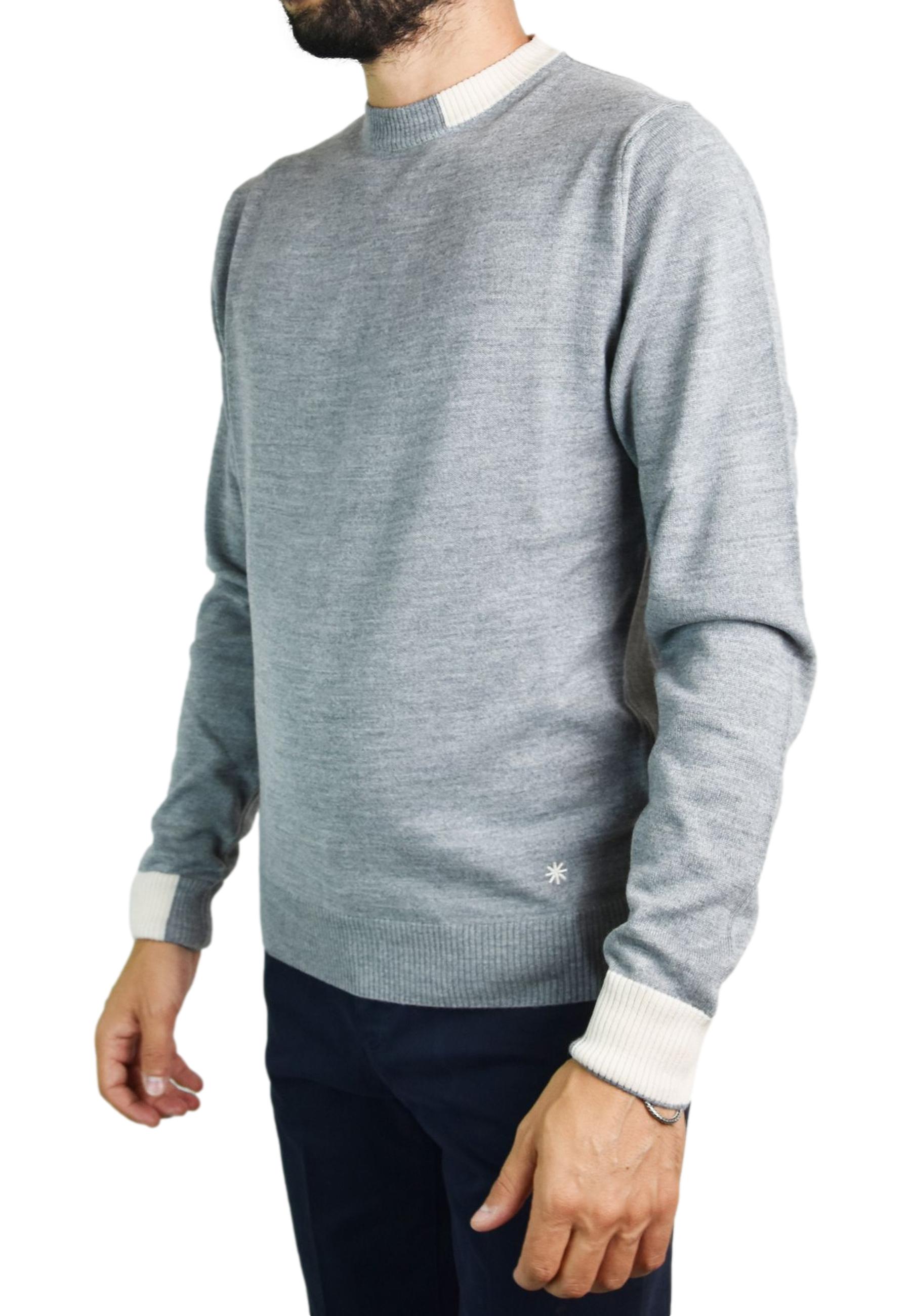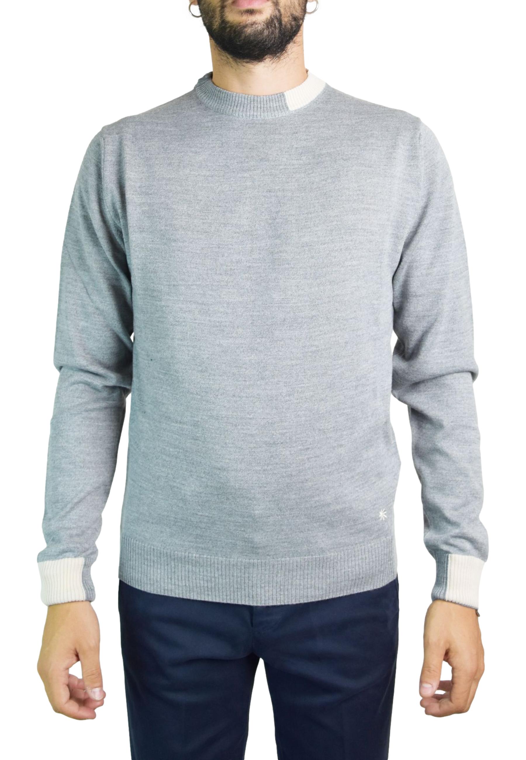 Crew-neck jumper with contrasting cuff details and collar