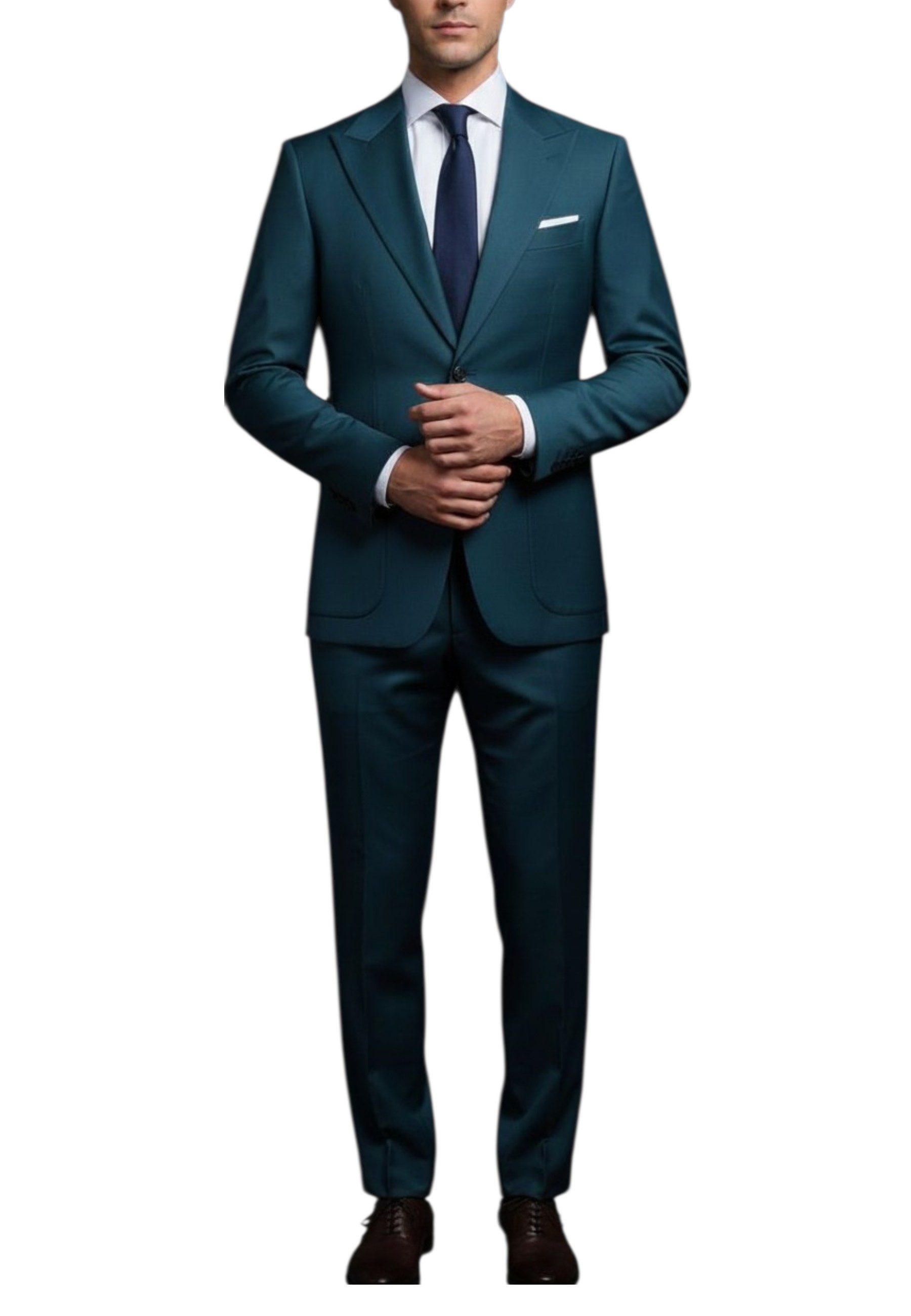 Tailored two-button suit, characterized by clean lines and timeless elegance. Crafted with patch pockets that lend a touch of refined ease, it is embellished with a peak lapel that accentuates the silhouette with boldness and style. Perfect for formal occasions or for standing out with class even in the most contemporary settings.