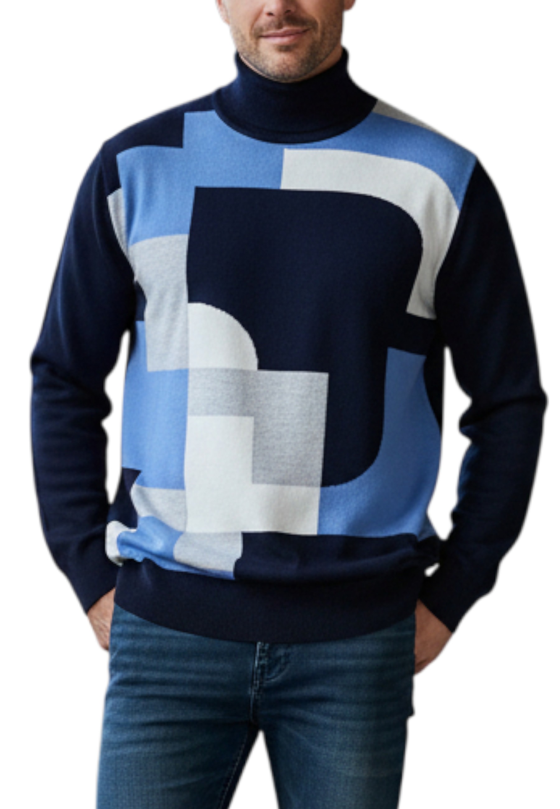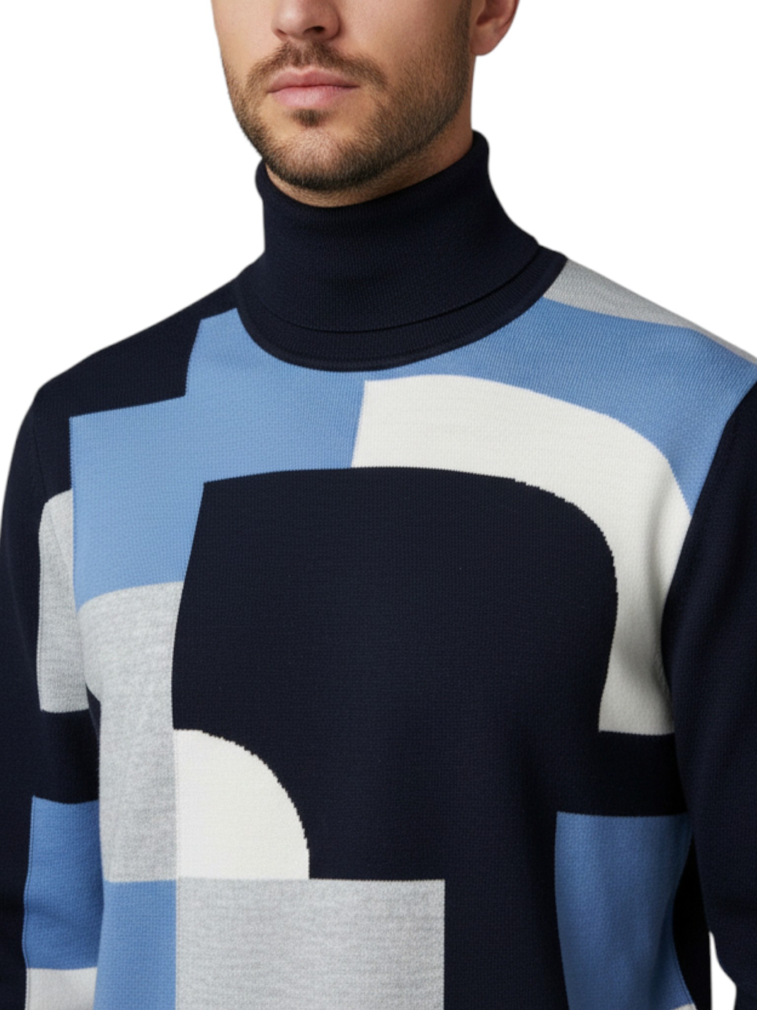 Refined, warm and bold: this men's turtleneck jumper in pure Gatta wool combines comfort and style in one. The abstract pattern adds a modern and sophisticated touch, perfect for those who want to stand out with class even in their everyday looks.