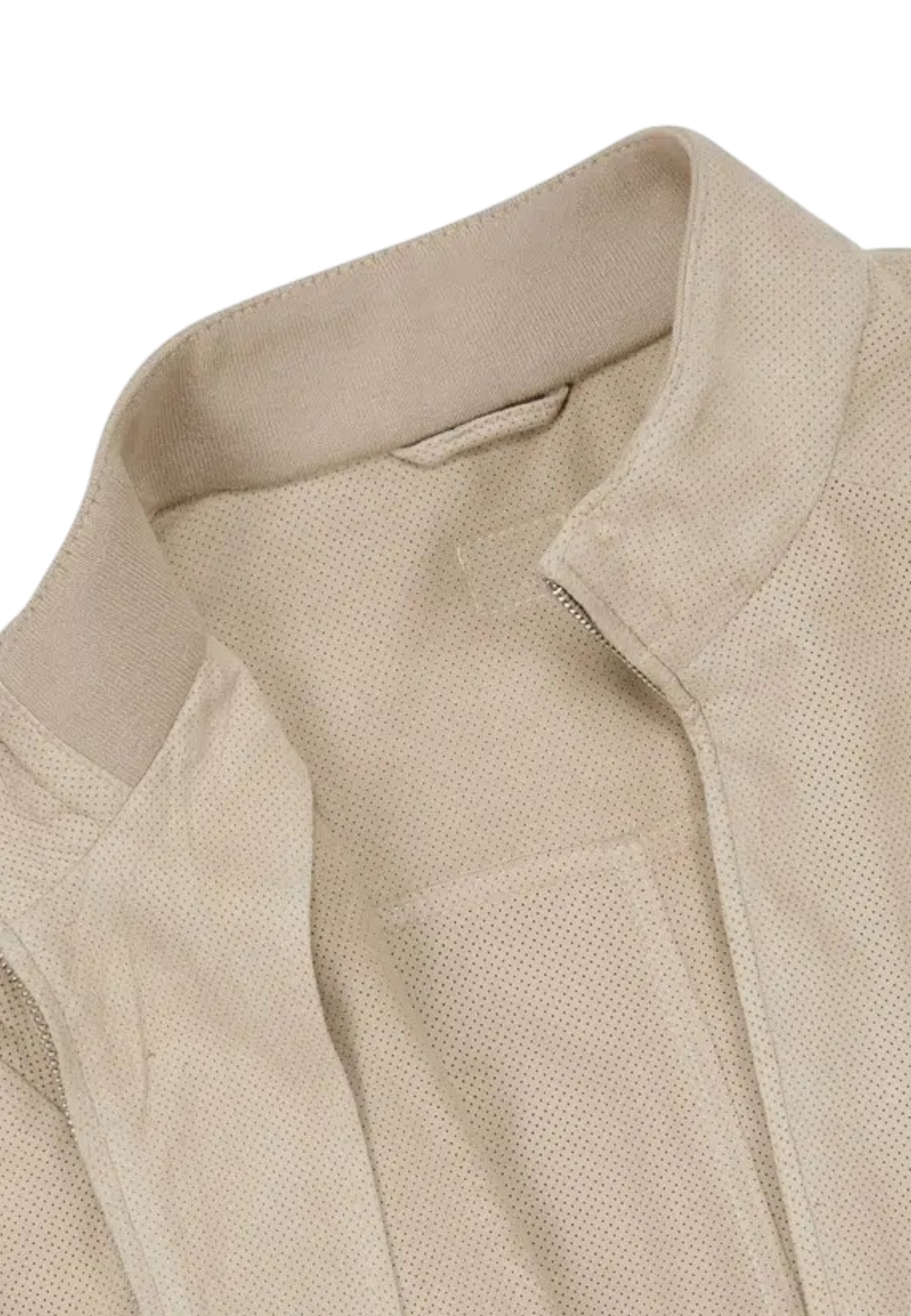 A real investment piece! The unlined, lightweight blouson-style model is made of luxurious, finely perforated goatskin suede.