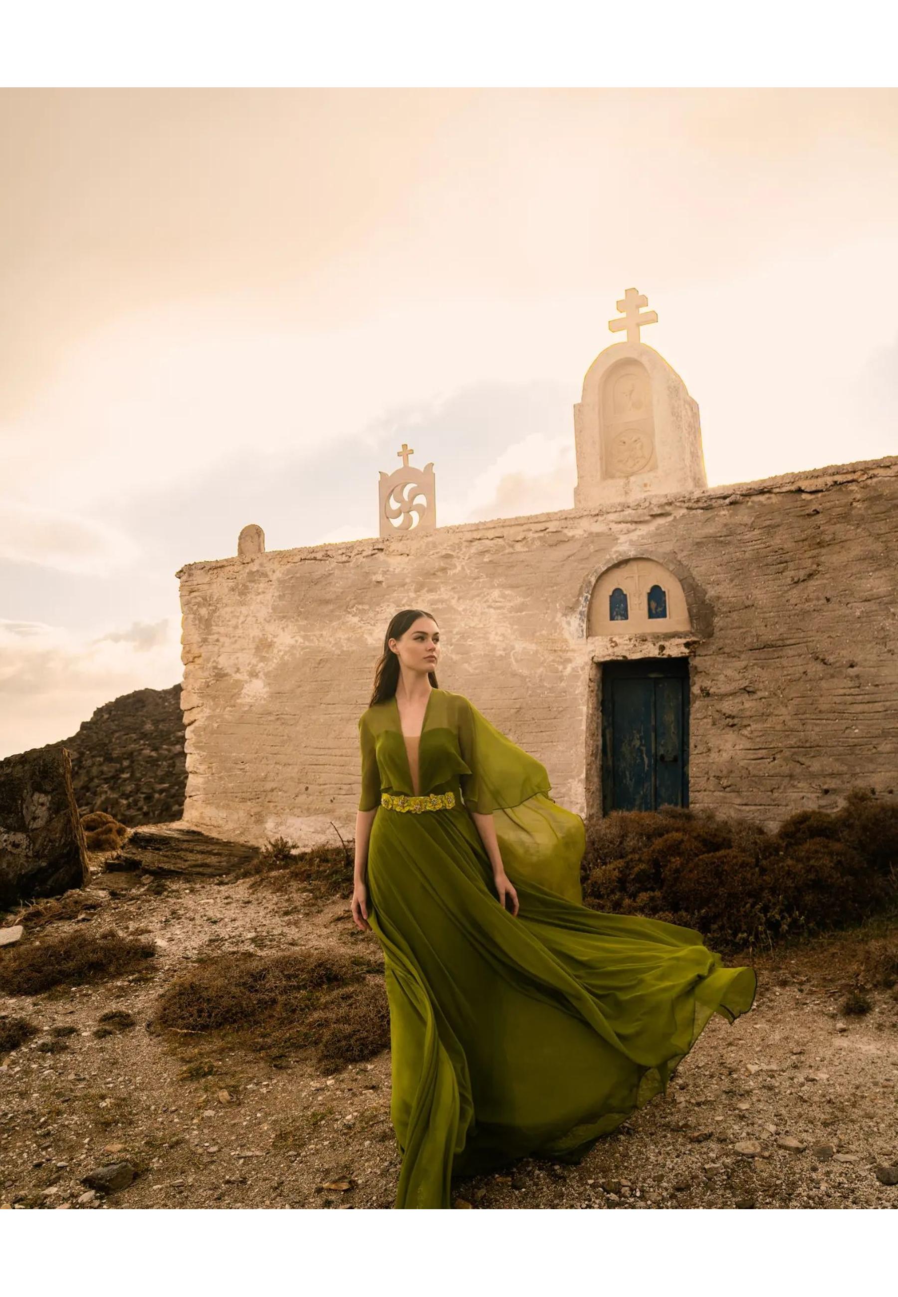 Long dress with preziona belt and soft Mischalis fabric MISCHALIS | dress | M1 84893