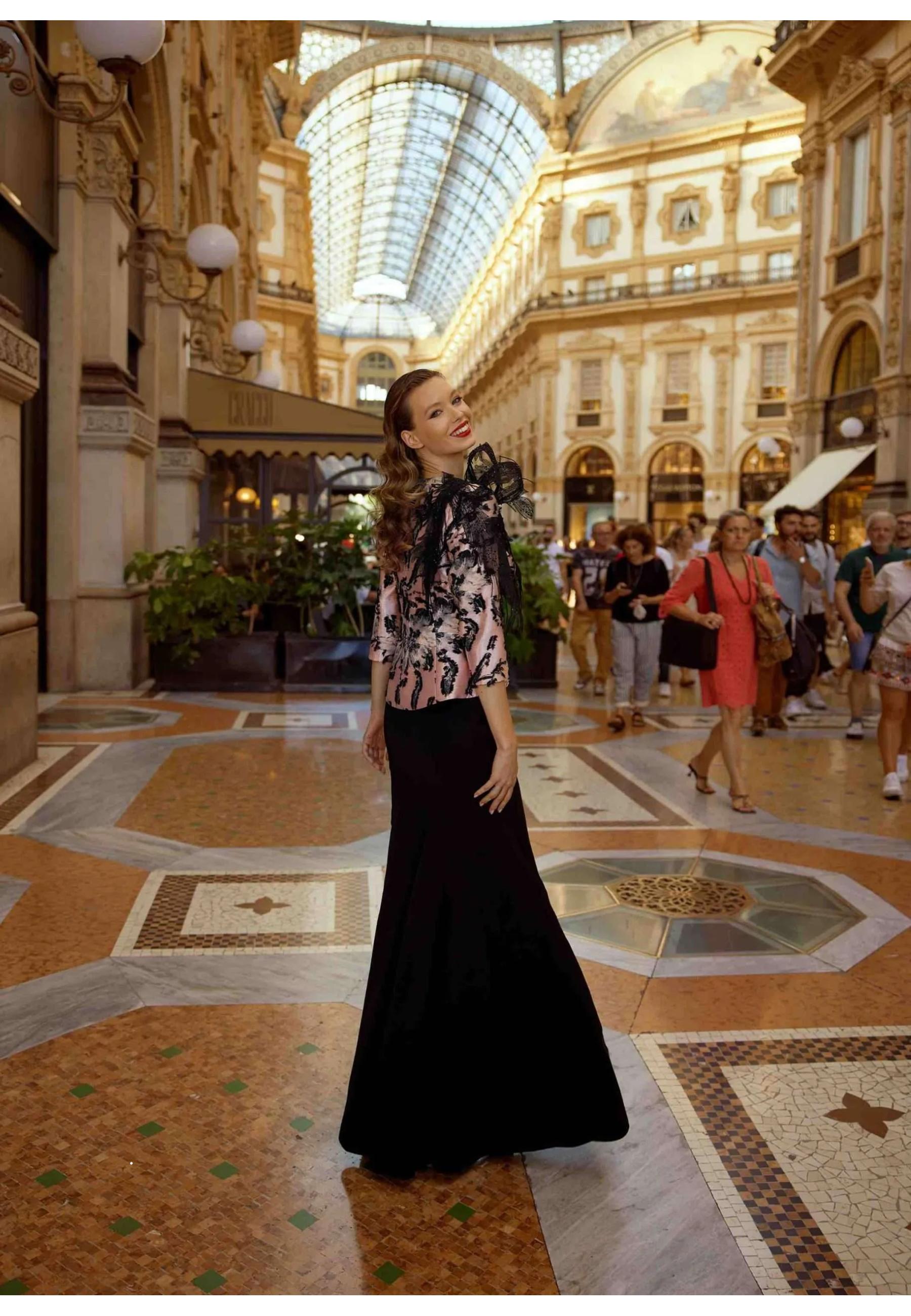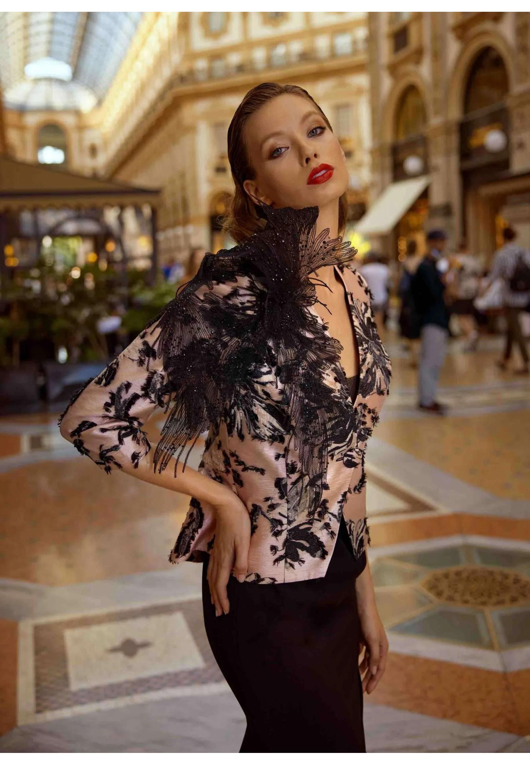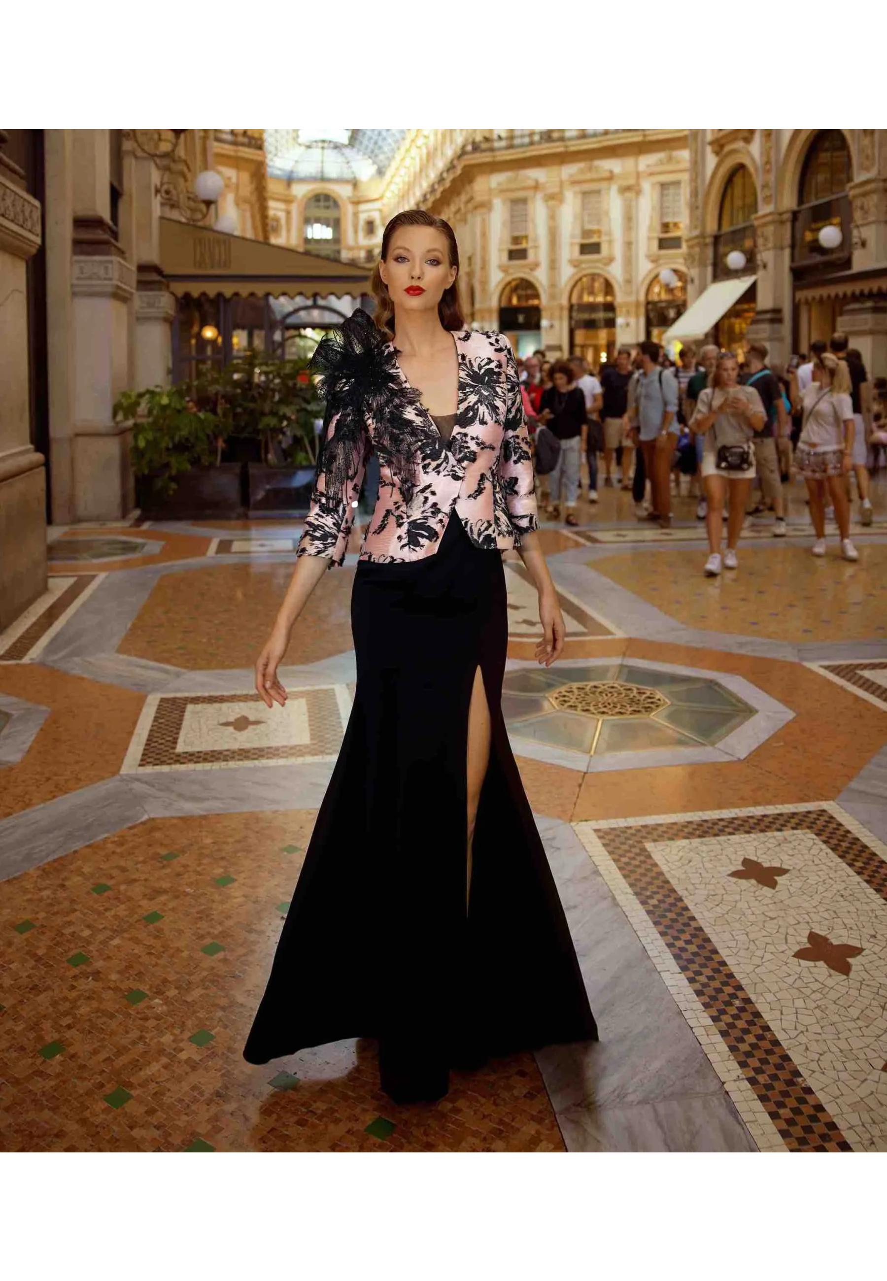 Long dress with c ontrasto jacket and appliqués on Musani shoulder