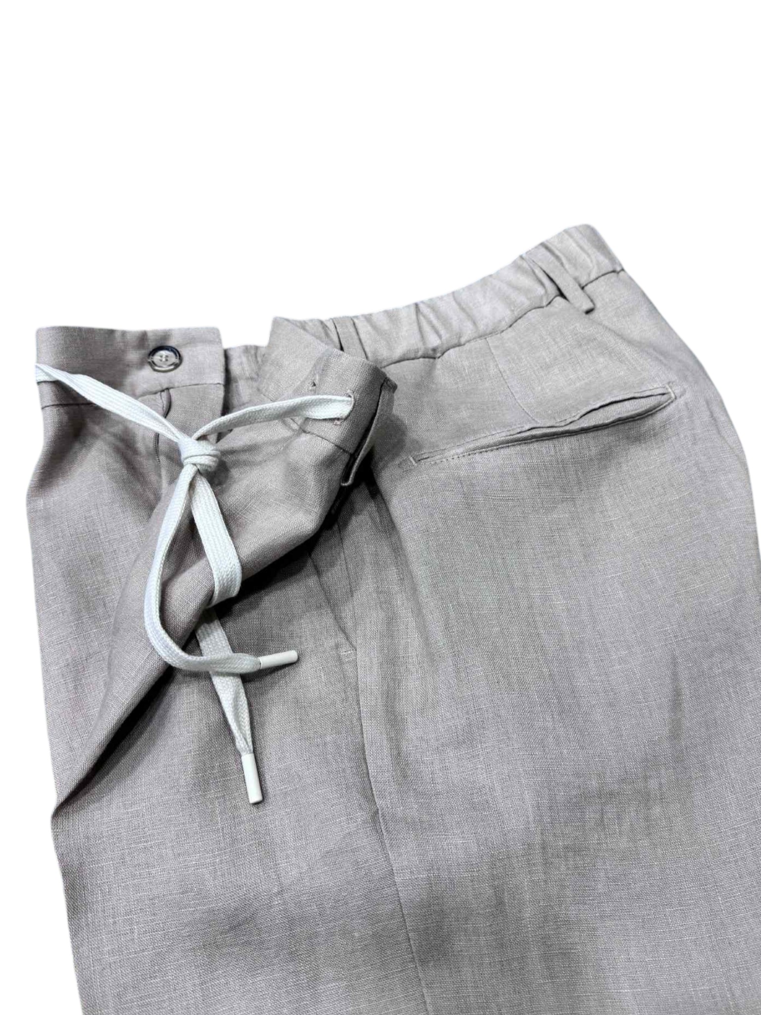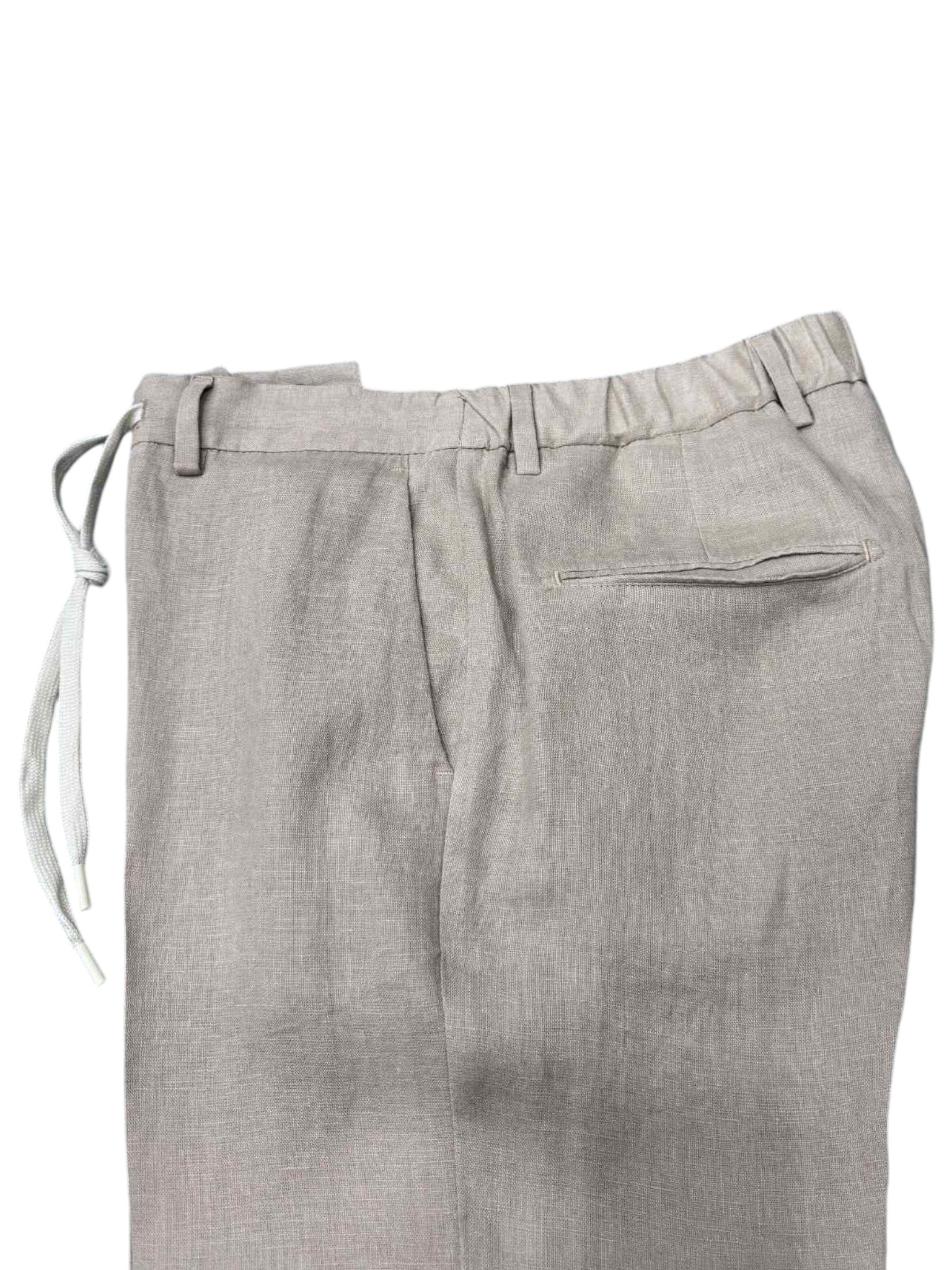 These men's trousers are designed to offer comfort and style for every occasion. The regular fit ensures a clean and comfortable silhouette, ideal for everyday wear. The button closure is complemented by a practical drawstring waist, allowing for easy and functional adjustment. The lightweight, soft-touch fabric gives the garment a casual yet refined look, perfect for pairing with T-shirts, polo shirts or shirts for a look that balances practicality and relaxed elegance.