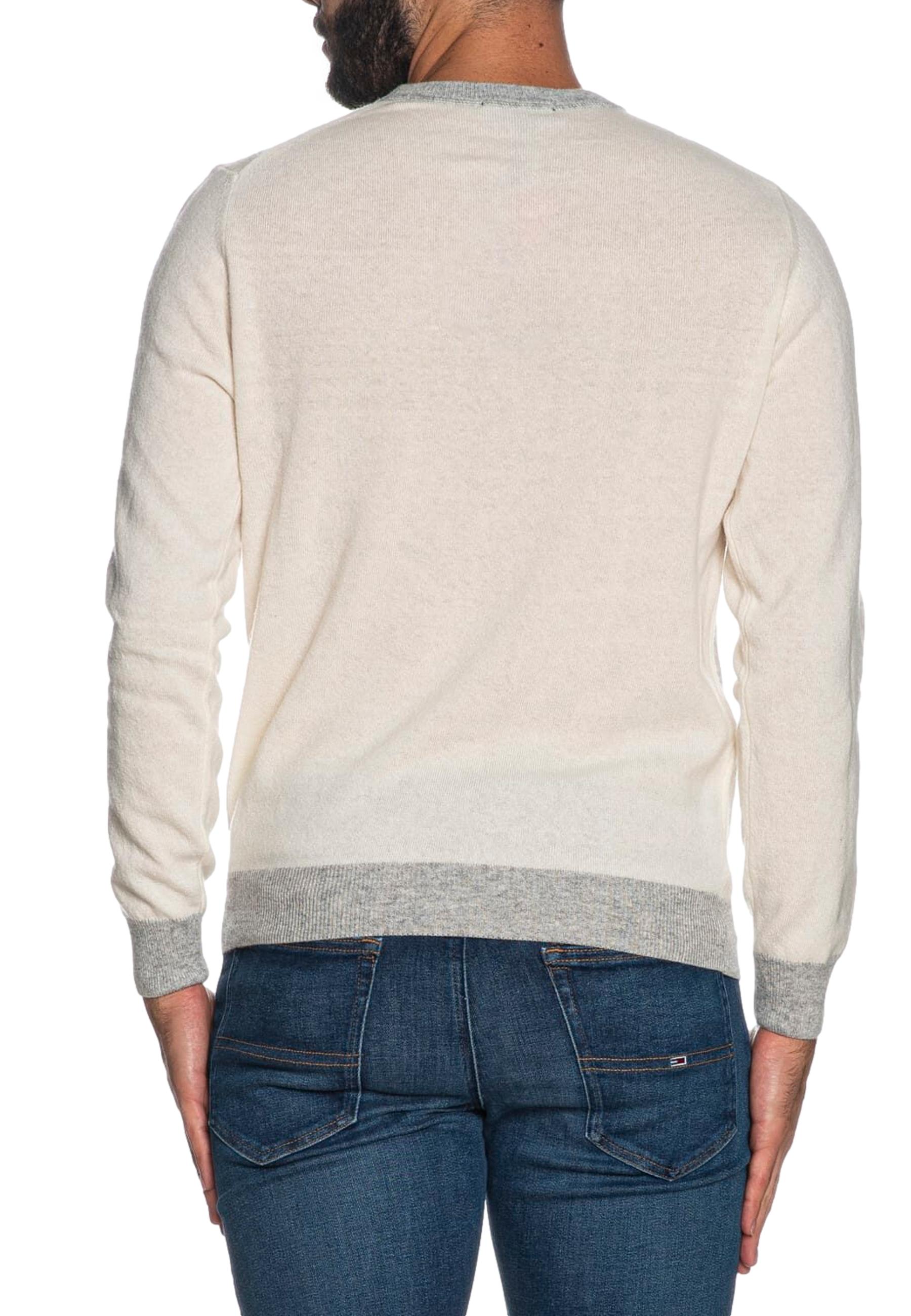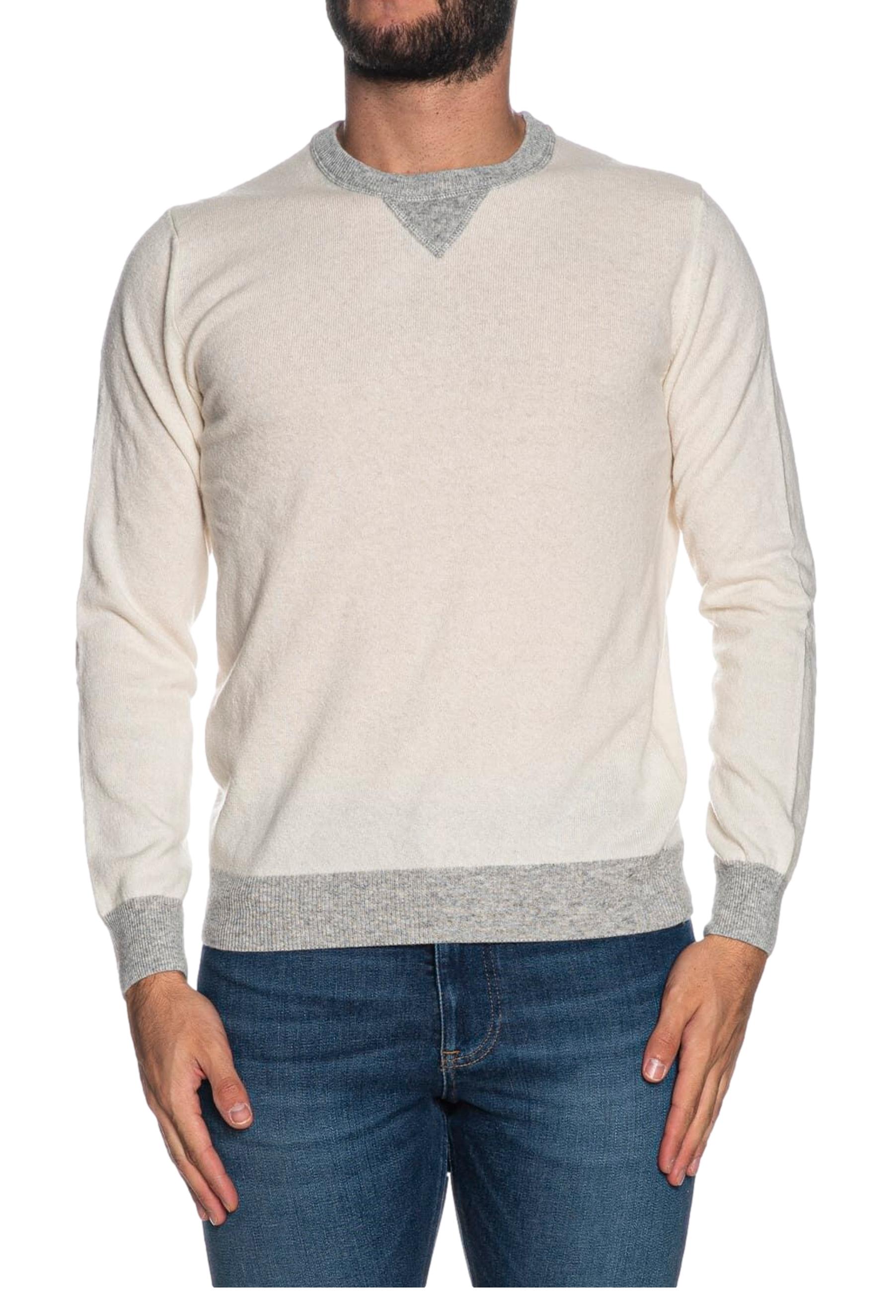 Men's Outfit Knit Cashwool Crew Neck pullover made of wool and cashmere blend yarn, long sleeve, with crew neck cuffs and rib knit cannolé in contrasting color