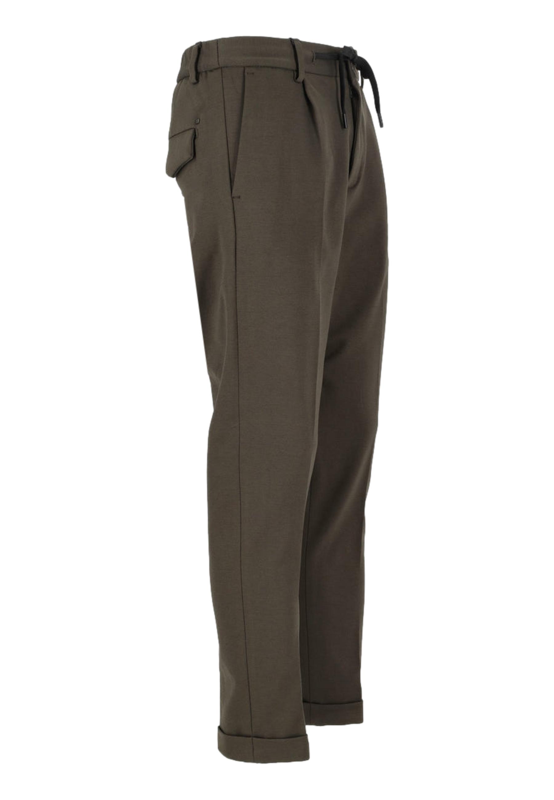 Trousers with elastic waistband and drawstring, flap pocket on the back and turn-ups on the bottom