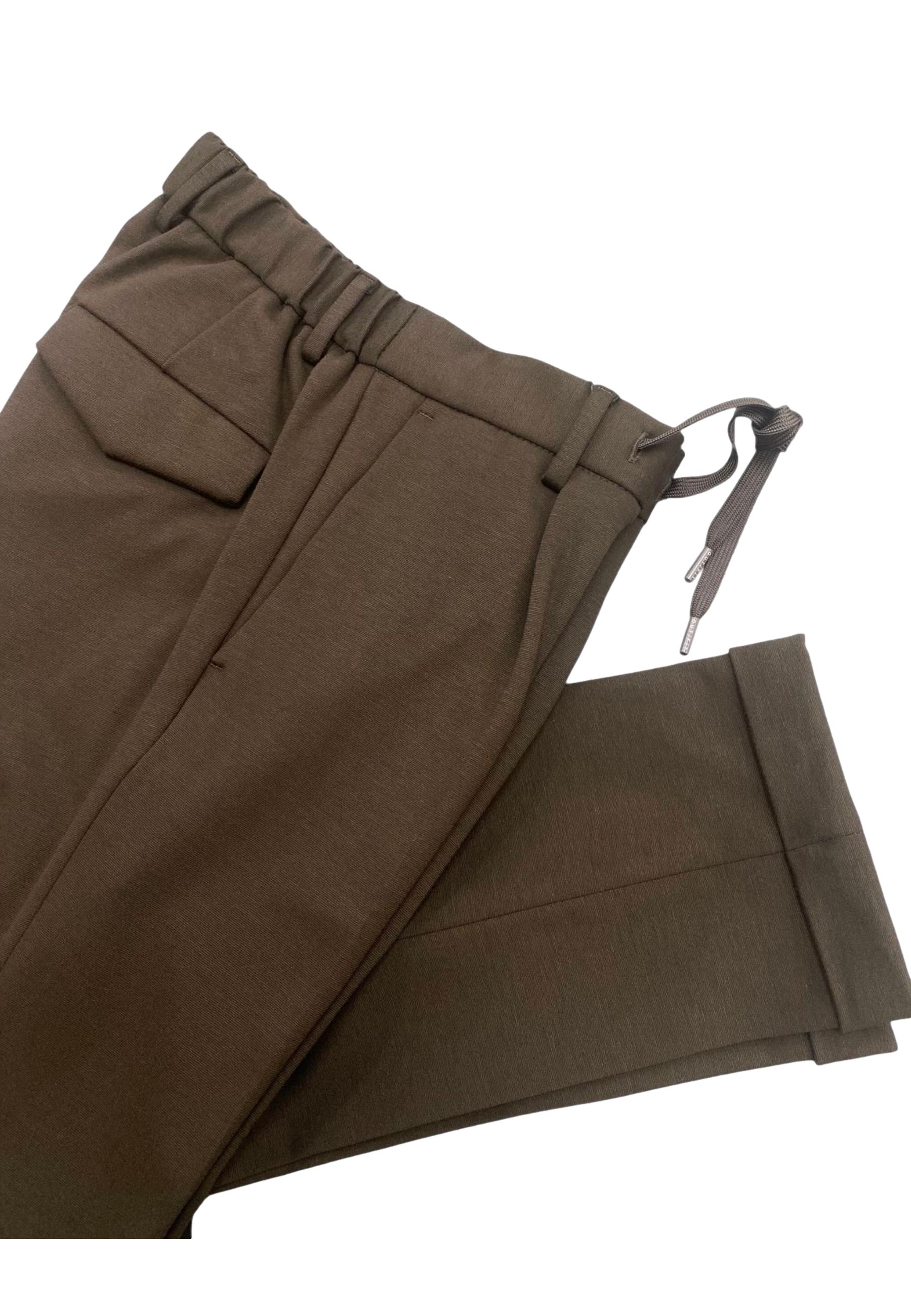 Trousers with elastic waistband and drawstring, flap pocket on the back and turn-ups on the bottom