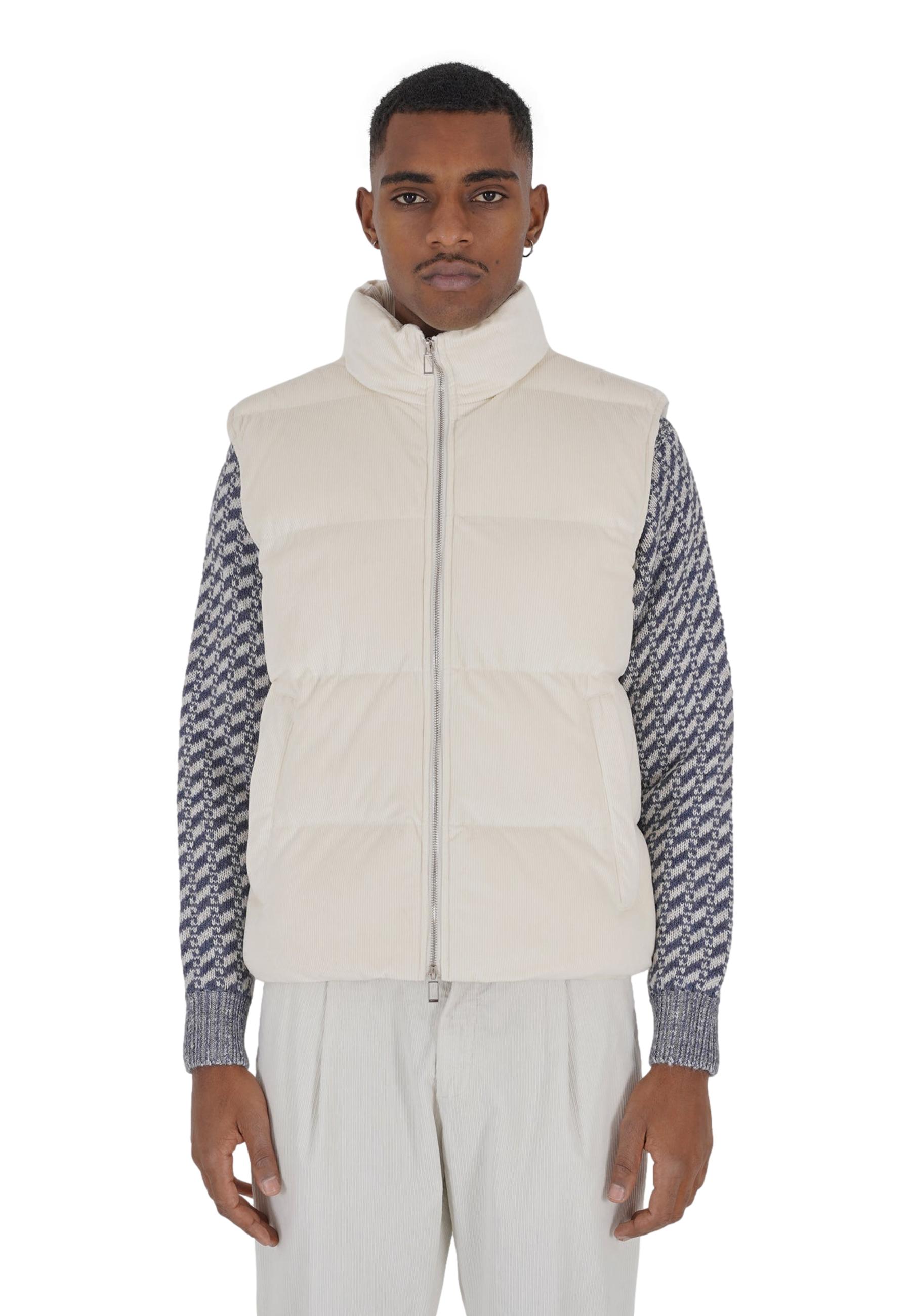 Men's Outfit Jkt Sleeveless quilted polyester corduroy sleeveless with synthetic padding, high collar, central double-slider full zipper closure, flush side pockets with covered zippers, and adjustable bottom by internal stoppers