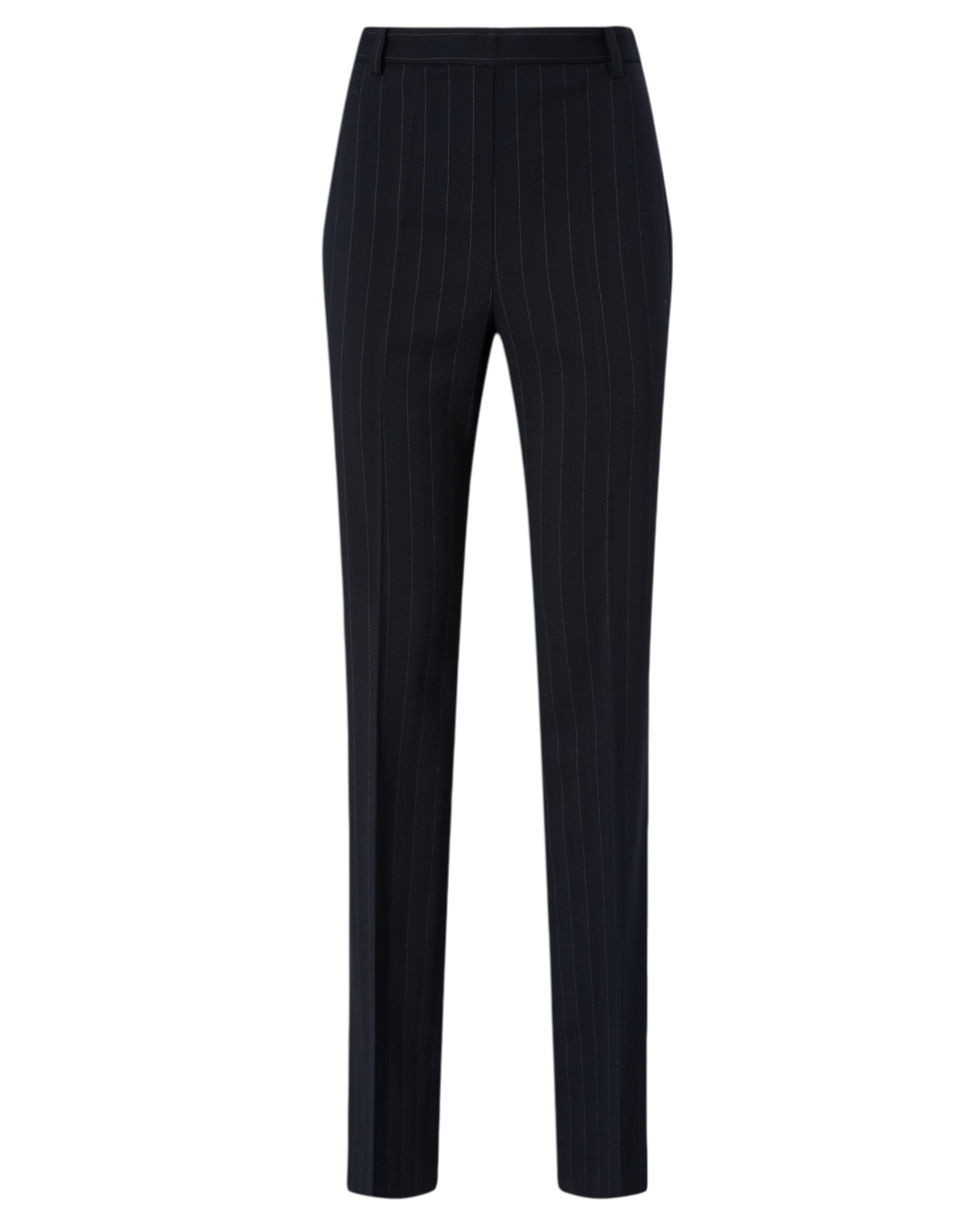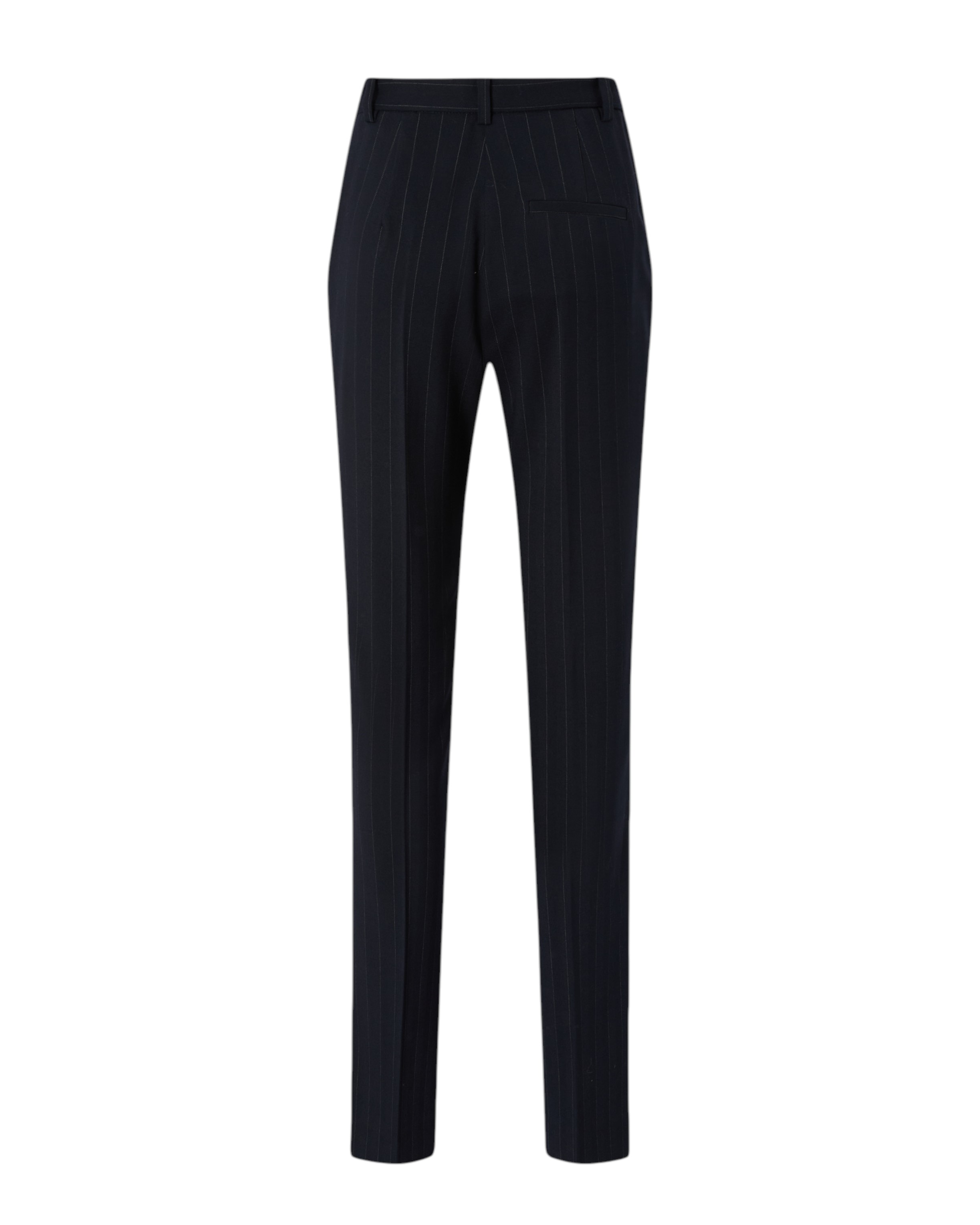 Straight-leg trousers with concealed front fastening. The model is made from a classic pinstriped poly-wool fabric featuring a change in weave and light to emphasise the pattern of the material. The tailored design of the garment is further enhanced by the pleats, the waistband with belt loops and the welt pocket on the back. Pair the trousers with the blazer in the same fabric for a suit effect, or wear them with a shirt for a formal but not overly formal look.